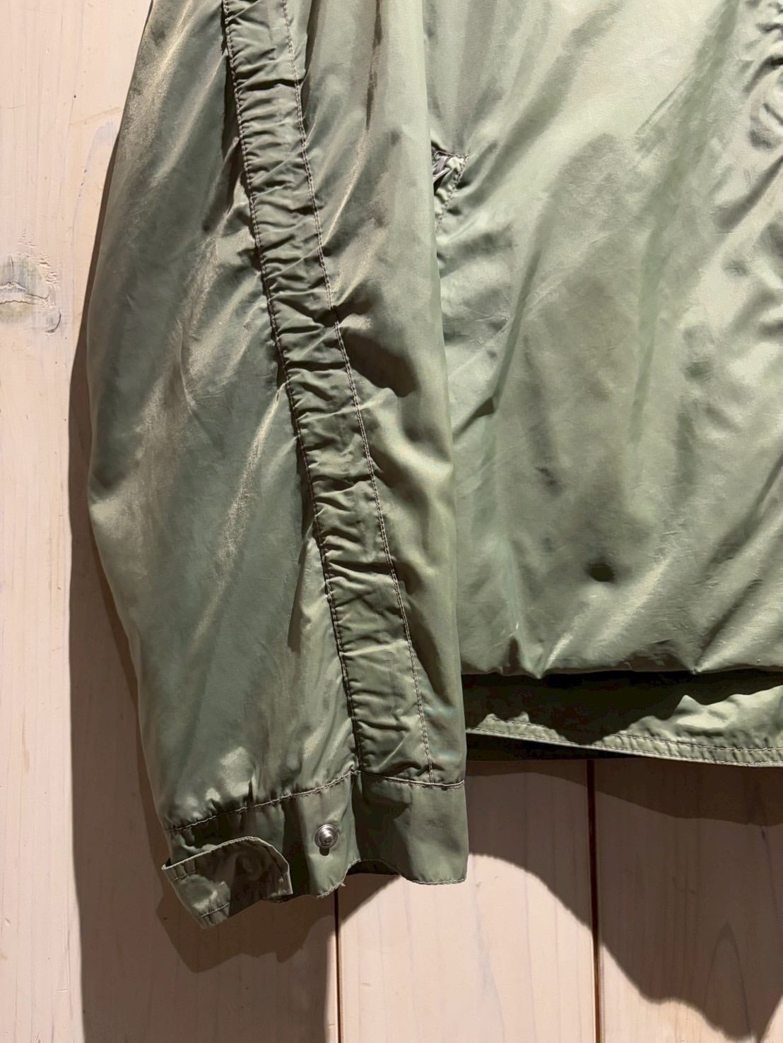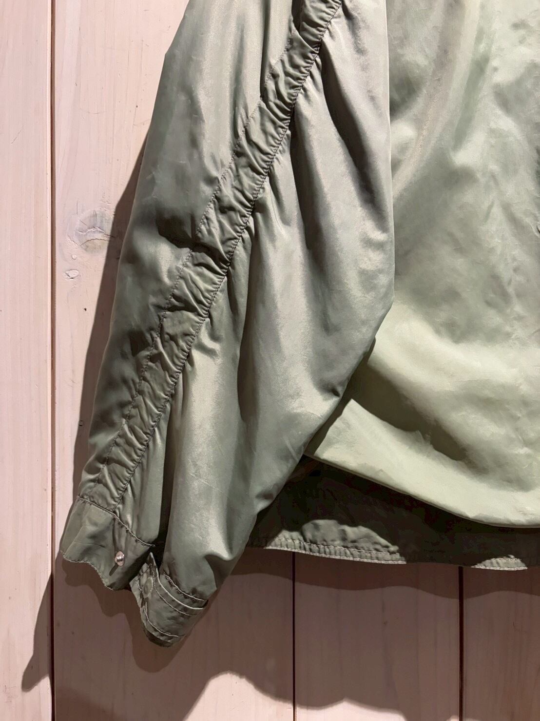 ツルッと滑らかなナイロンを用いて、落ち着きのあるピスタチオグリーンで仕上げられた1着。