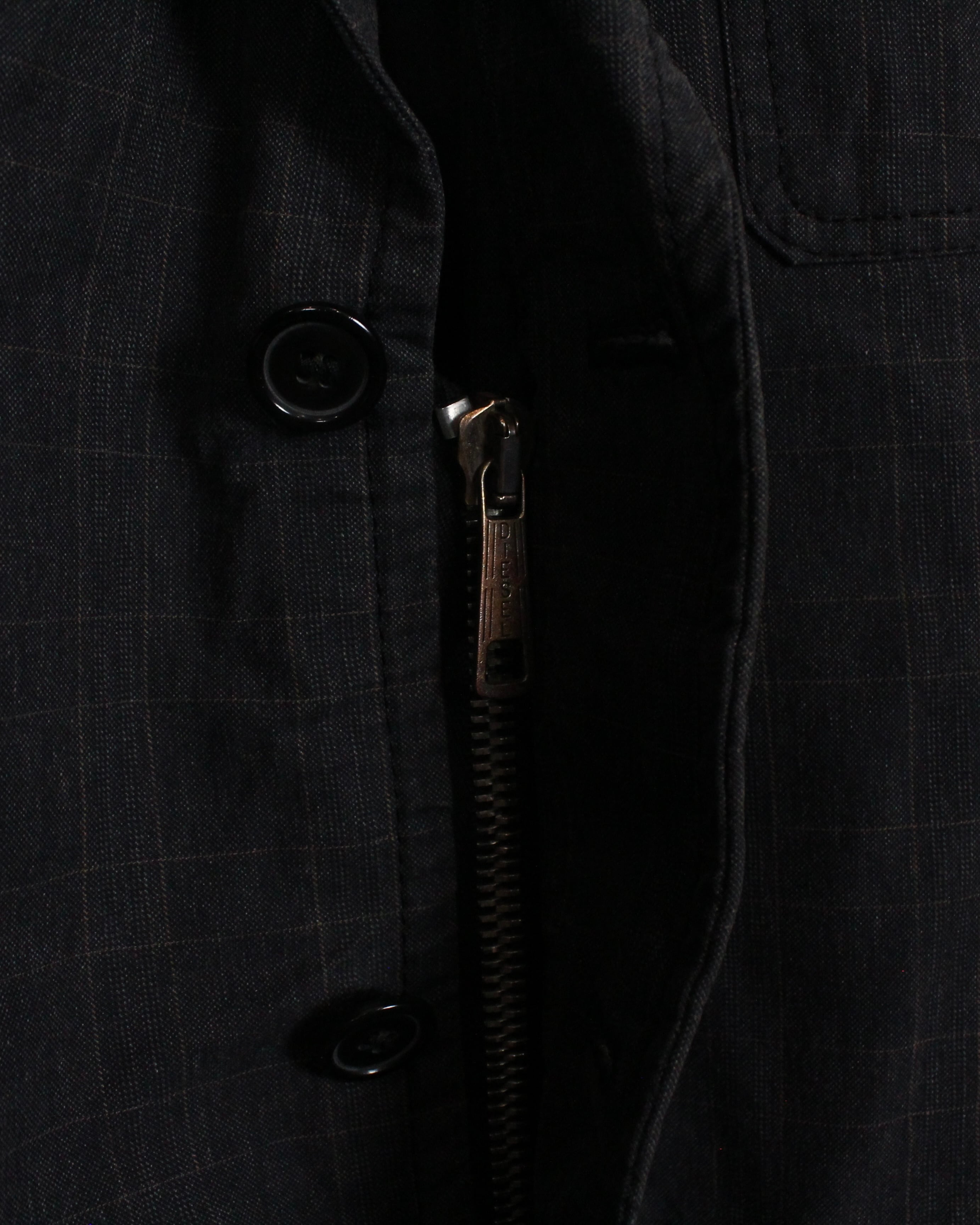 コシのあるグレーのコットンを用いたボディにチェックを載せ、多彩なポケットギミックを落とし込んだカジュアルなテーラードジャケット。