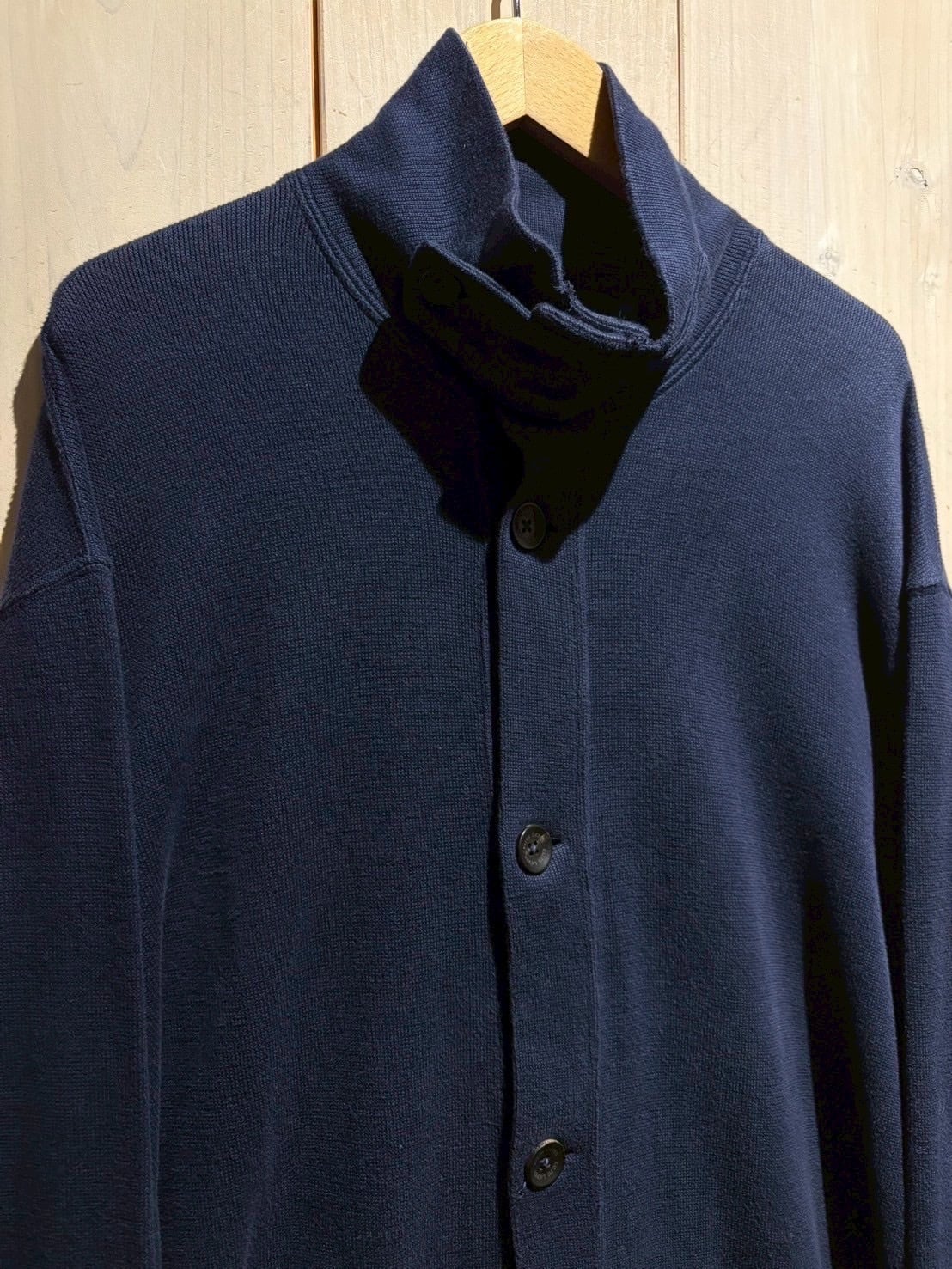 少し肉感のある、上質なコットンをボディに用いたボタンダウンのニットジャケット。