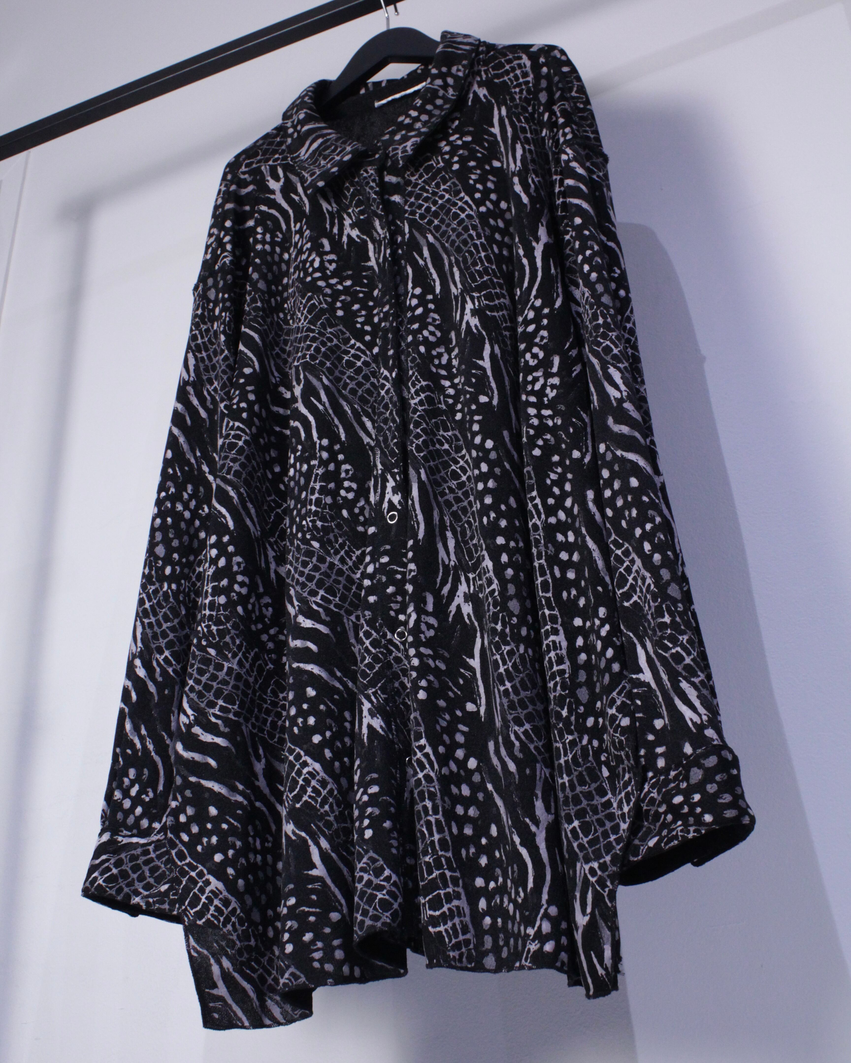 クロコダイル、パイソン、ゼブラ等、様々なアニマルパターンをデザインに落とし込んだ長袖シャツ。