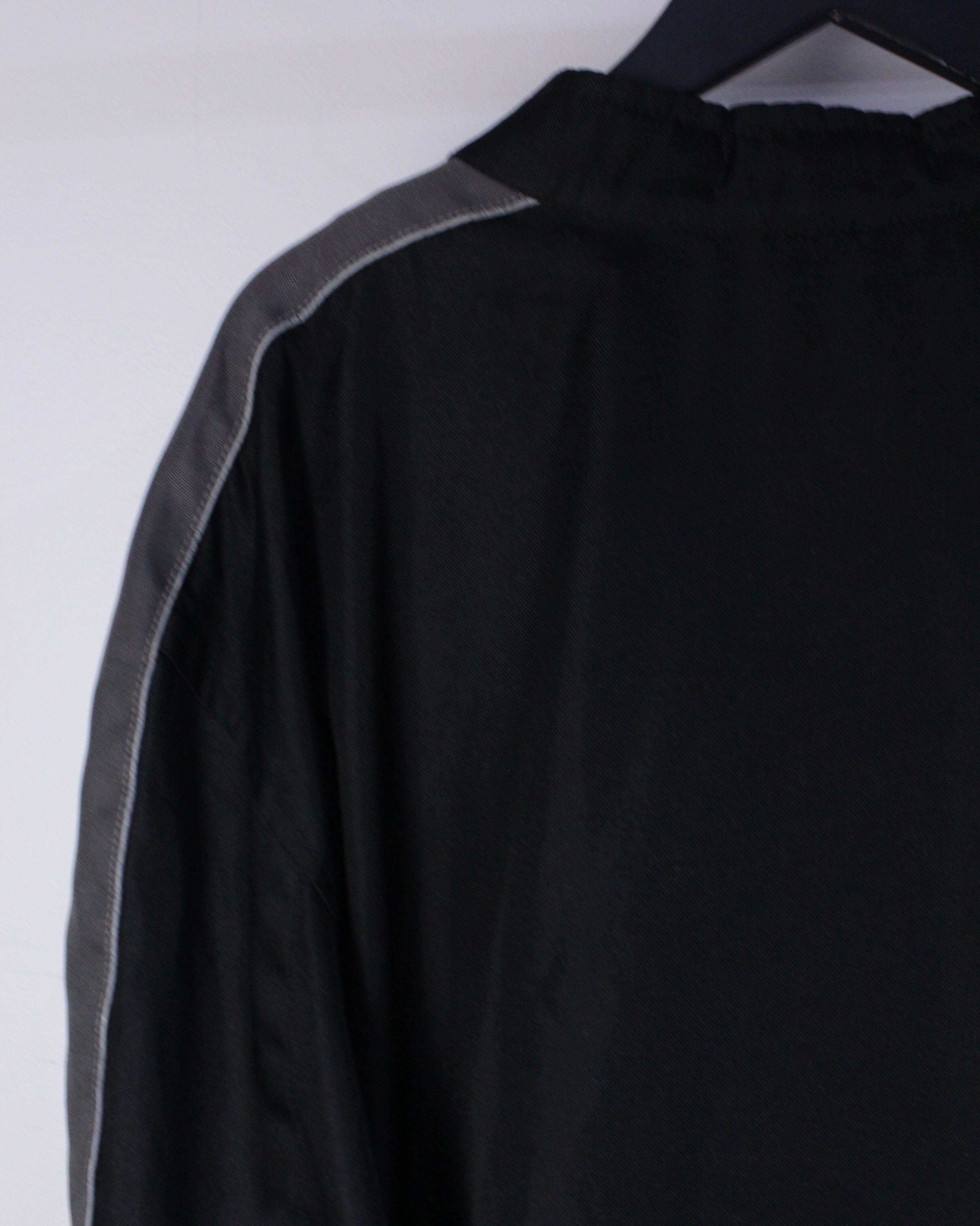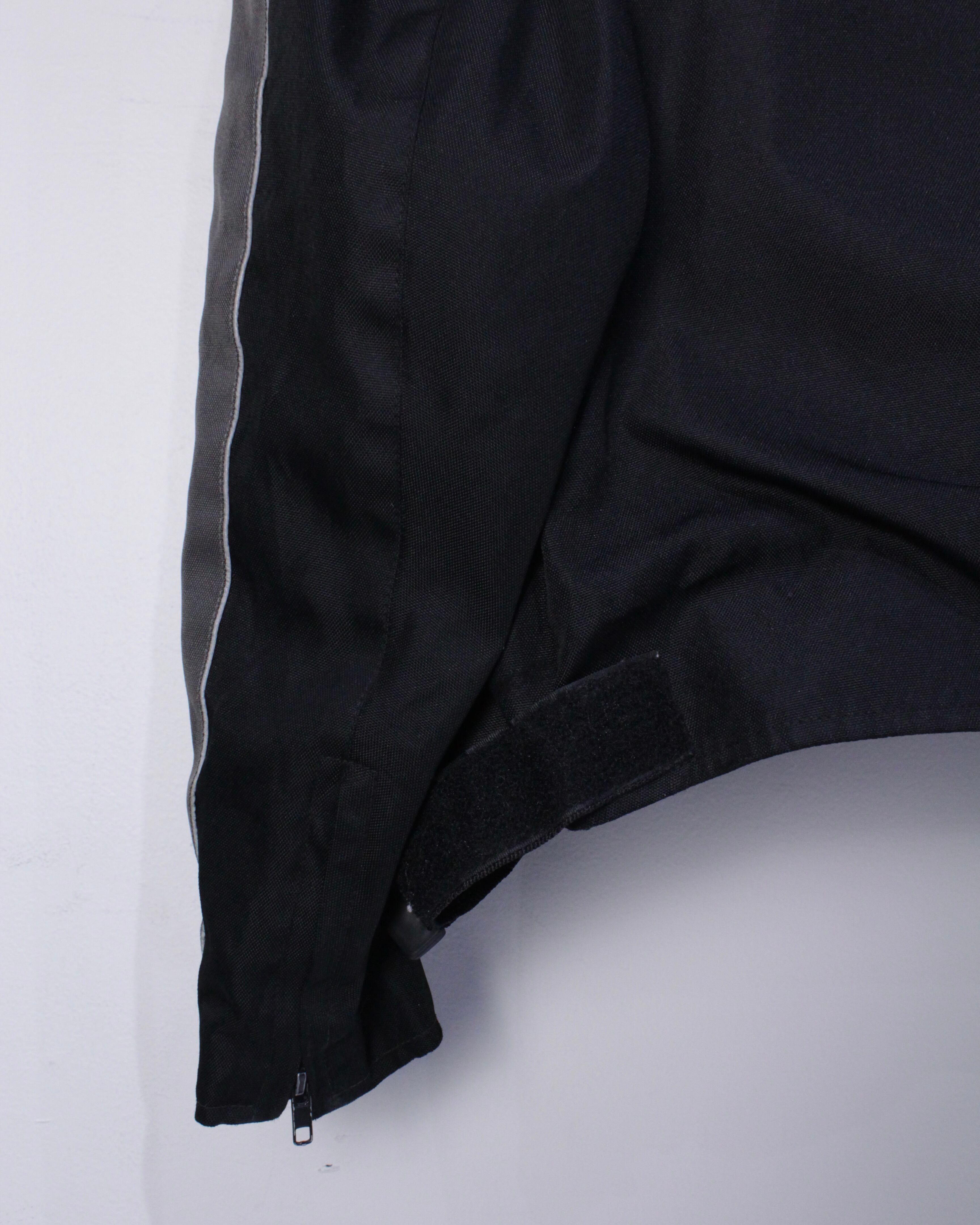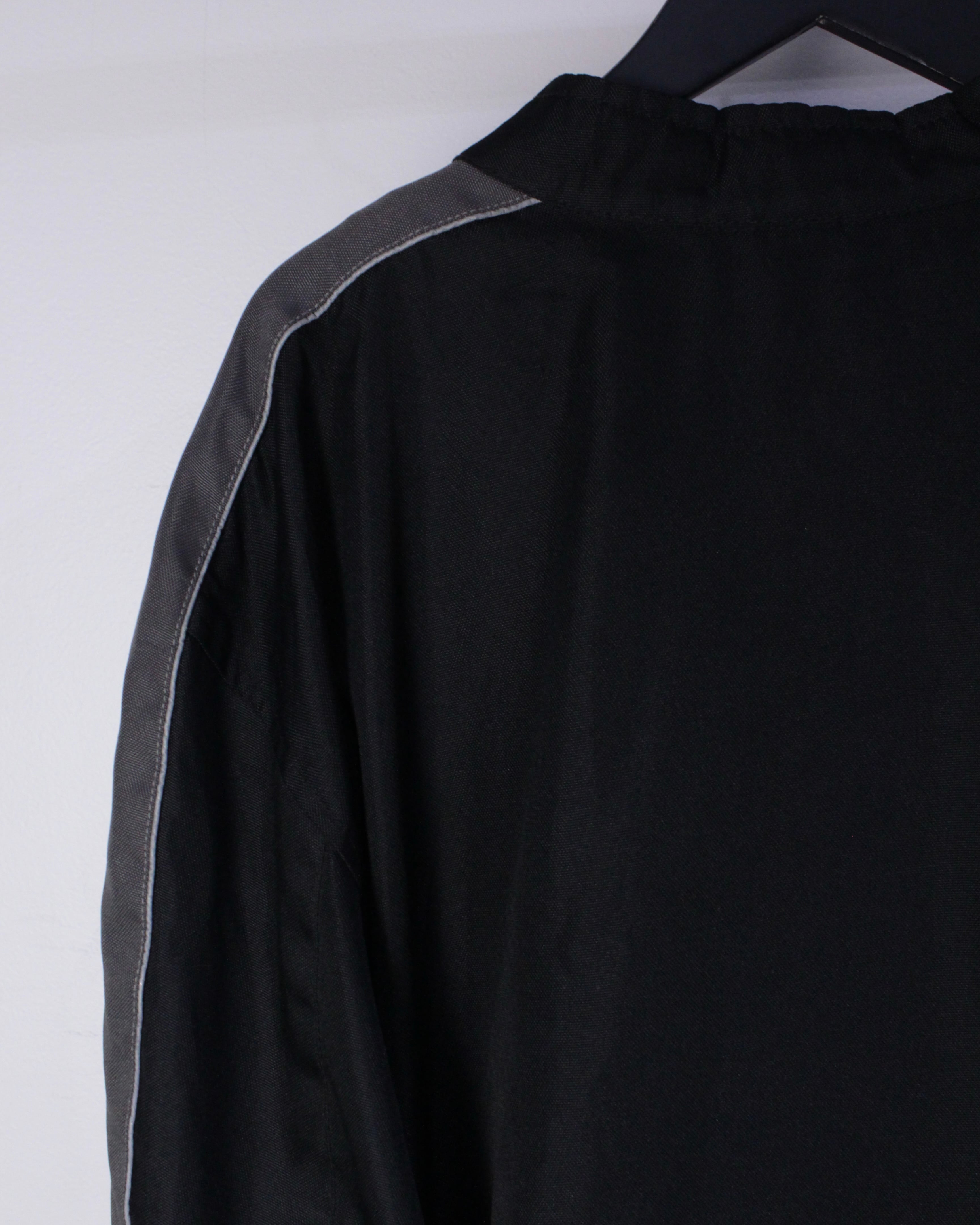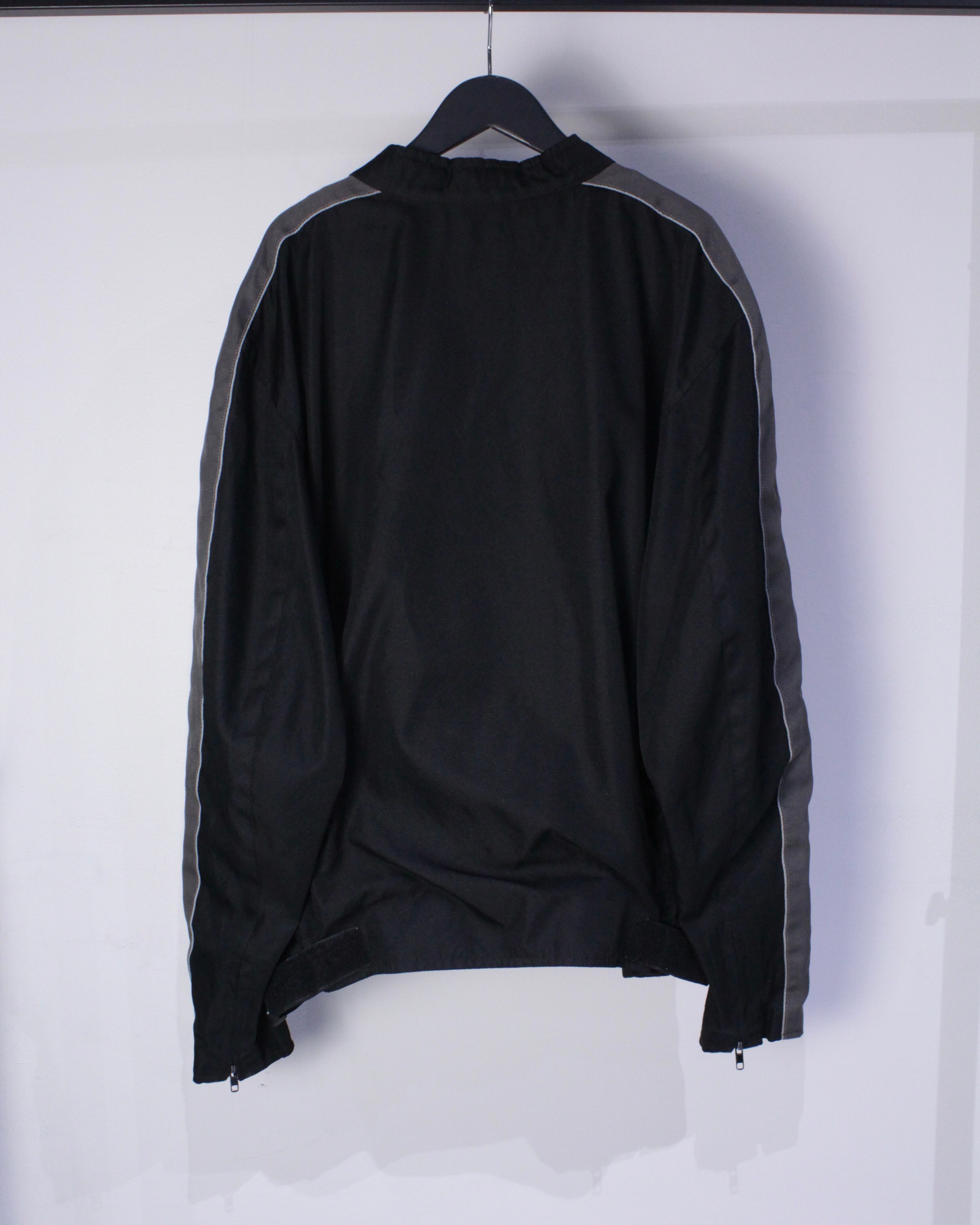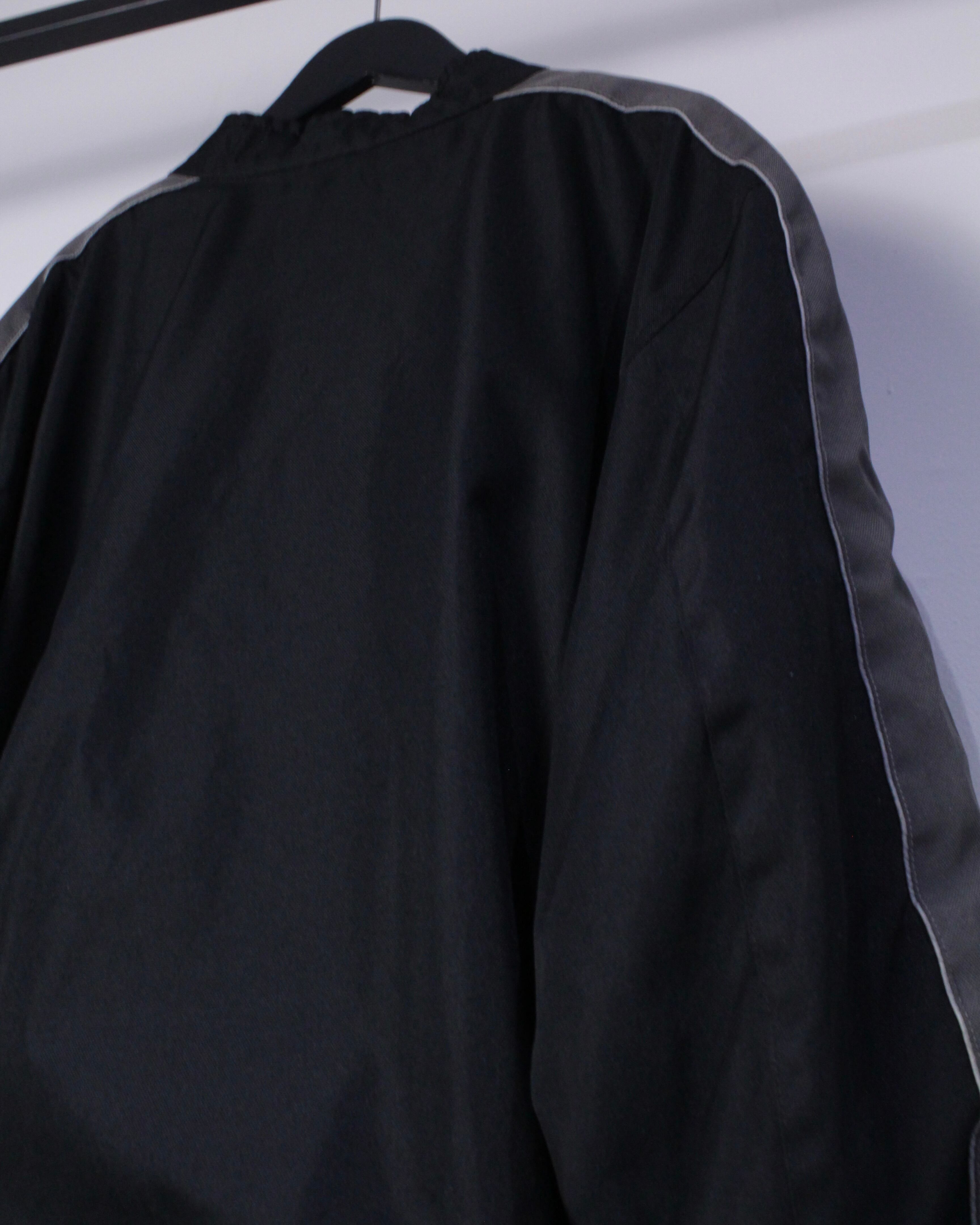 アームにはグレーを切り替え、フロントには4本のジップポケットに、首元にはスナップが取り付けられたスタンドカラー仕様。