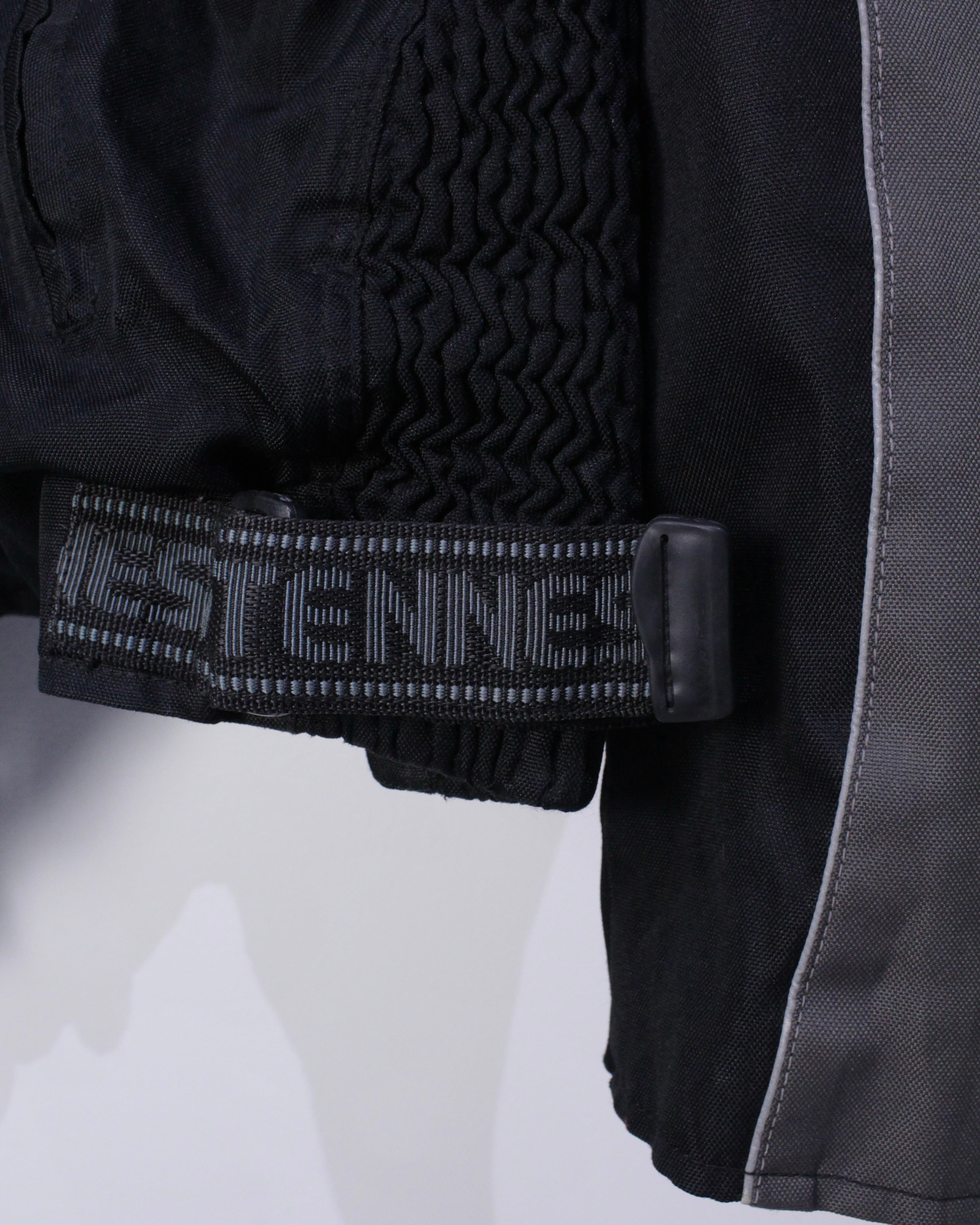 ボディサイドにはシュリンク加工に加えて、ブランドネームが載せられたアジャスターベルトが付属しているので、フィット感も楽々調節可能です。