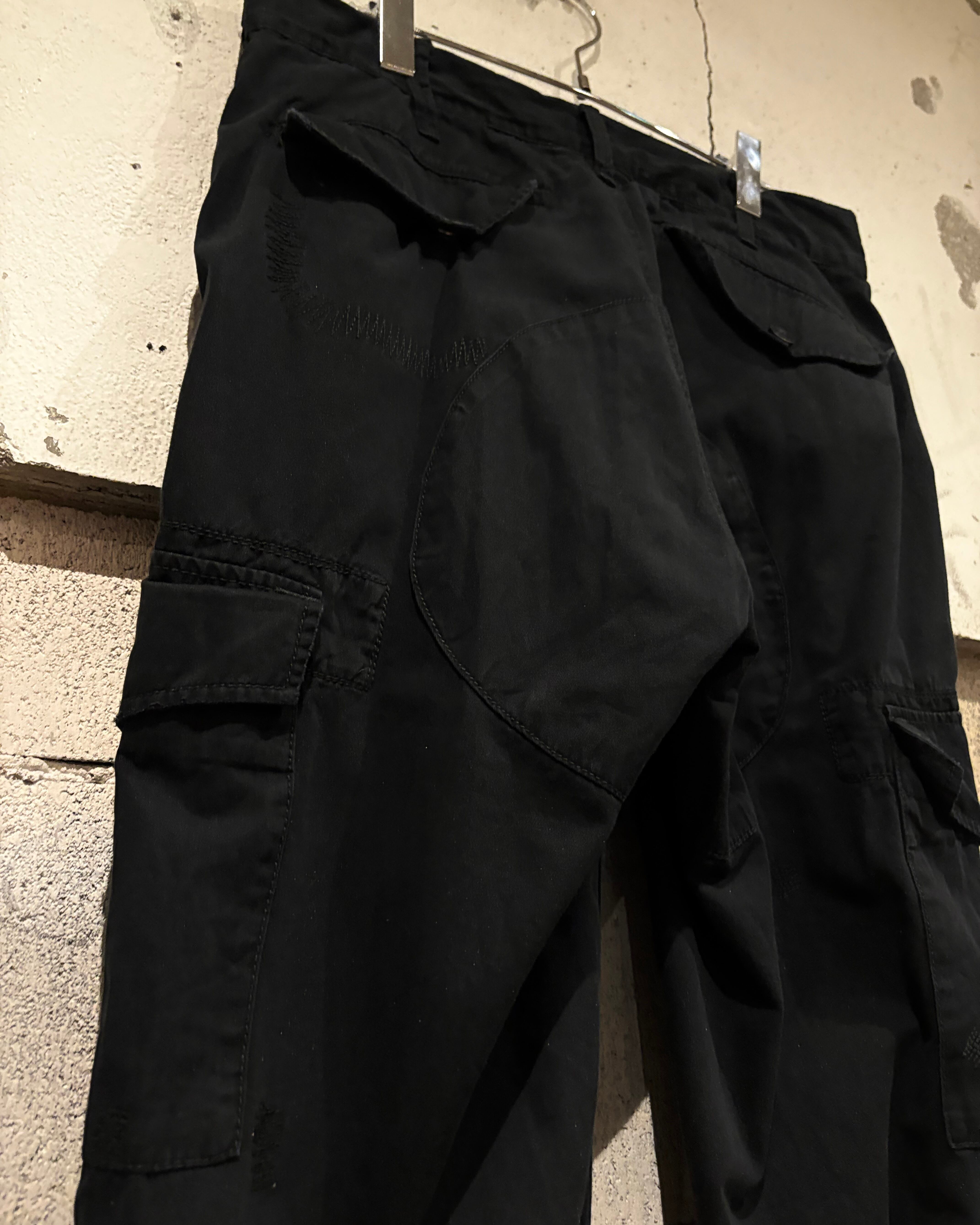 太腿、裾付近、背面に大ぶりのフラップポケット、そしてフロントに大胆なダブルジップのギミック。機能的かつファッション的なディテールの数々に服好きの心を射抜かれます、、、