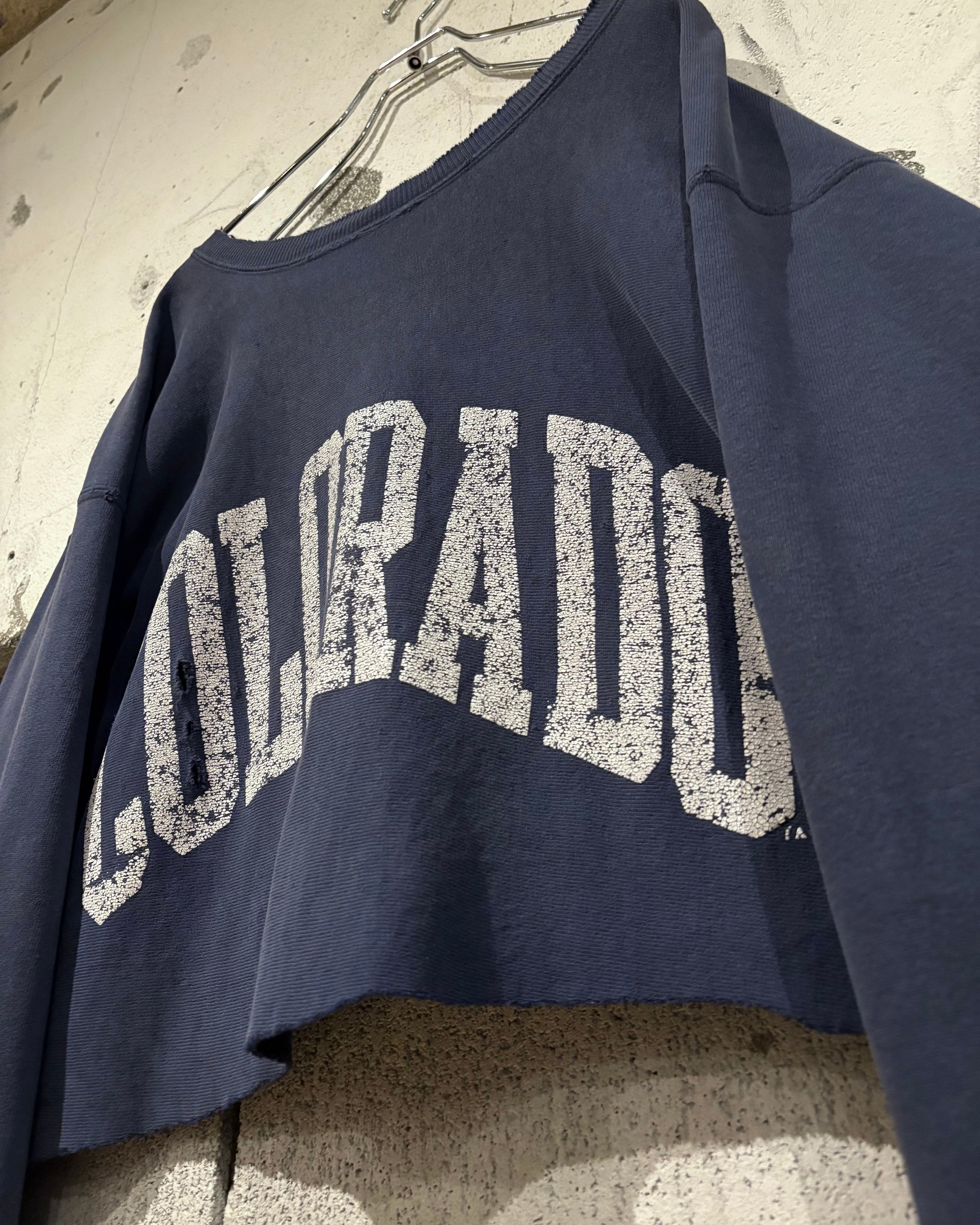 アメリカはコロラド州にある"コロラド大学"のロゴをアーチ状に載せたカレッジスウェットに、裾に大胆なカットオフを施し、クロップド丈にアップグレードさせた逸品。