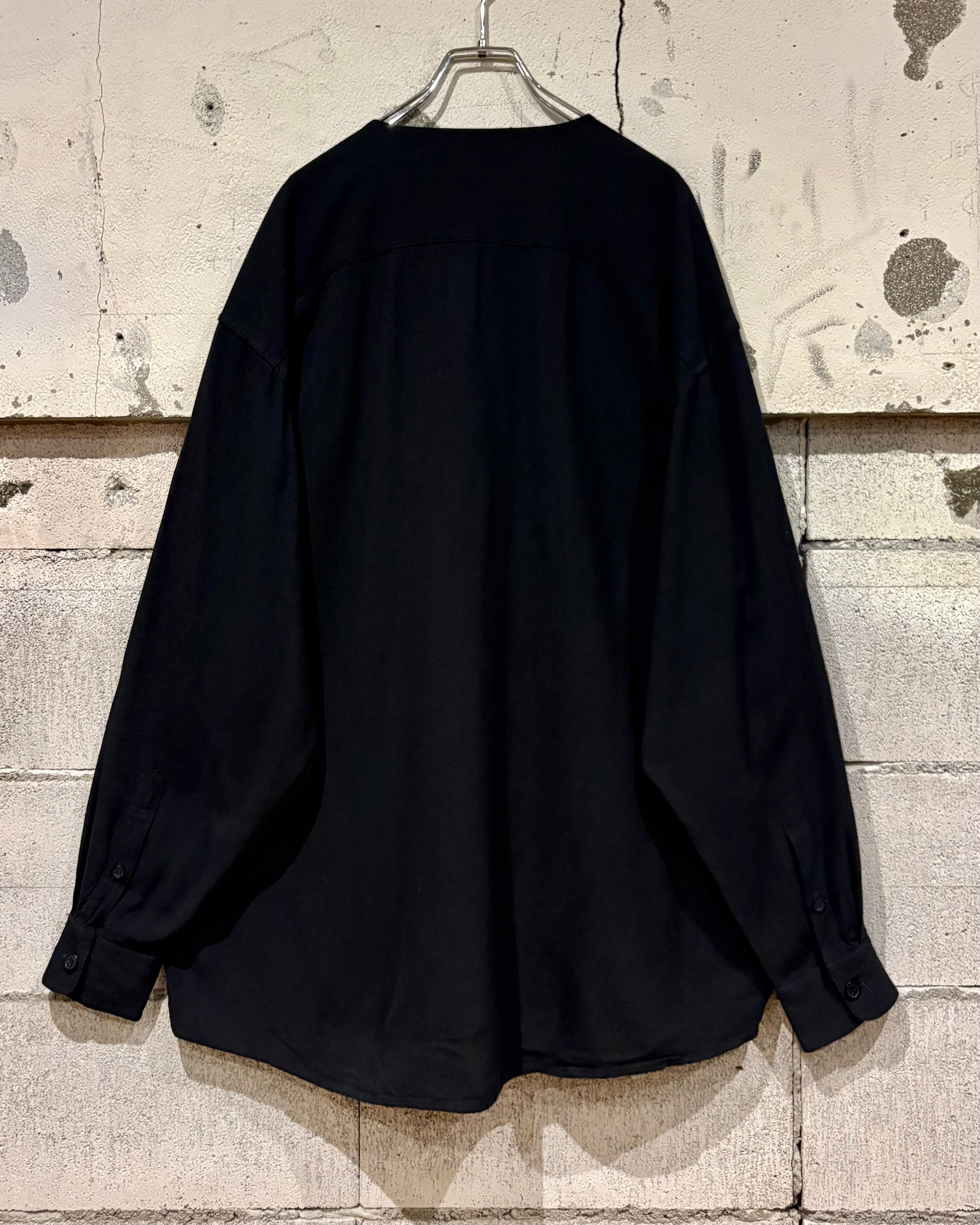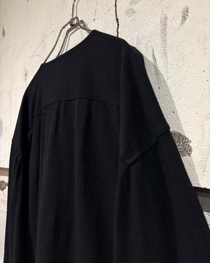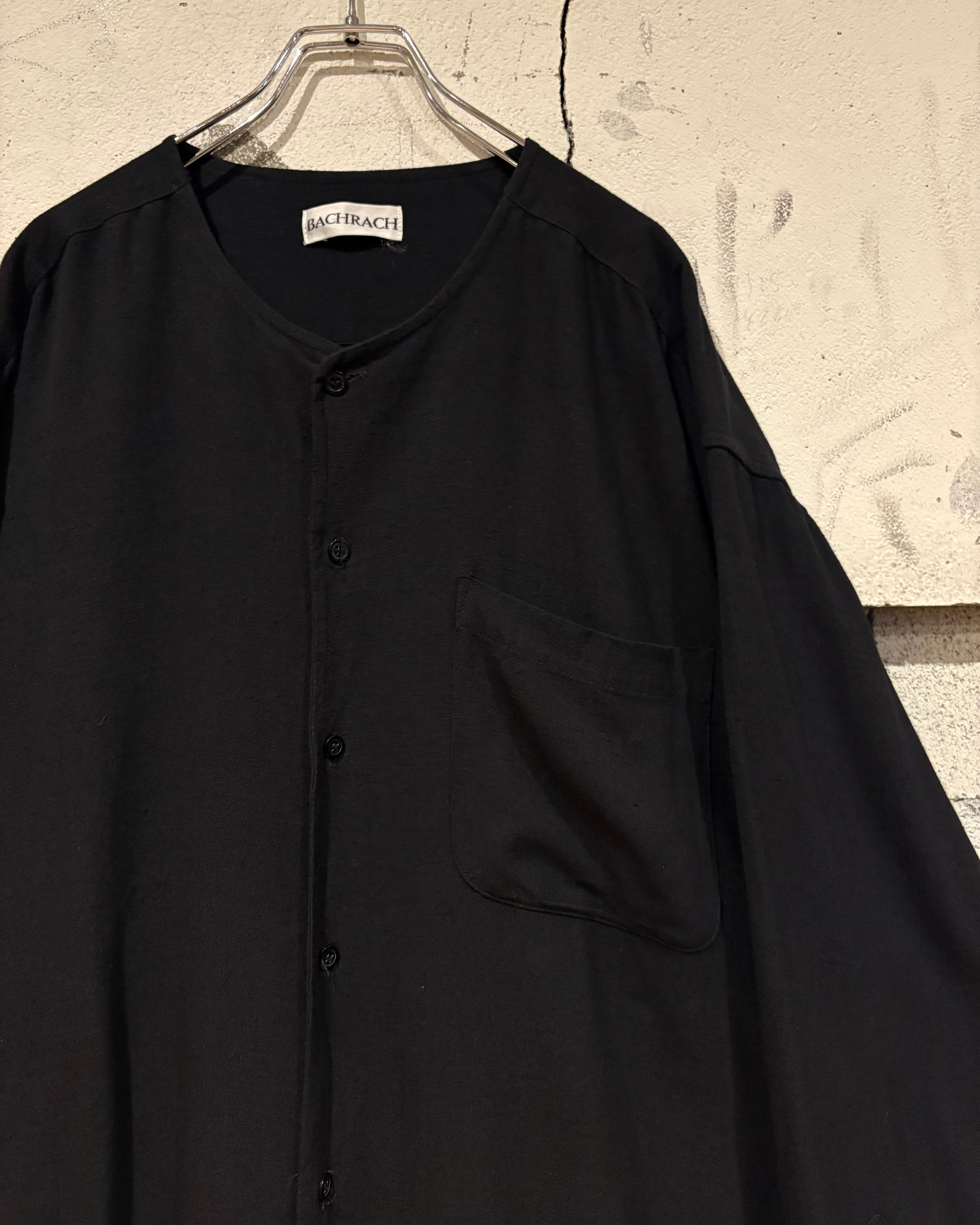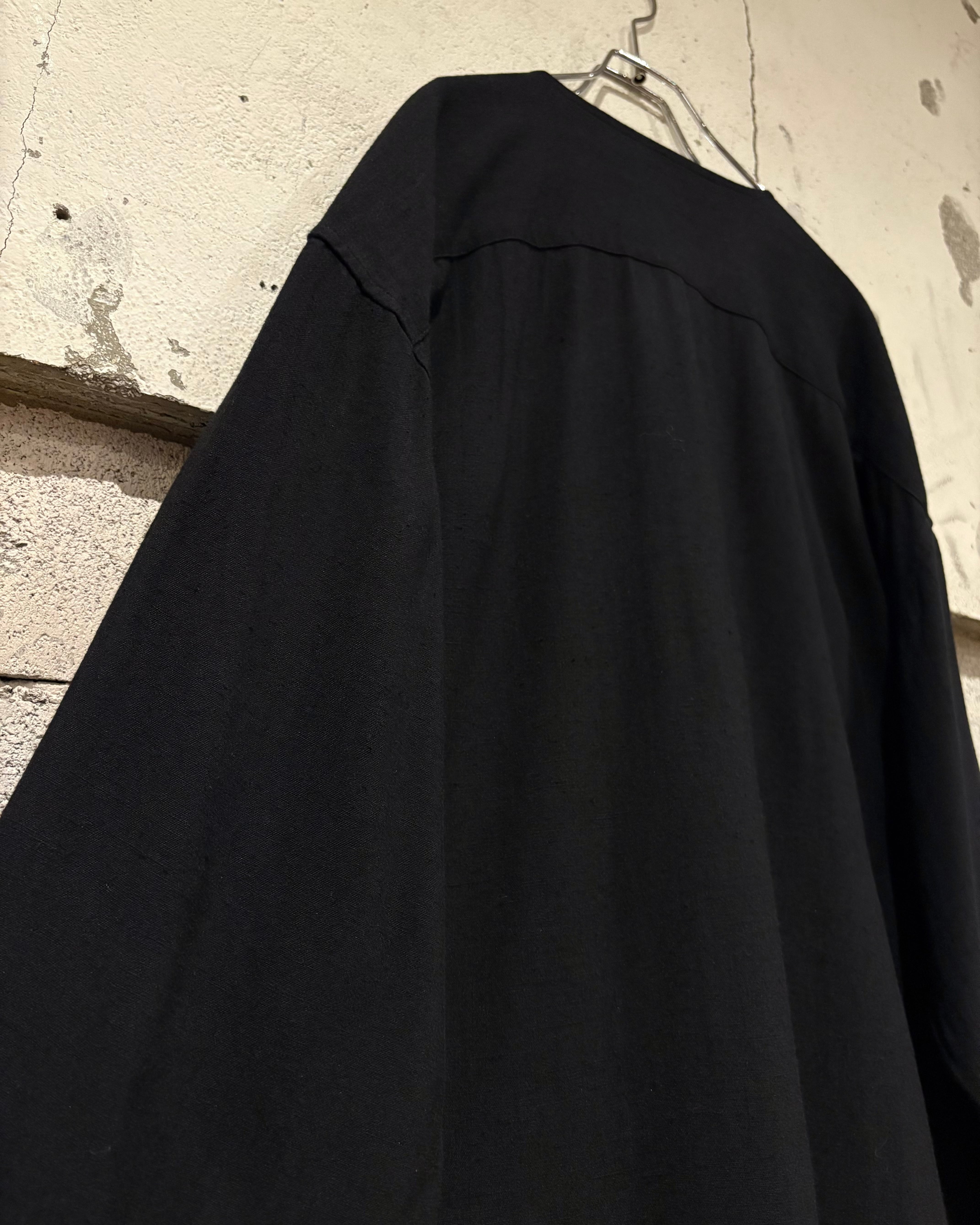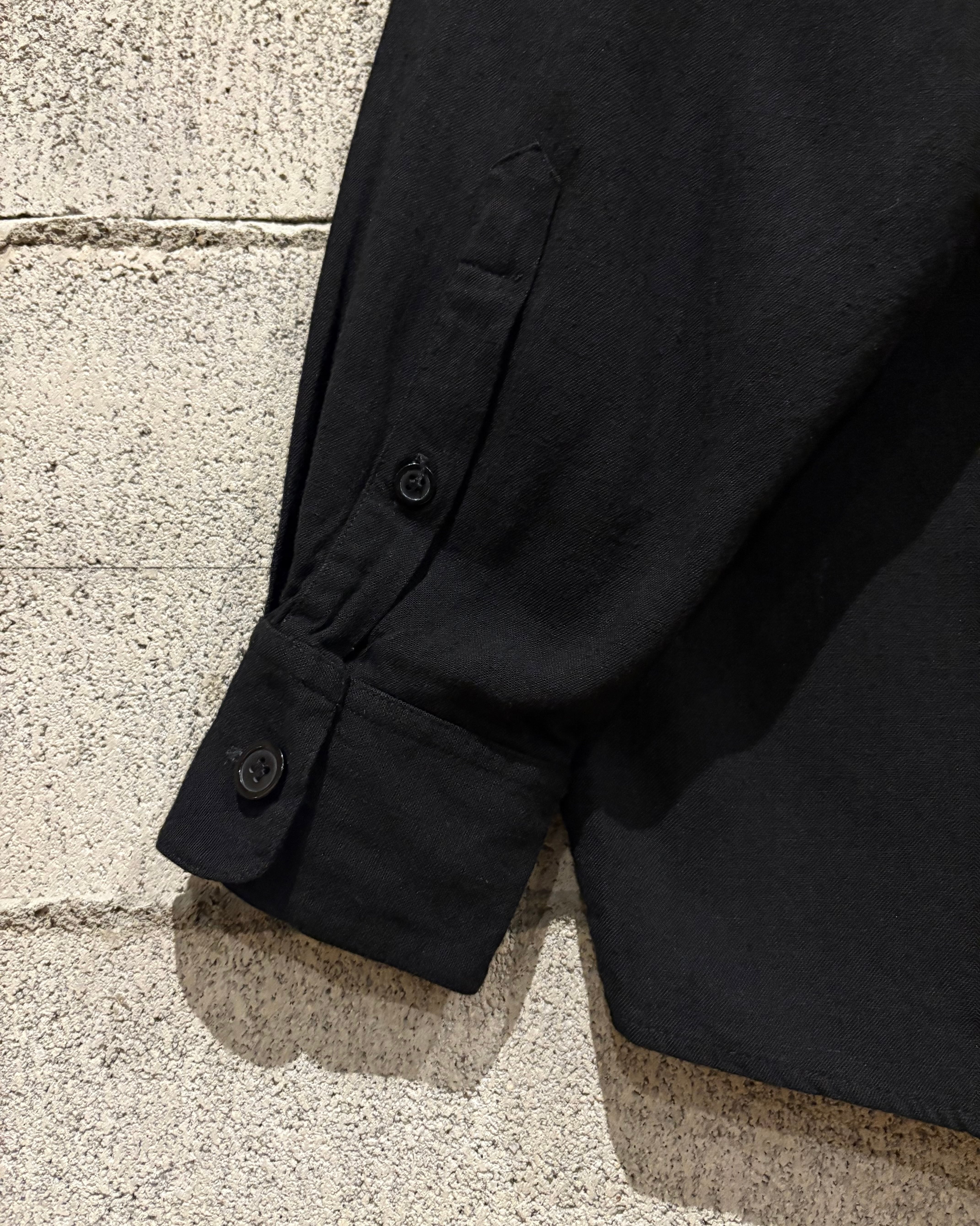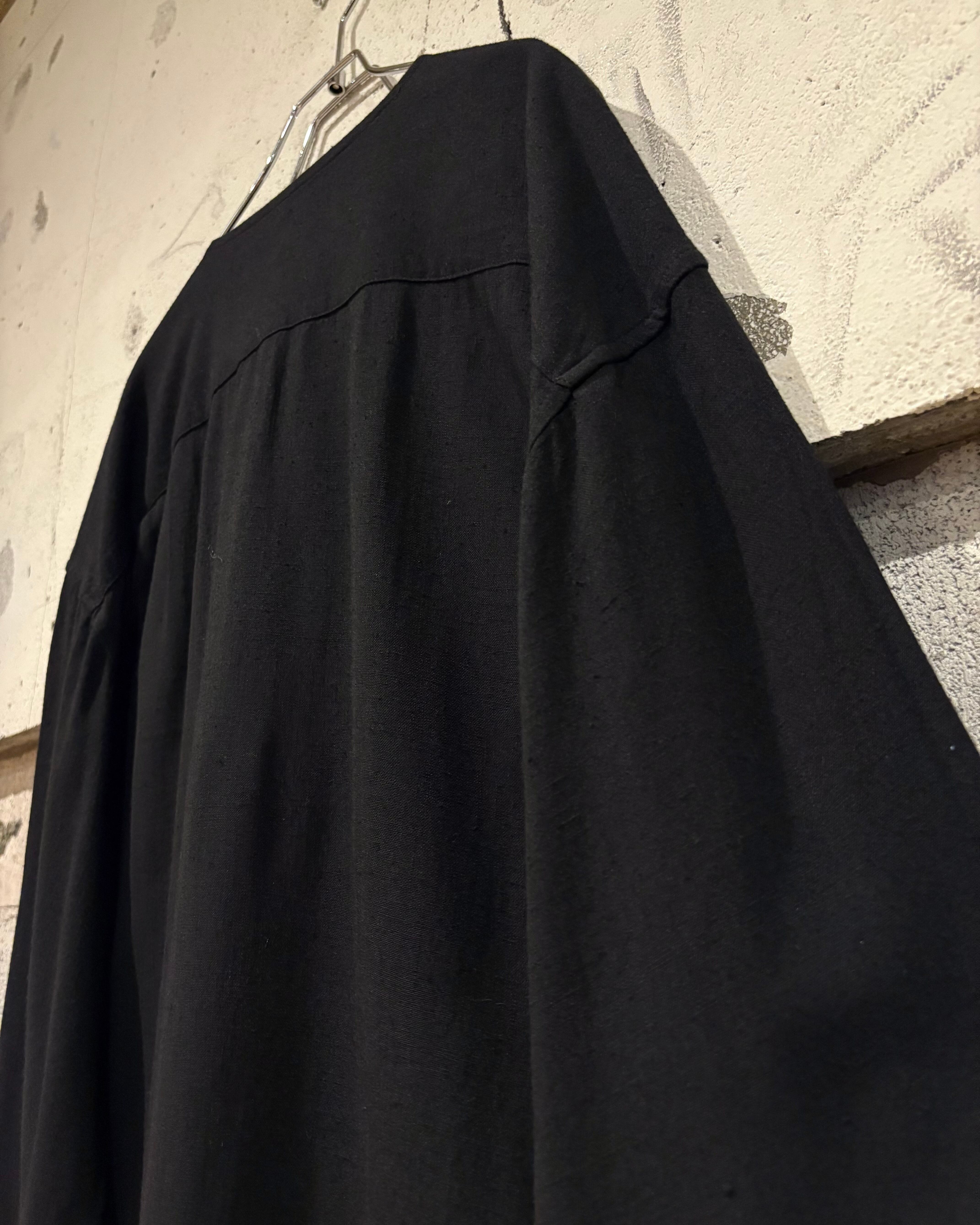 古着業界でも稀少性が高まったブラックリネンを贅沢に用いた、ノーカラーの長袖シャツ。