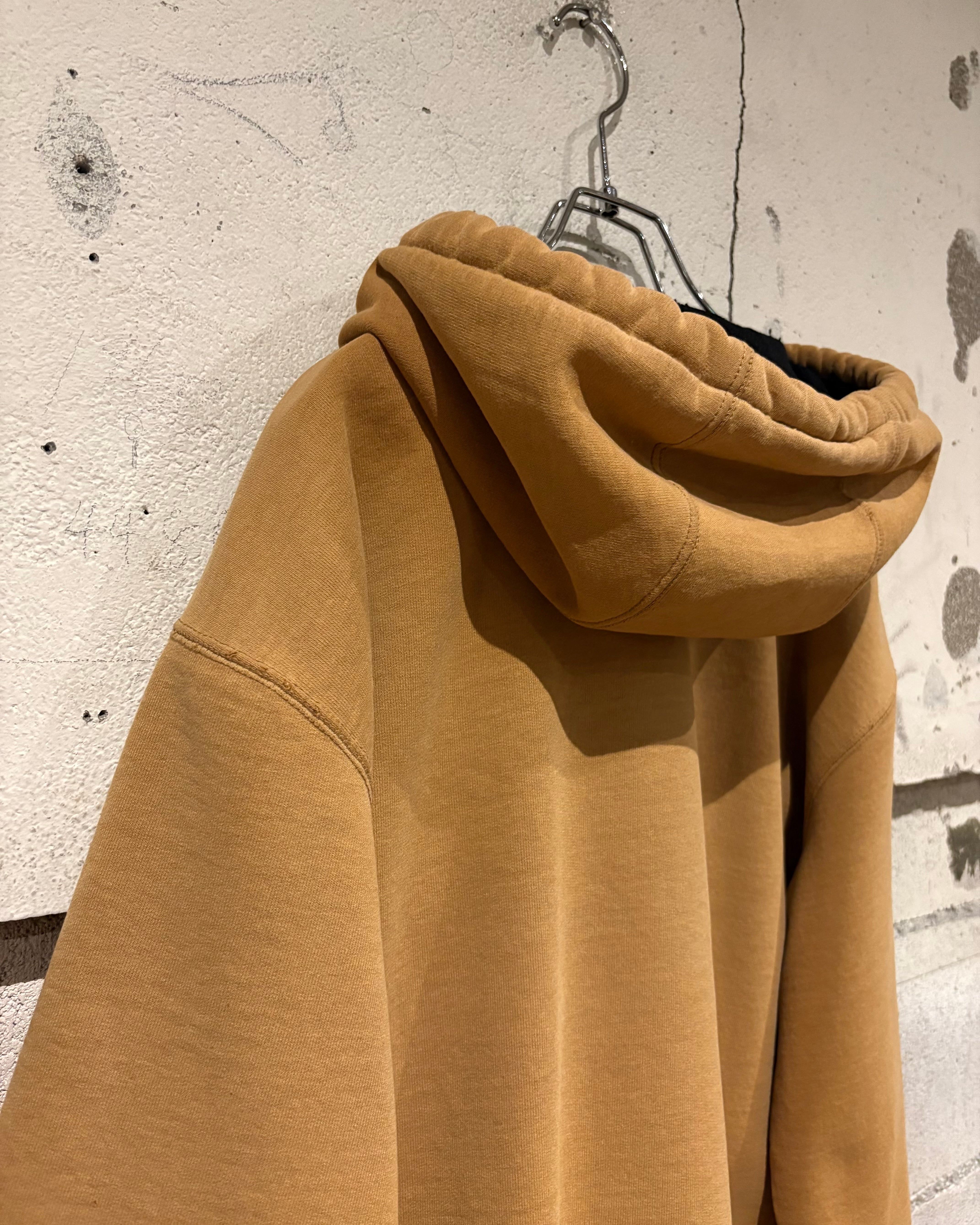 肉感のあるマスタードイエローのボディが、経年変化によってフェードしたジップアップフーディ。