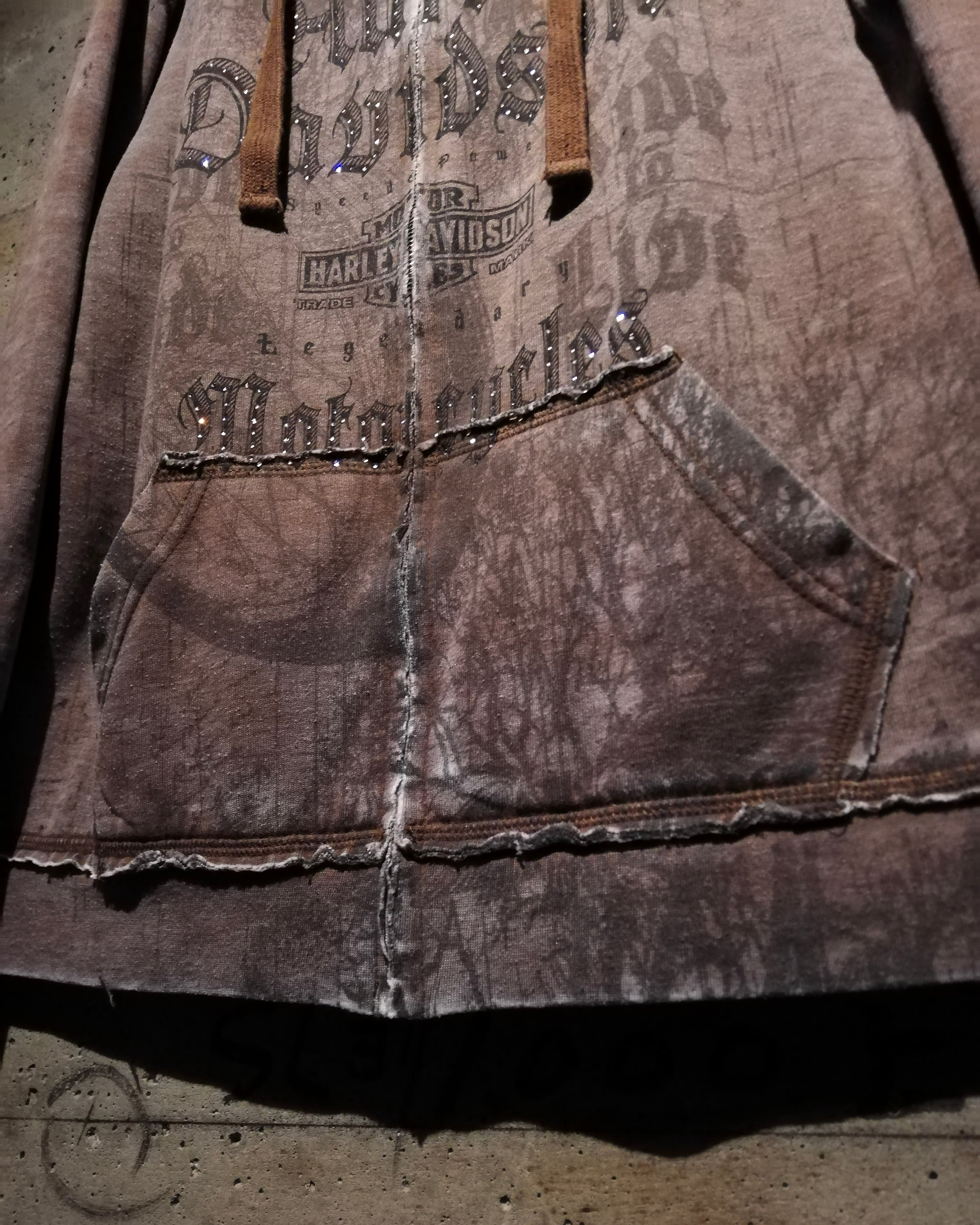 古着ならではのフェード感に、ゴシックなデザインと装飾が組み合わさった、抜群の存在感を見せる"HARLEY DAVIDSON"の逸品です。