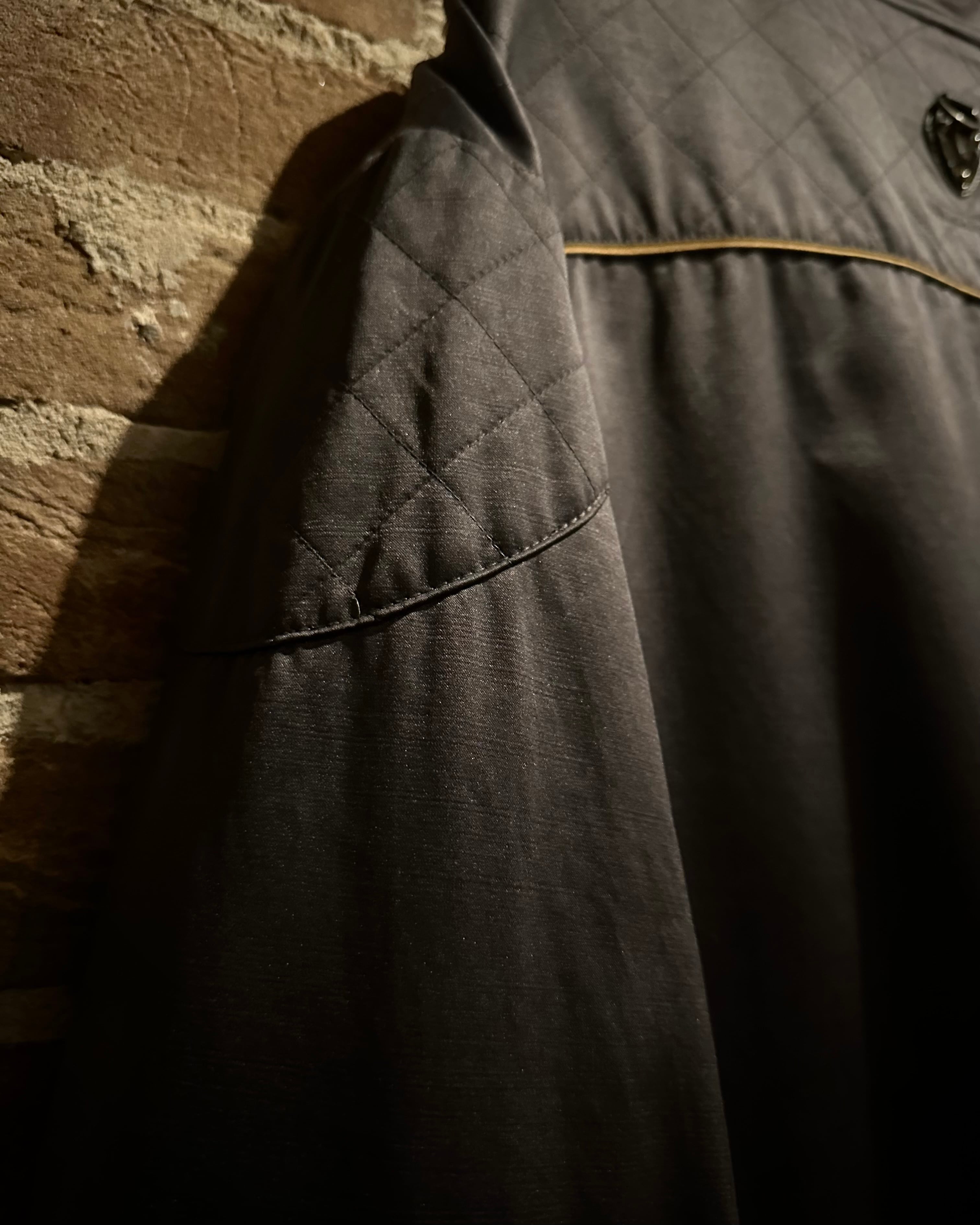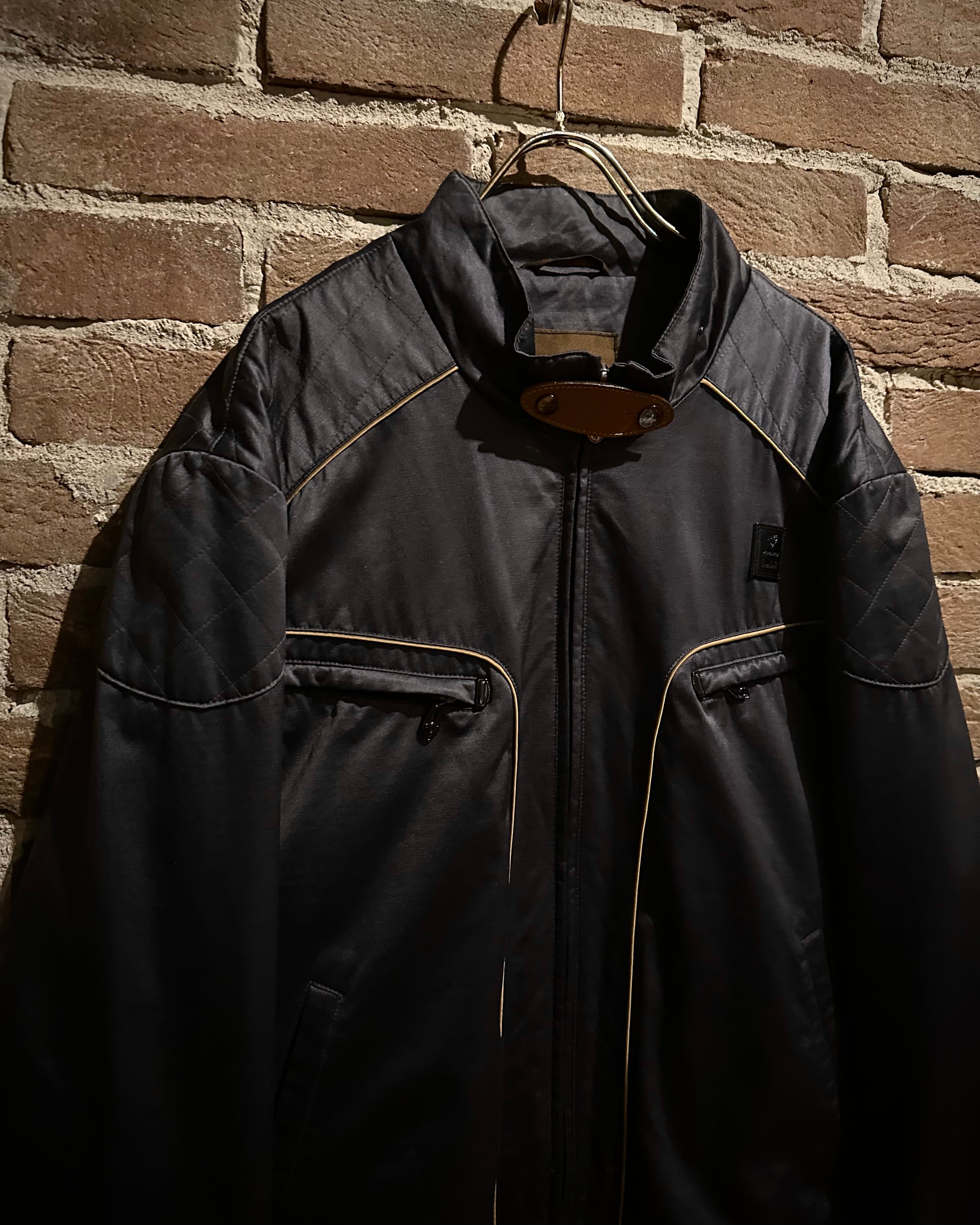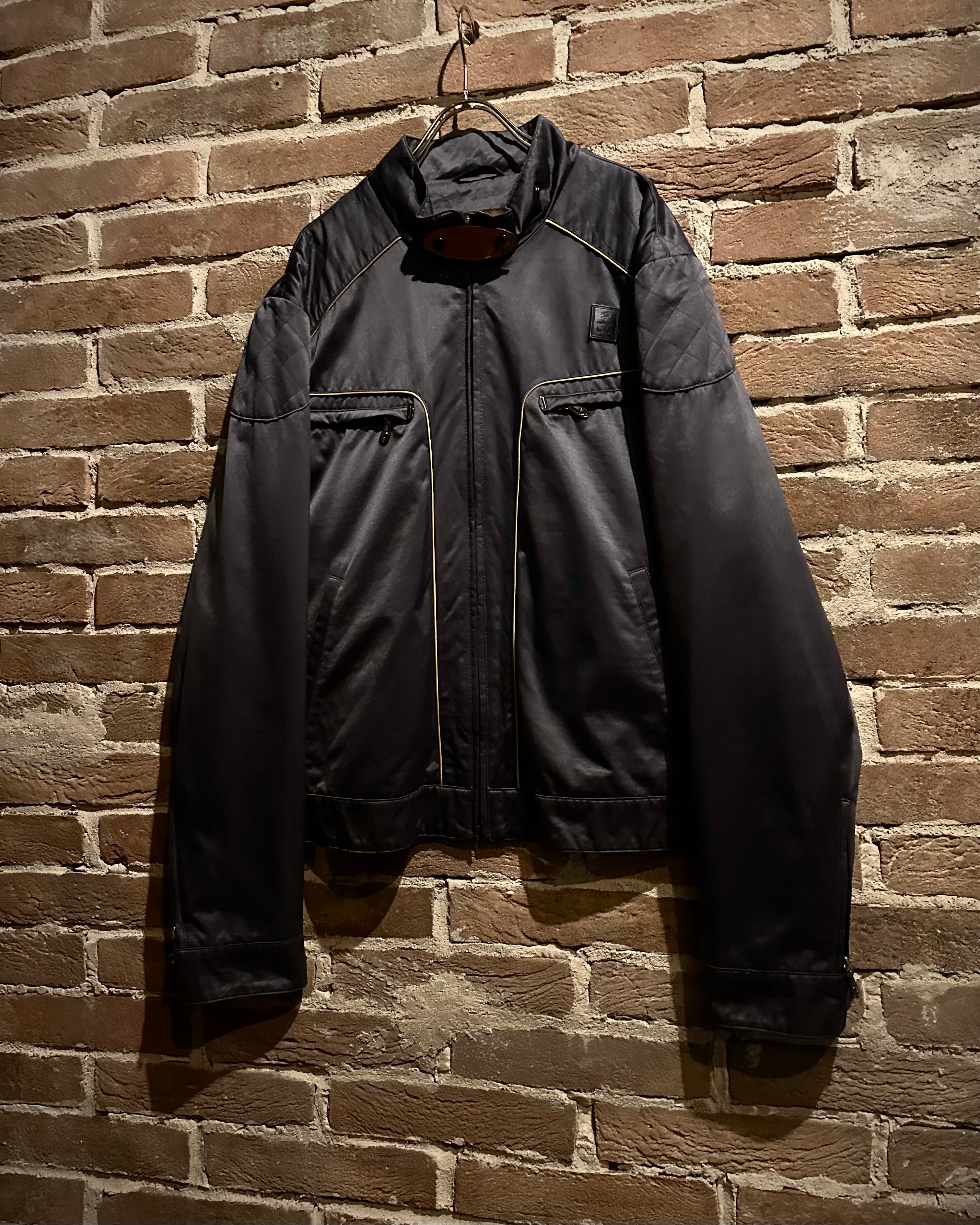 ナイロン×コットンを混紡した光沢のある生地を用いたレーシングジャケット。