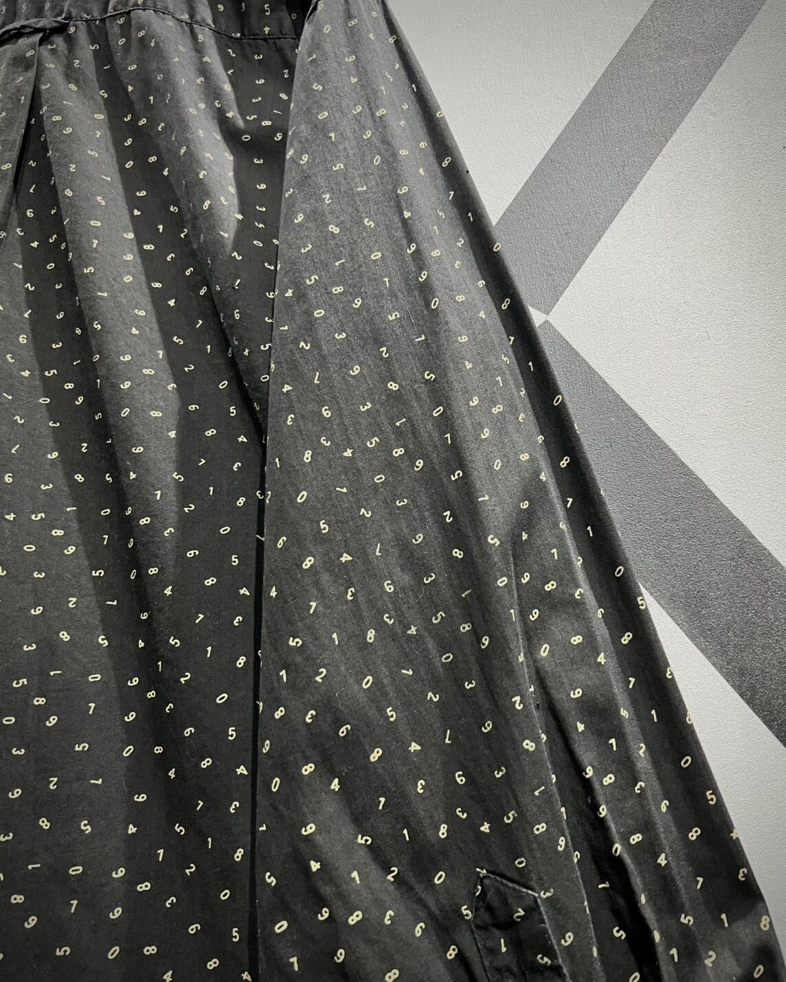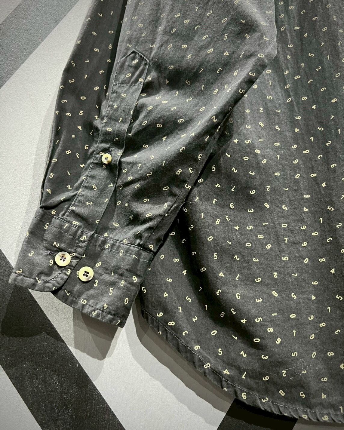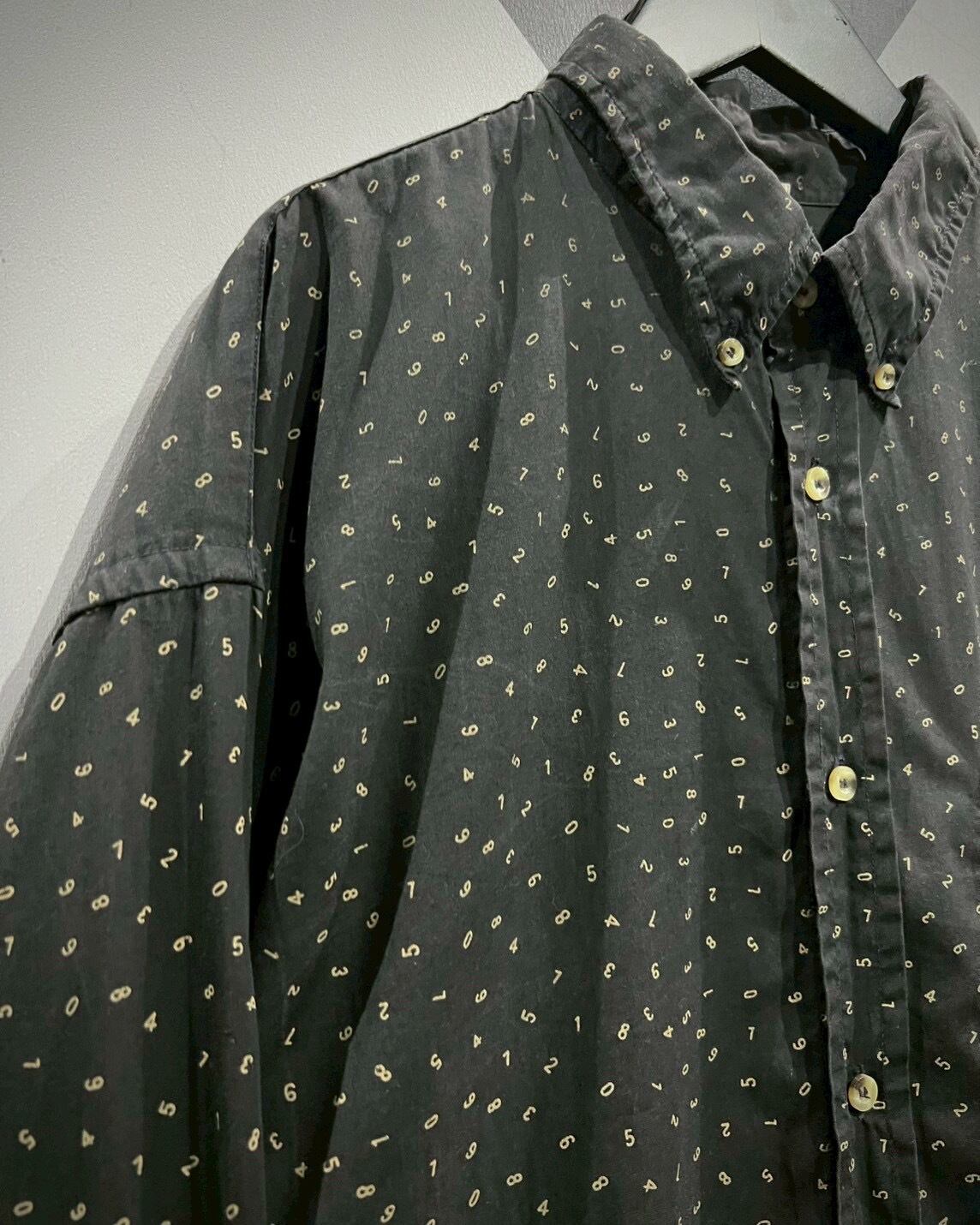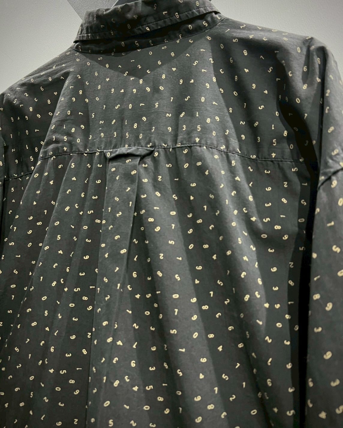 ブラックのボディをベースに、数字をボディ全体に散りばめた長袖シャツ。