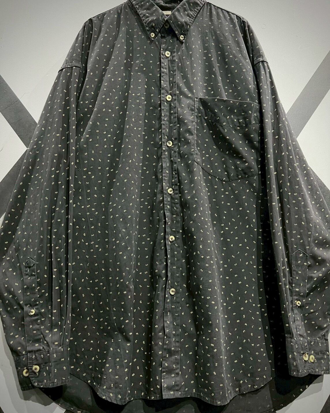 総柄かつユニークなデザインアプローチによって生まれた、当店らしいモードな雰囲気漂う1着で、ヴィンテージの総柄シャツの中でも稀有な個体かと。