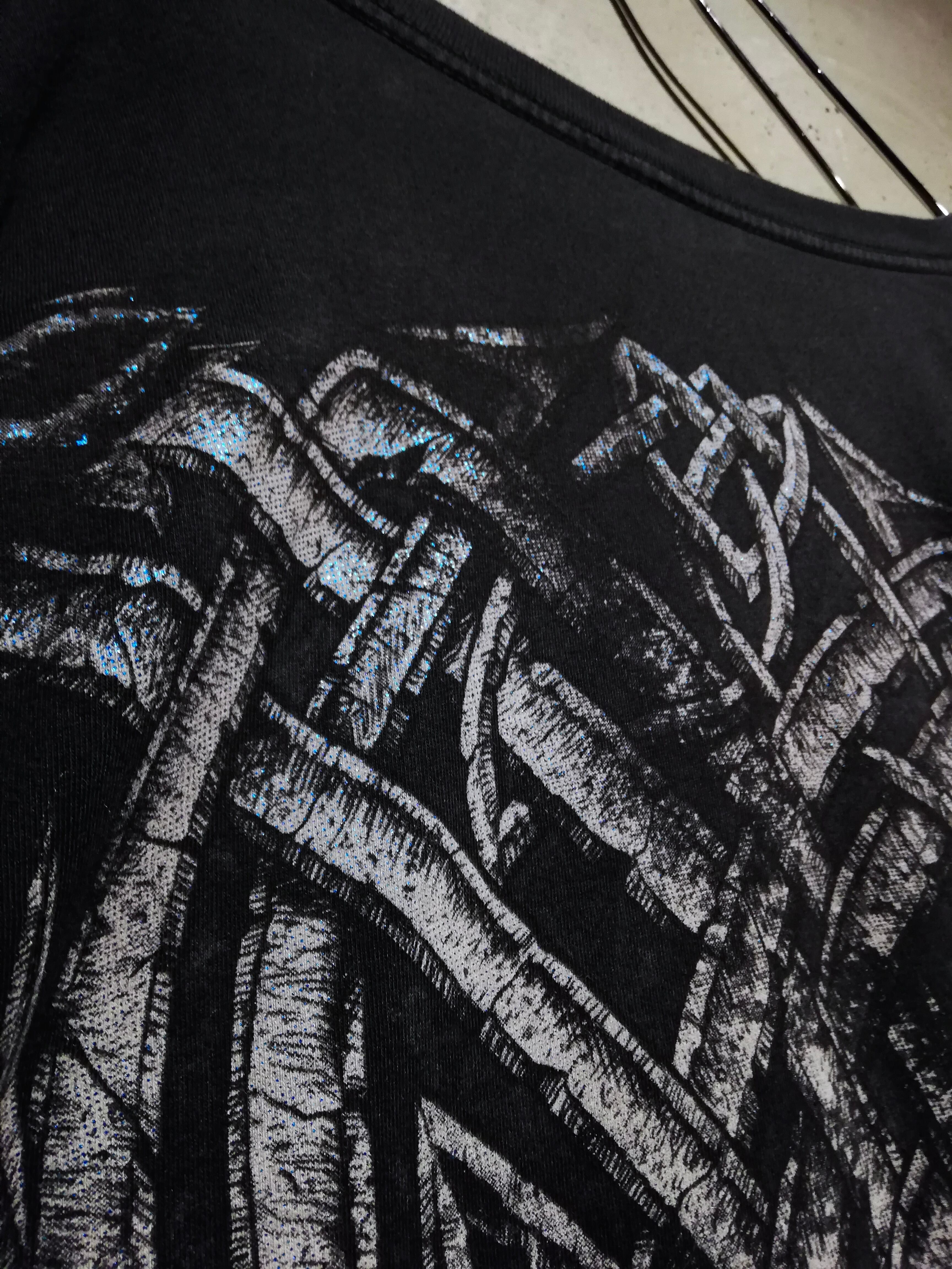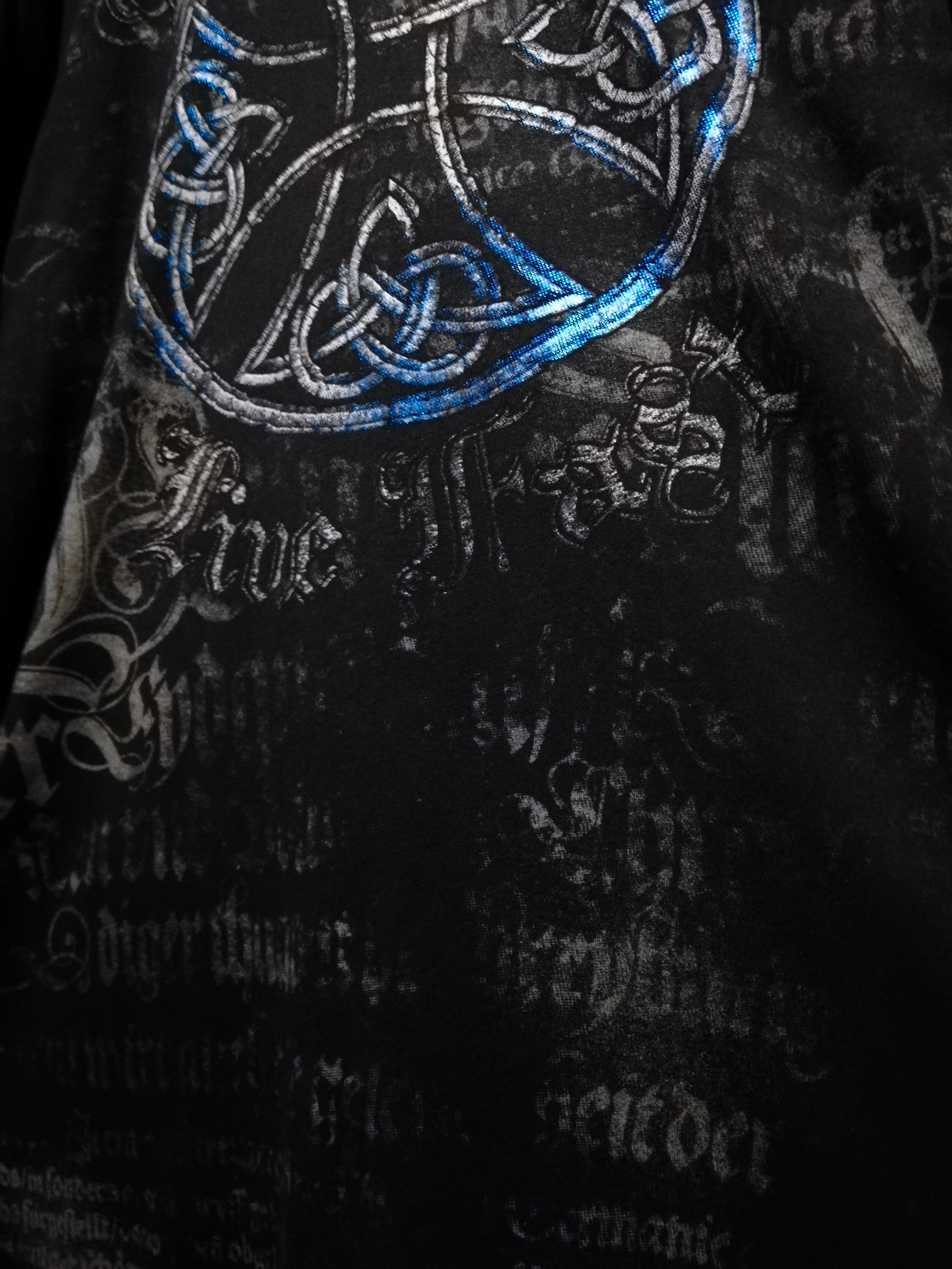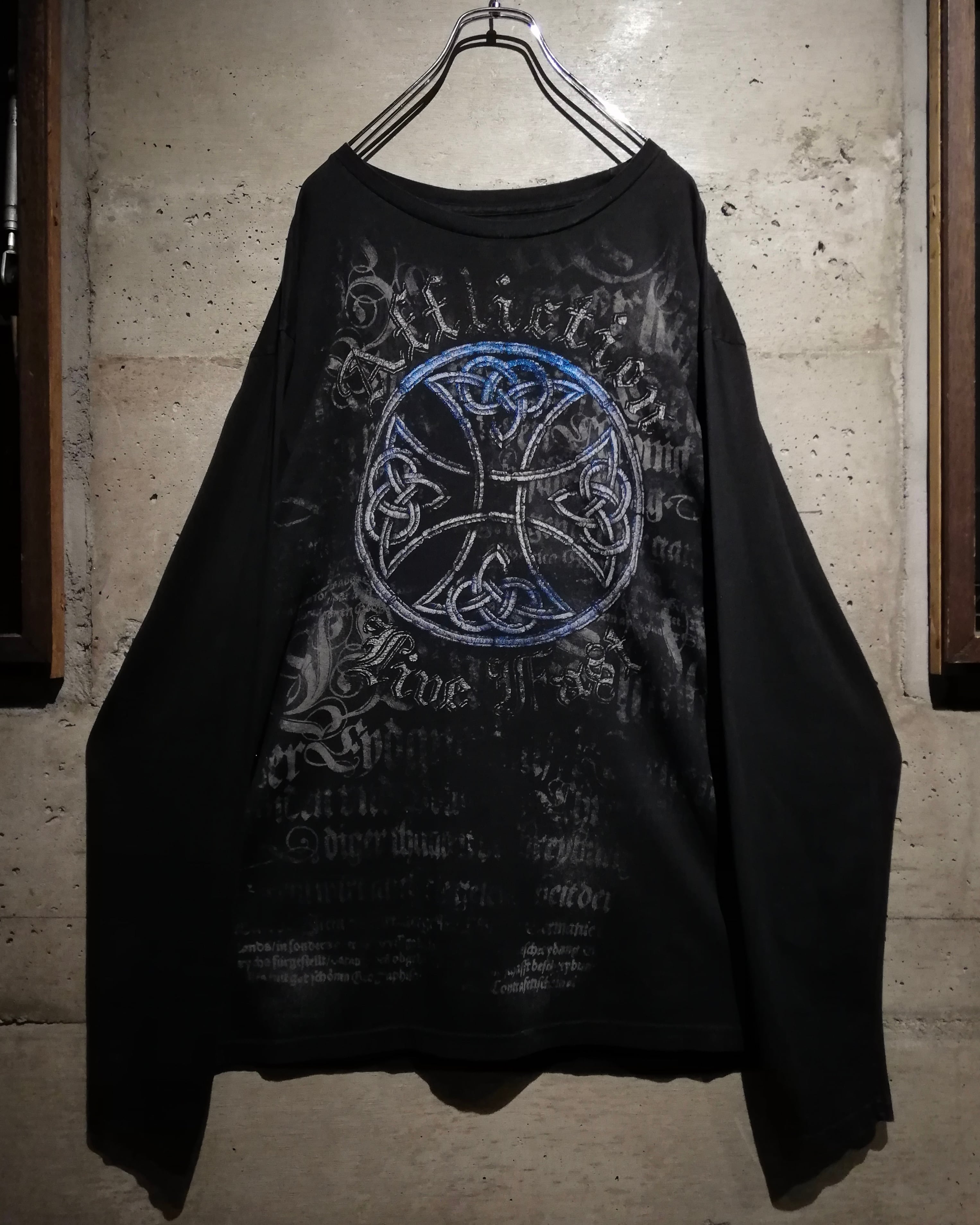 ハードなグラフィックながらもプリントの質感やカラーリングによって立体感と奥行きが表現された、稀有かつスペシャルな”Affliction”のロンT。今のトレンド感を捉えつつ、唯一無二の存在感を放つ逸品となっております。