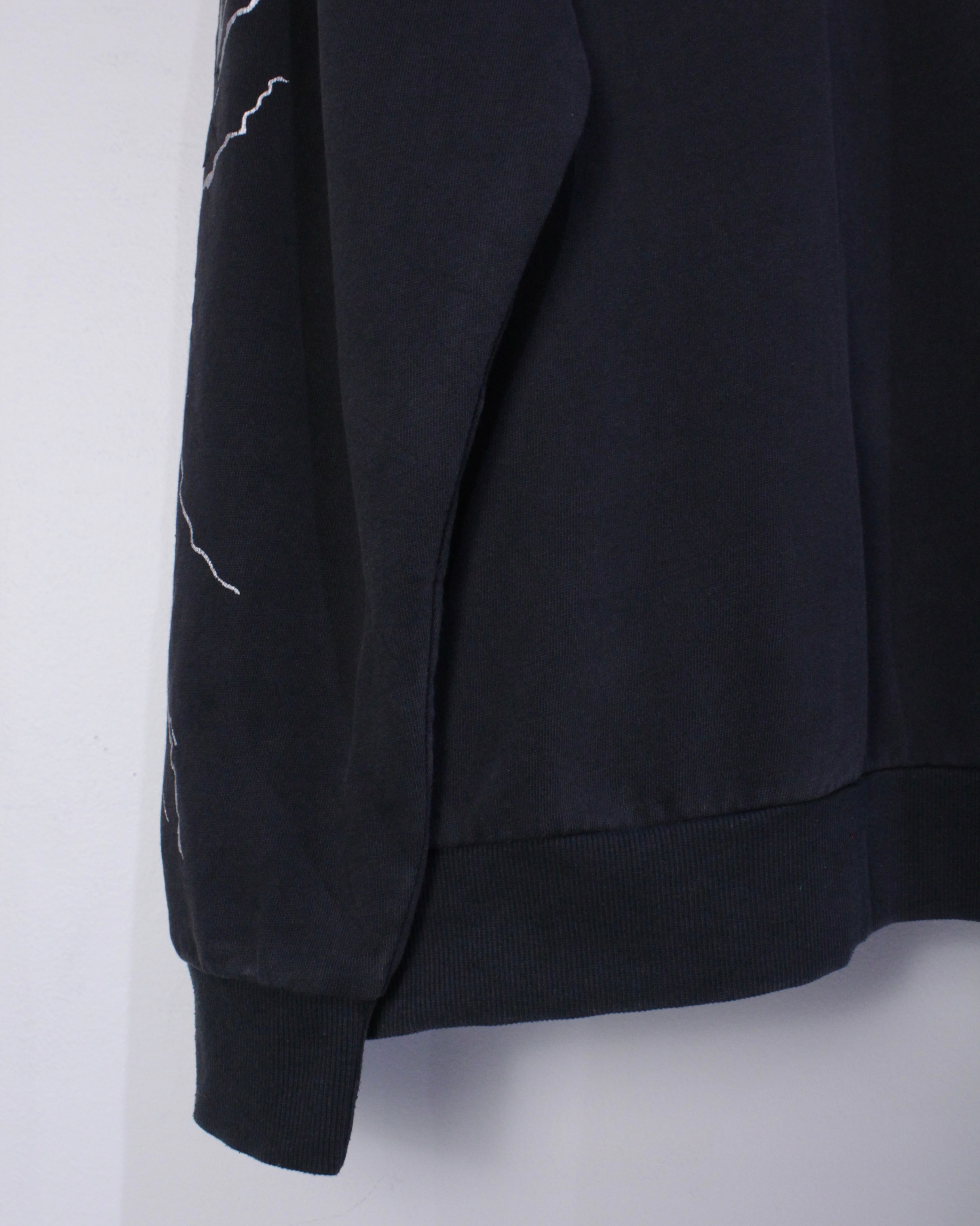 スカルに羽という幻想的かつ退廃的なモチーフの組み合わせは圧倒的存在感を放ち、トレンドもあるY2Kな空気感を演出。フェードの効いたボディとの相性も抜群で、古着ならではの風合いも大きな魅力となっています。
