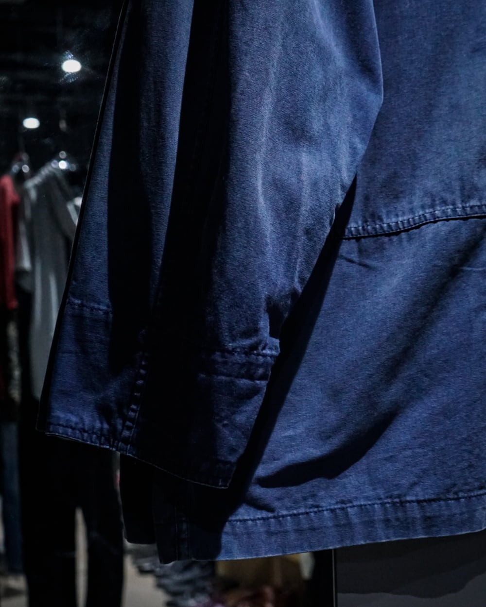 ダック地特有のタフさに加え、ルーズなサイジングで肩からの落ち感も絶妙。無骨ながらも洒落感を漂わせるシルエットに仕上がっています。