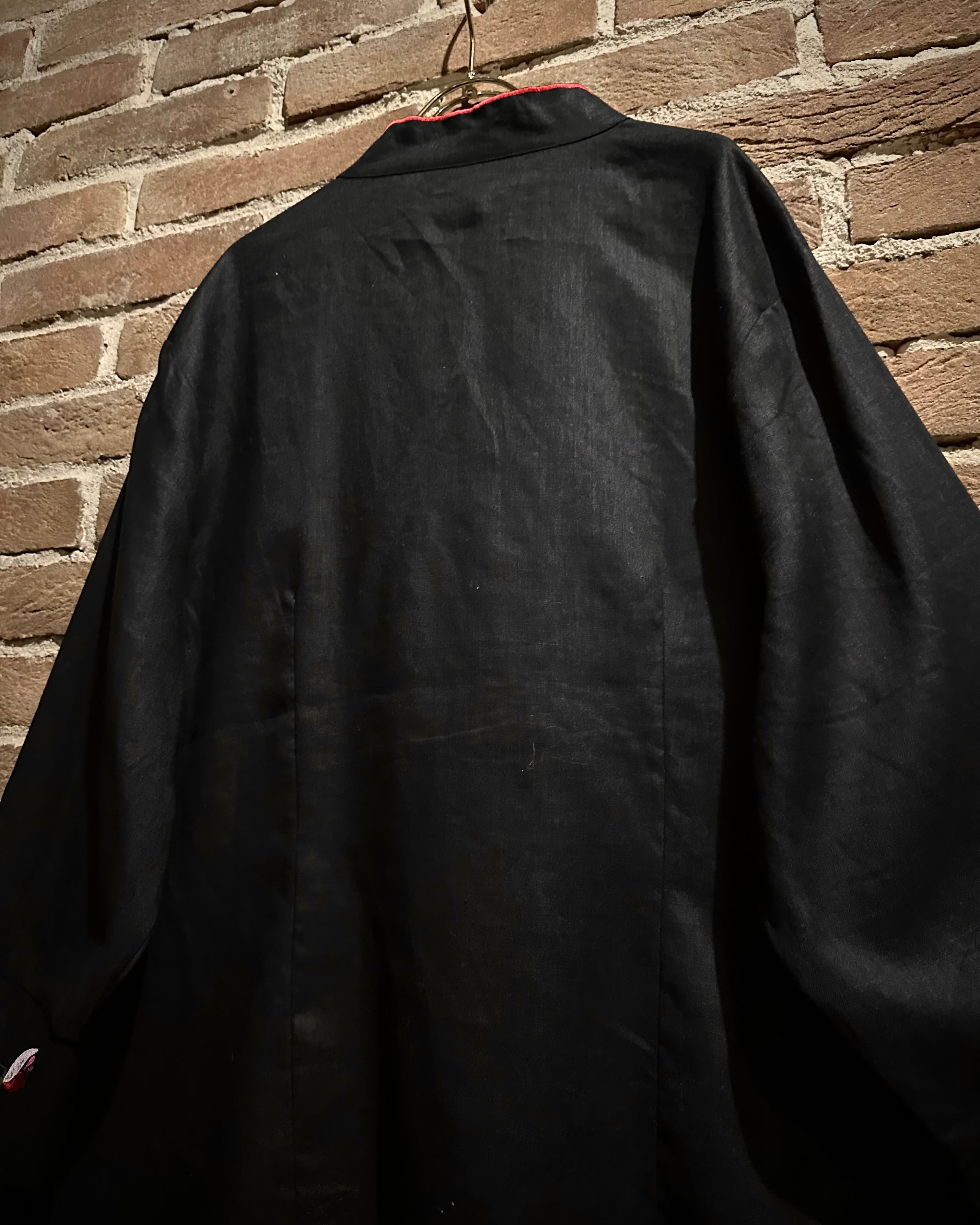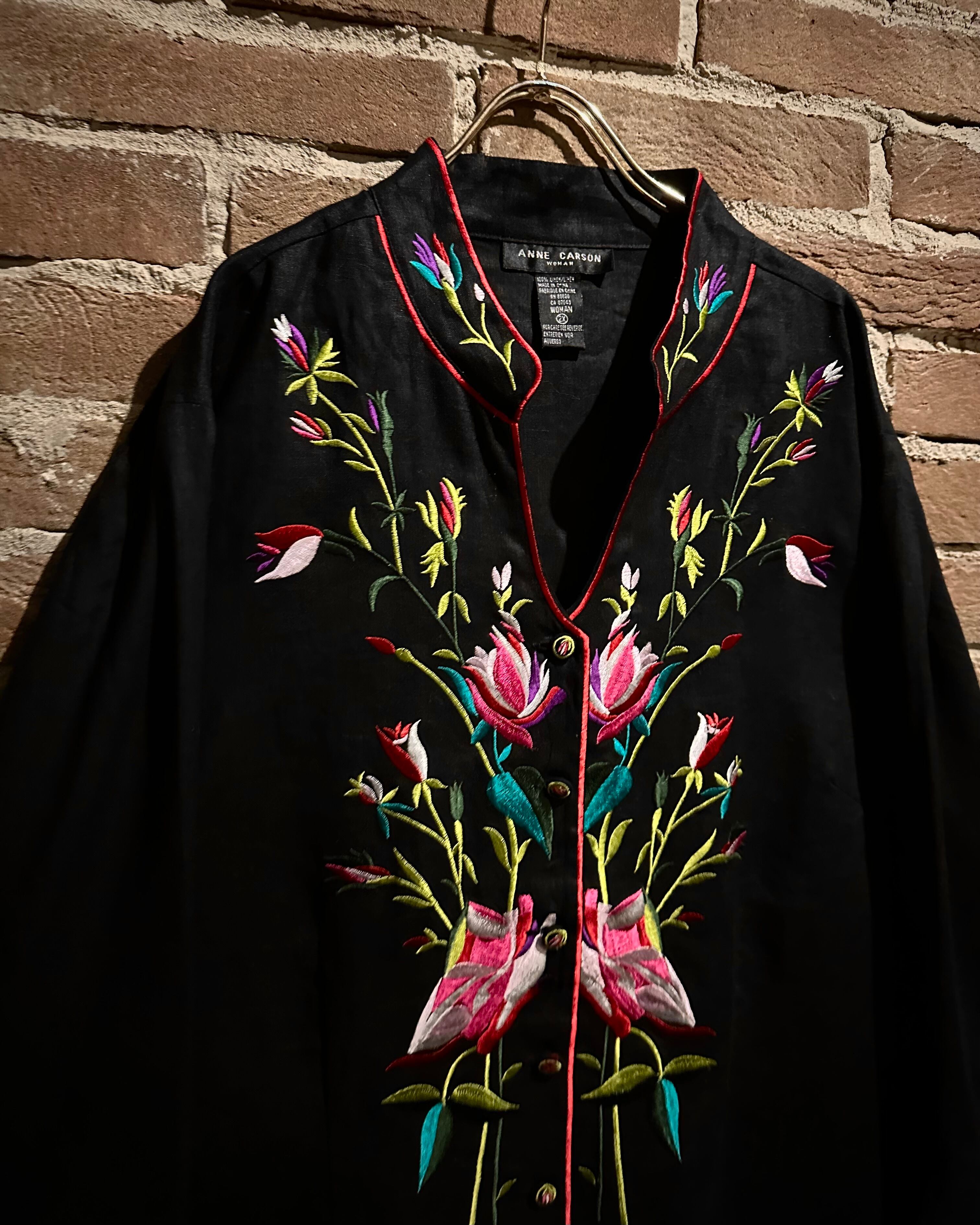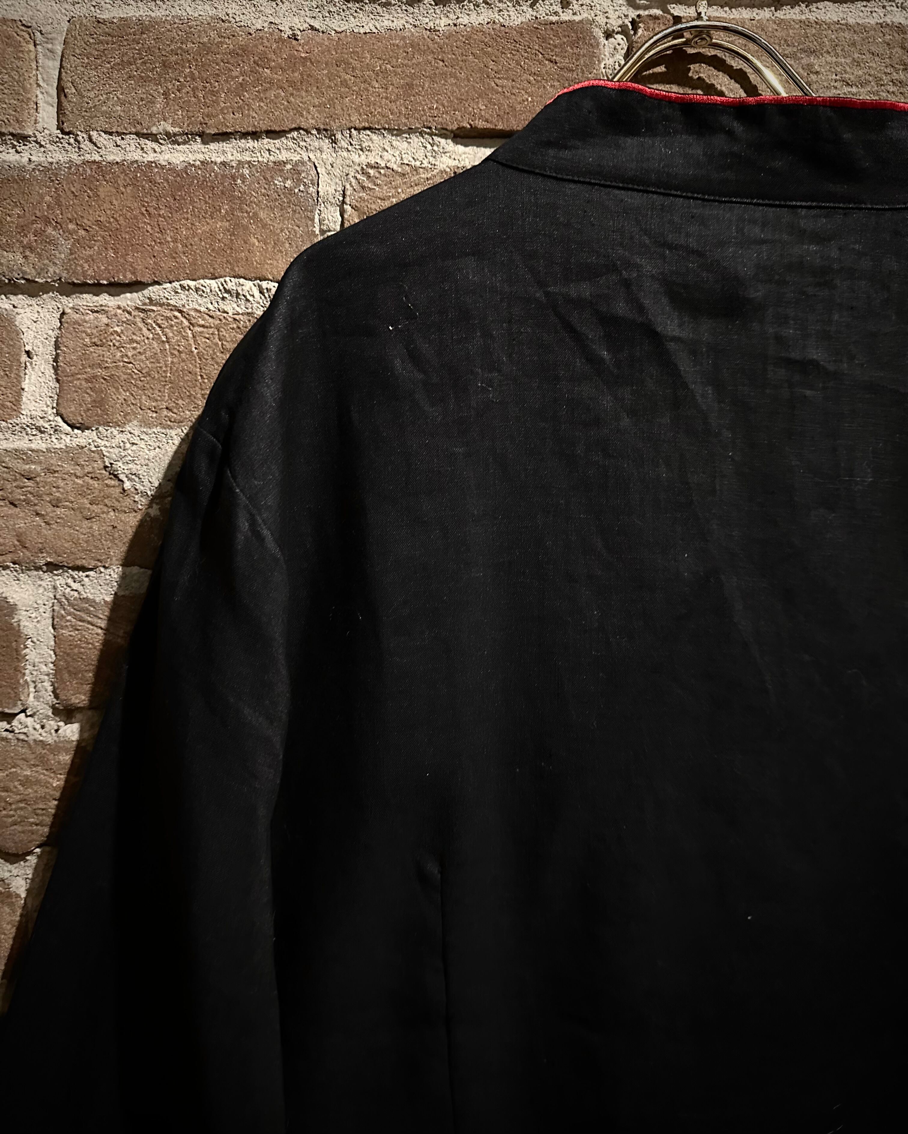 古着業界で稀少性が高まったブラックリネンを贅沢に使用し、フロントに美しい花の刺繍を施したスペシャルなシャツジャケット。