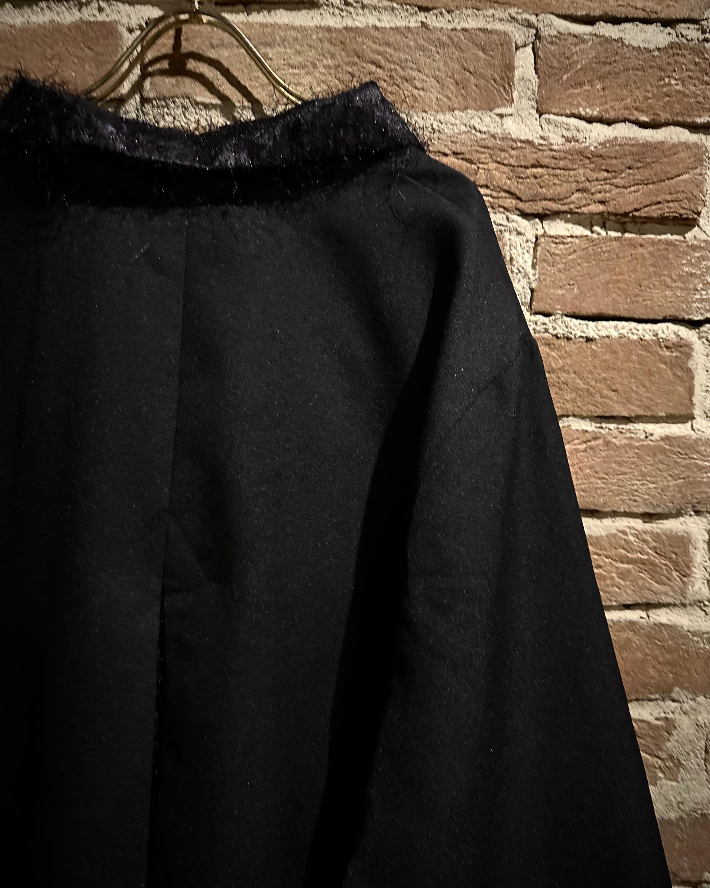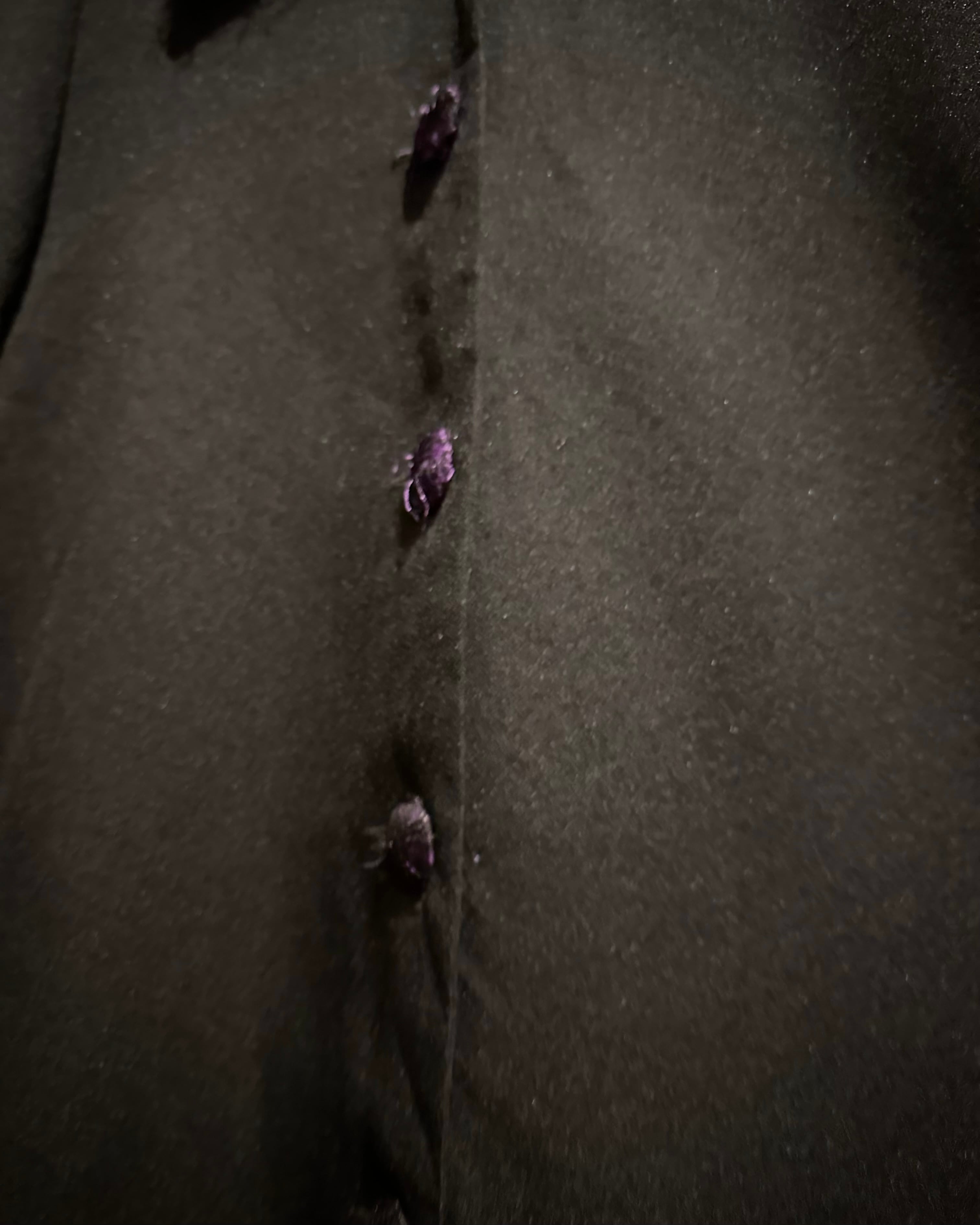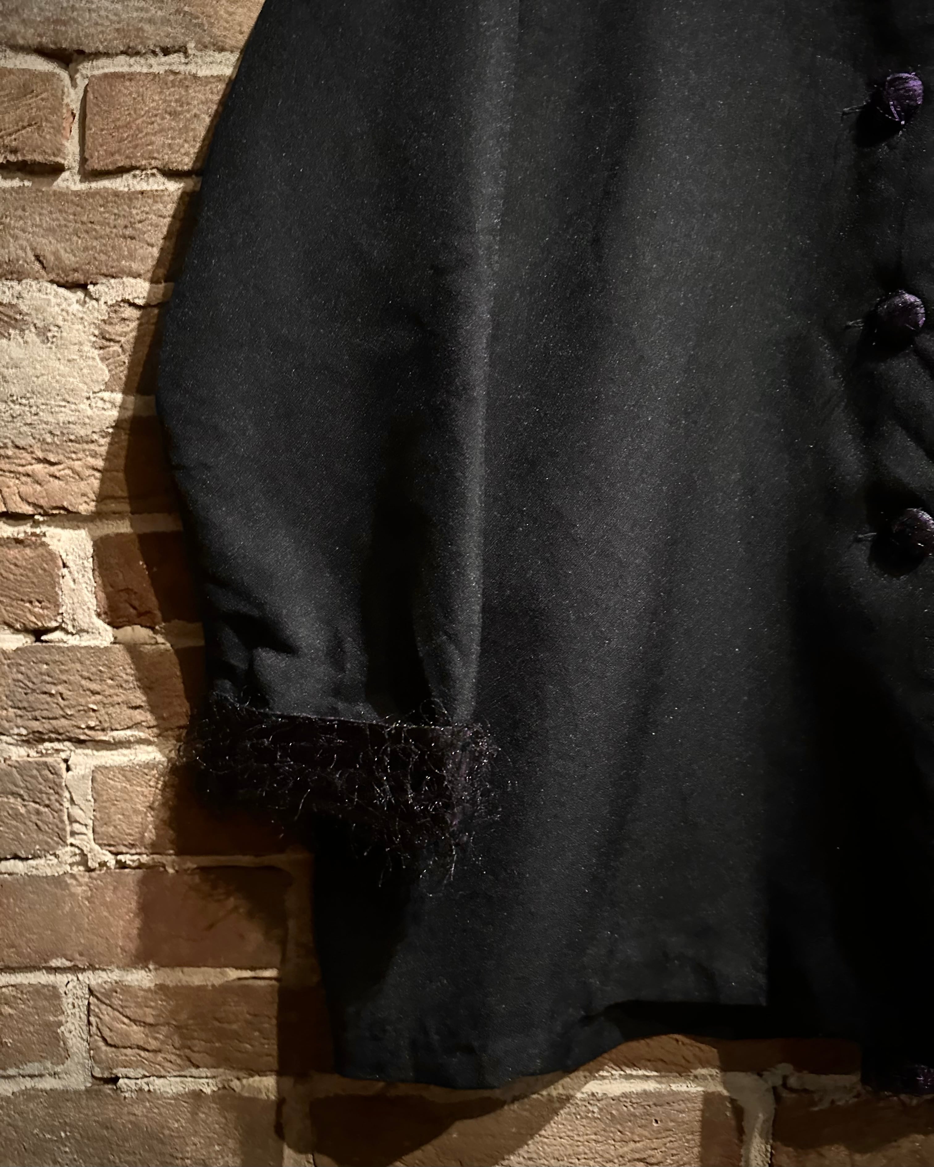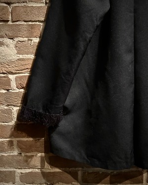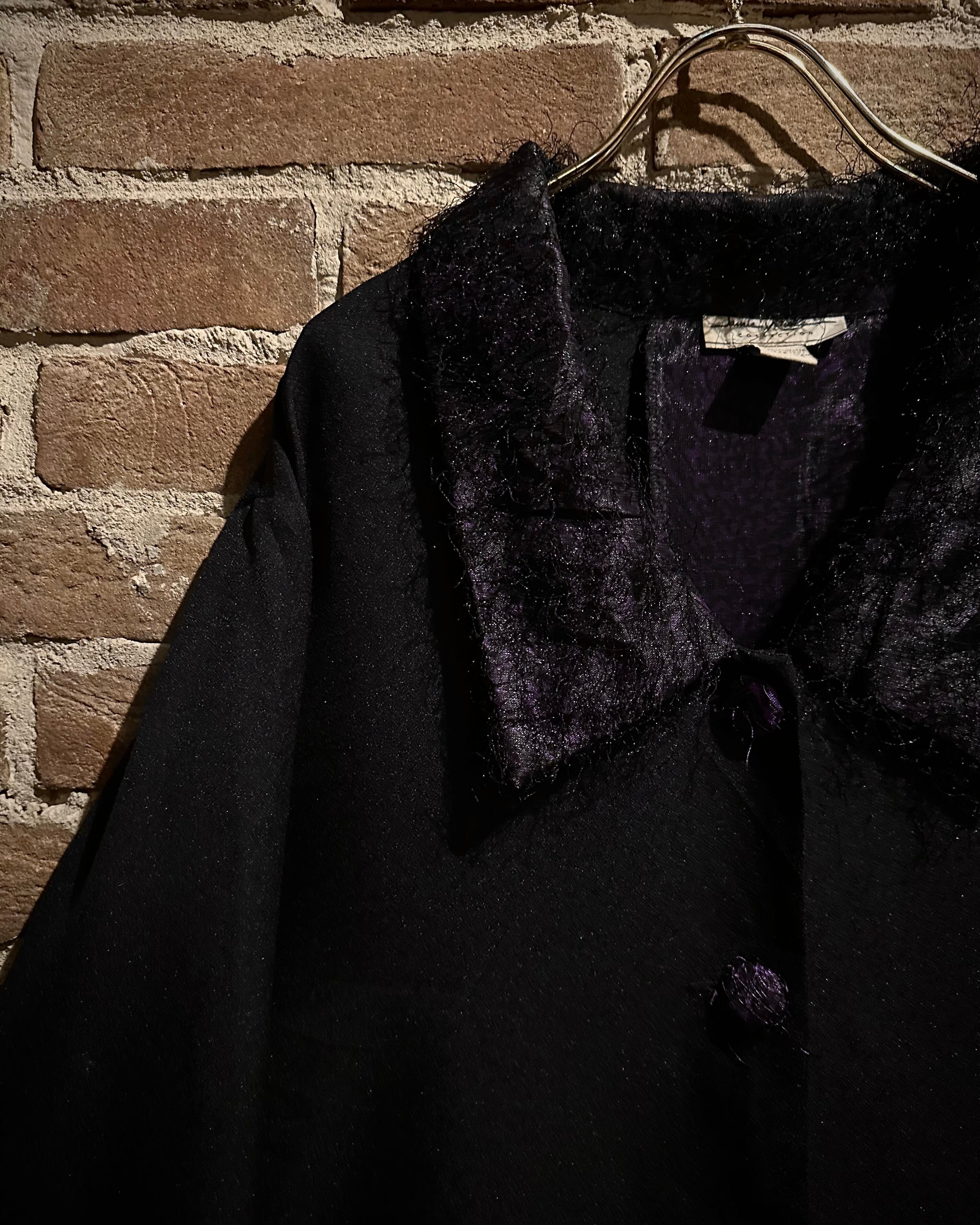 ブラックのボディをベースに、襟と袖口にはパープルテキスタイルを切り替え、ファーのような素材を載せたシャツジャケット。