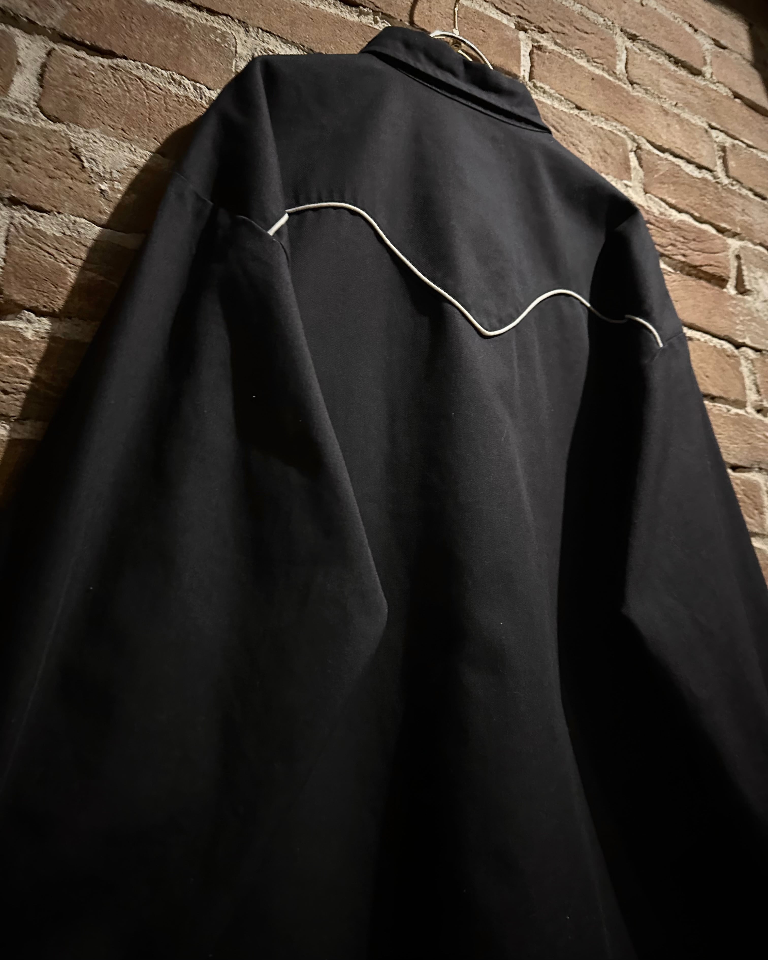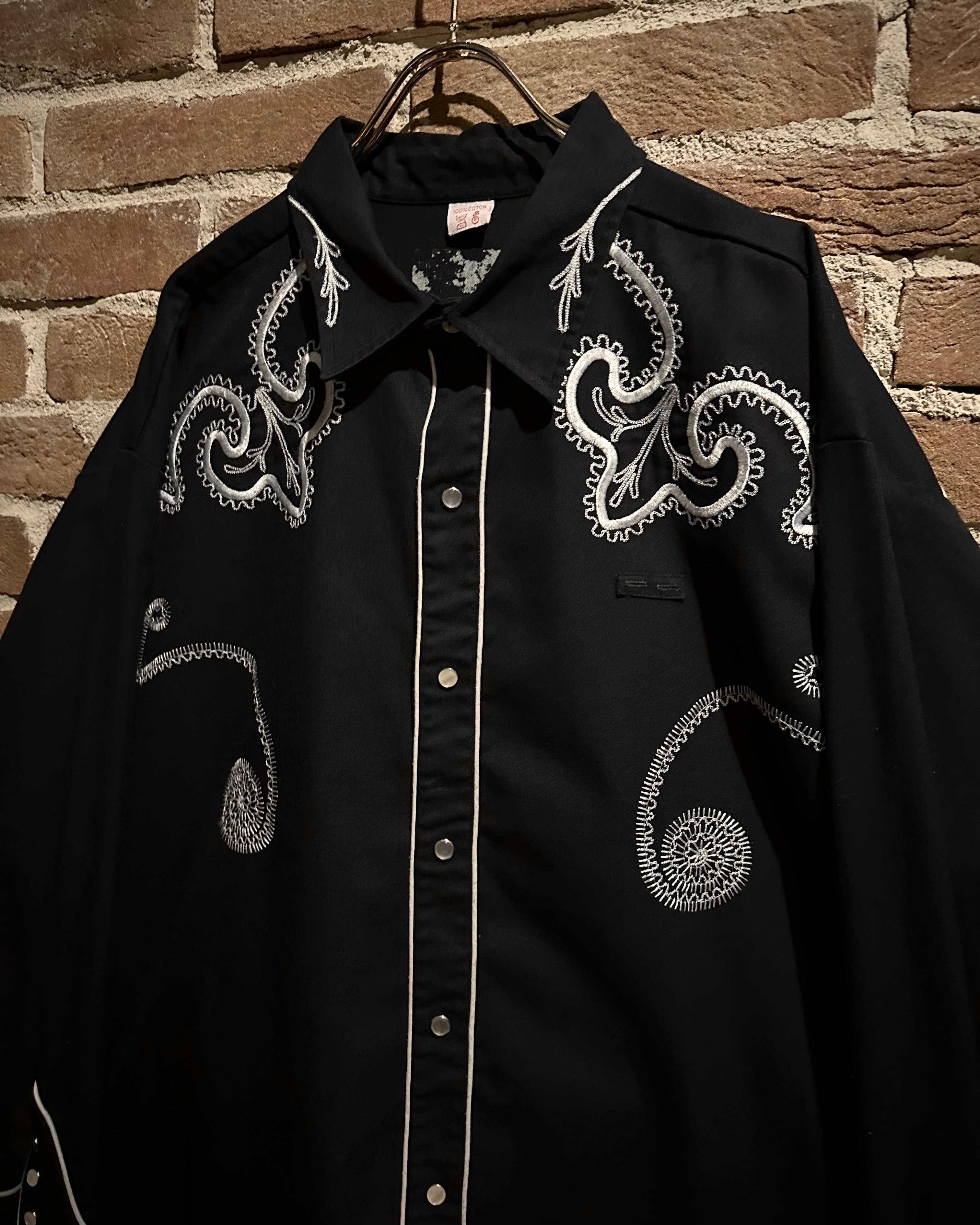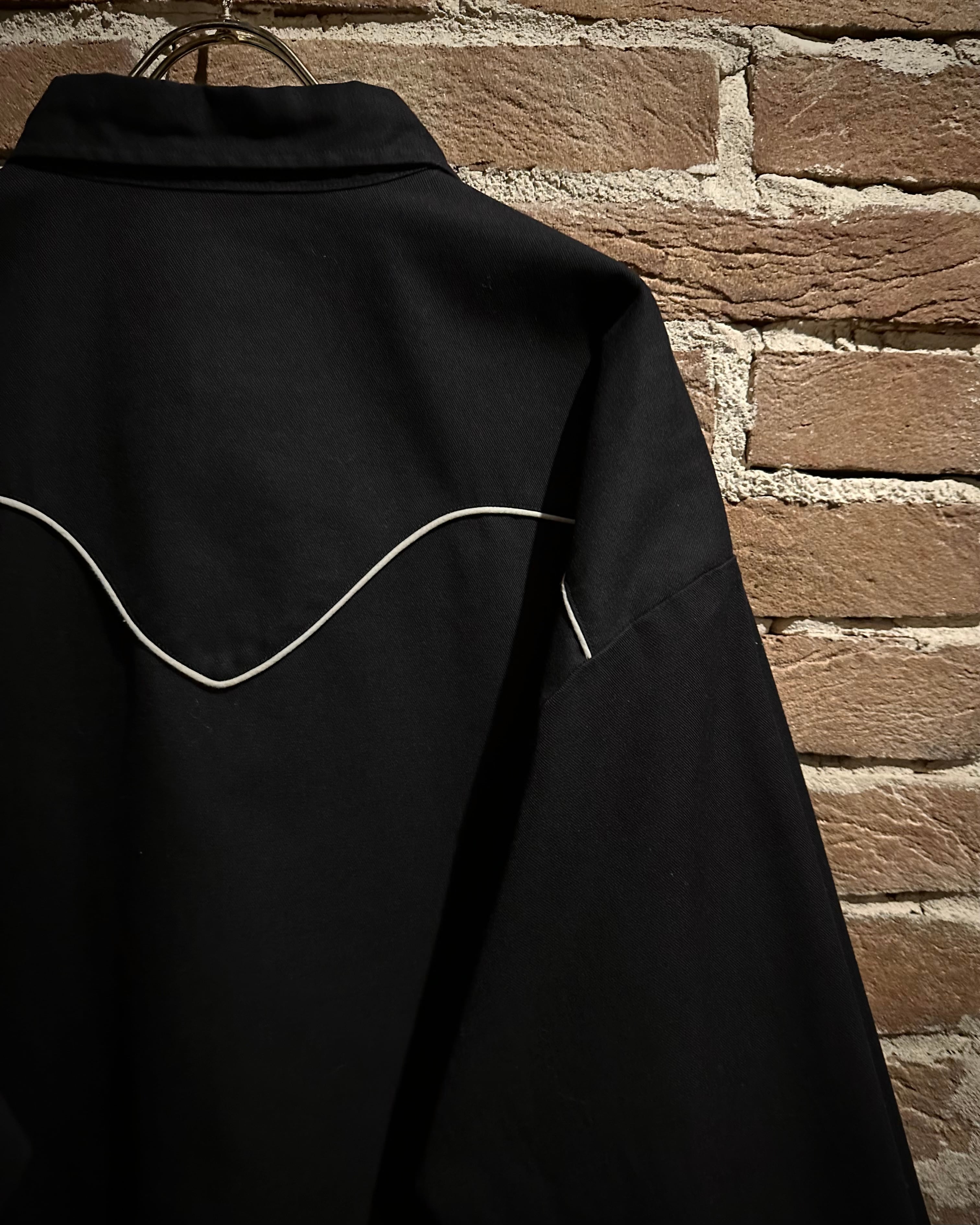 ブラックの上質なコットンツイルのボディに、白糸で描かれた華やかな刺繍を刻んだ1着。フロントからヨーク部分にかけて施された流麗な刺繍は、クラシックなウエスタンの雰囲気を纏いながらも、モード感を漂わせる仕上がりに。
