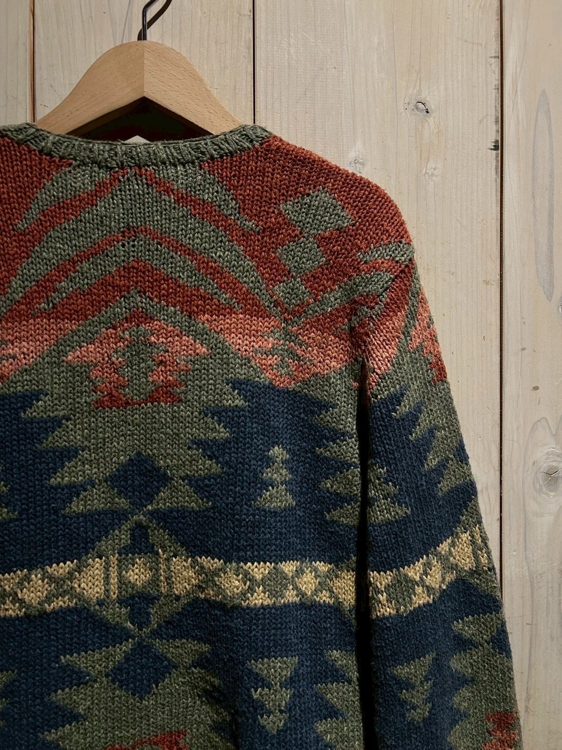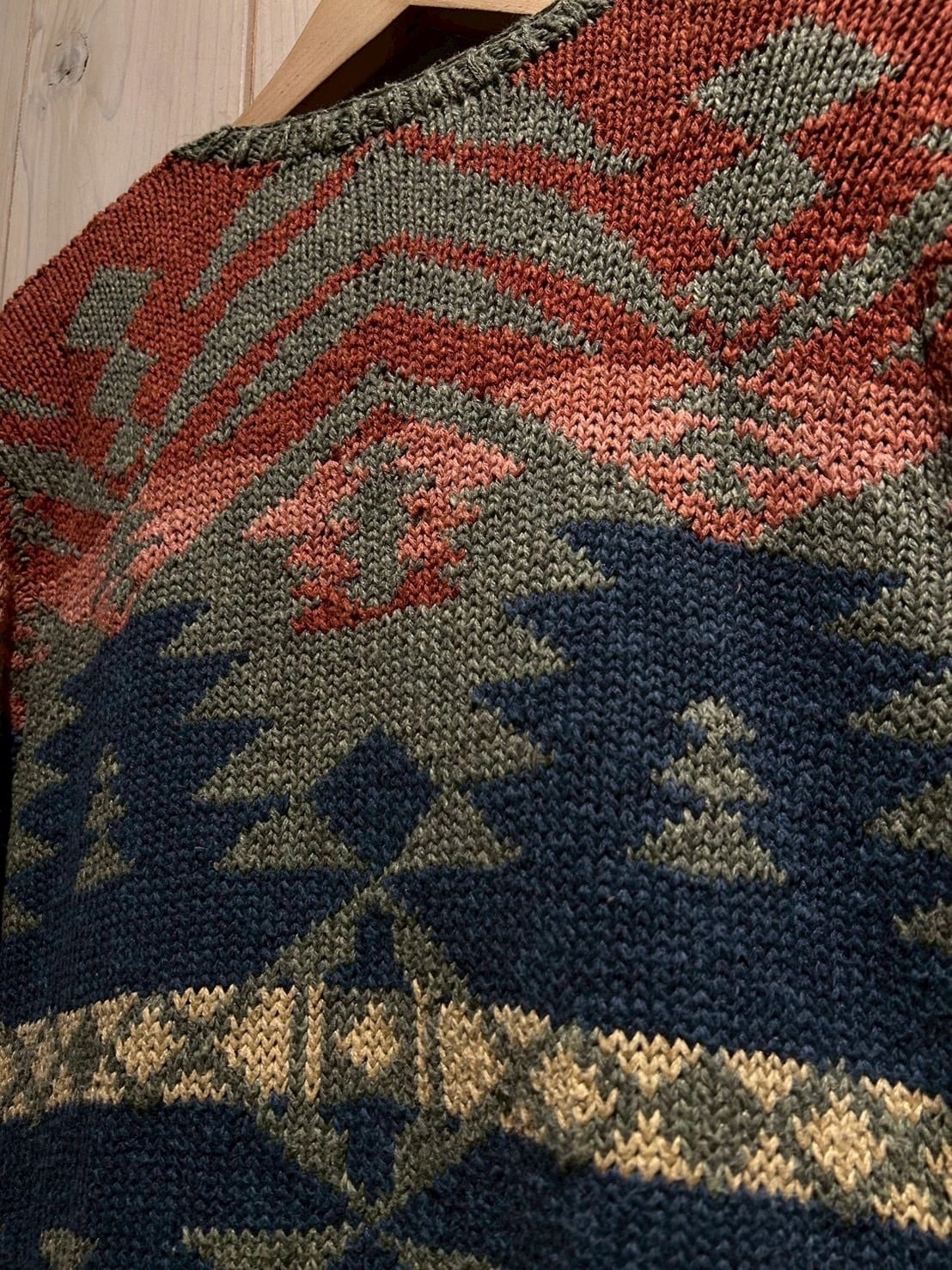 ネイティブ調のデザインを落とし込み、立体感あるニッティングと巧みな配色にこのブランドならではのハイセンスなデザイン力を感じられます。