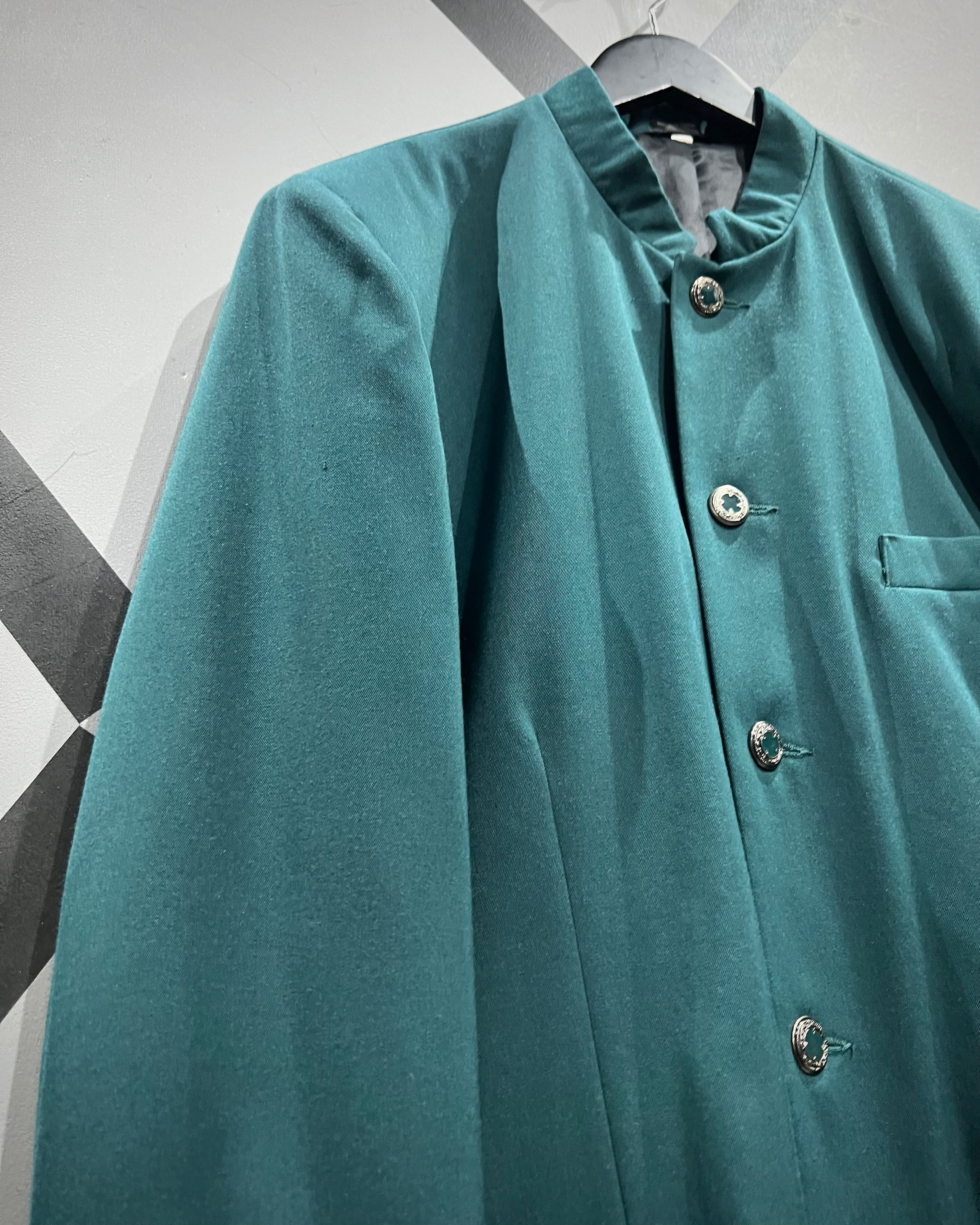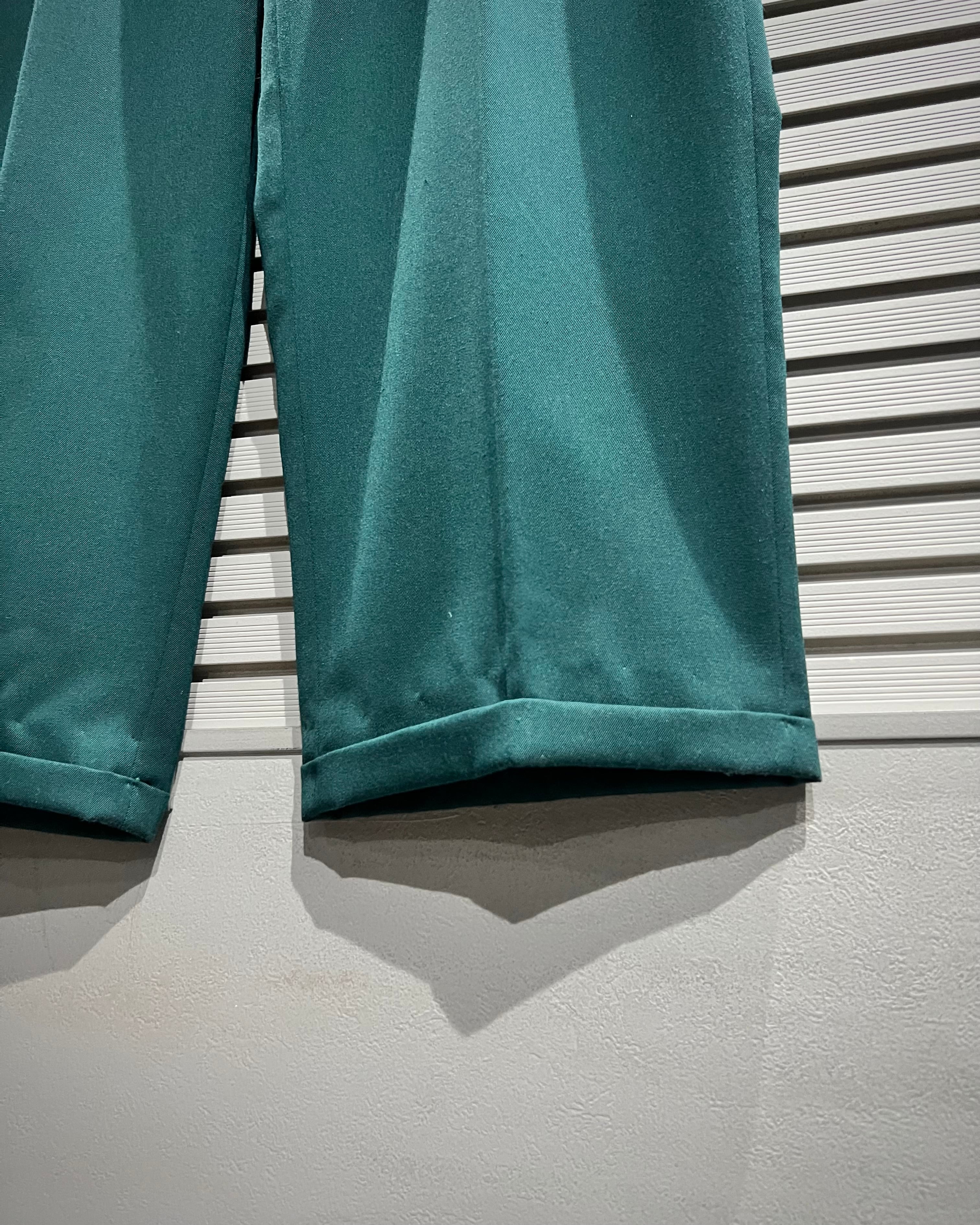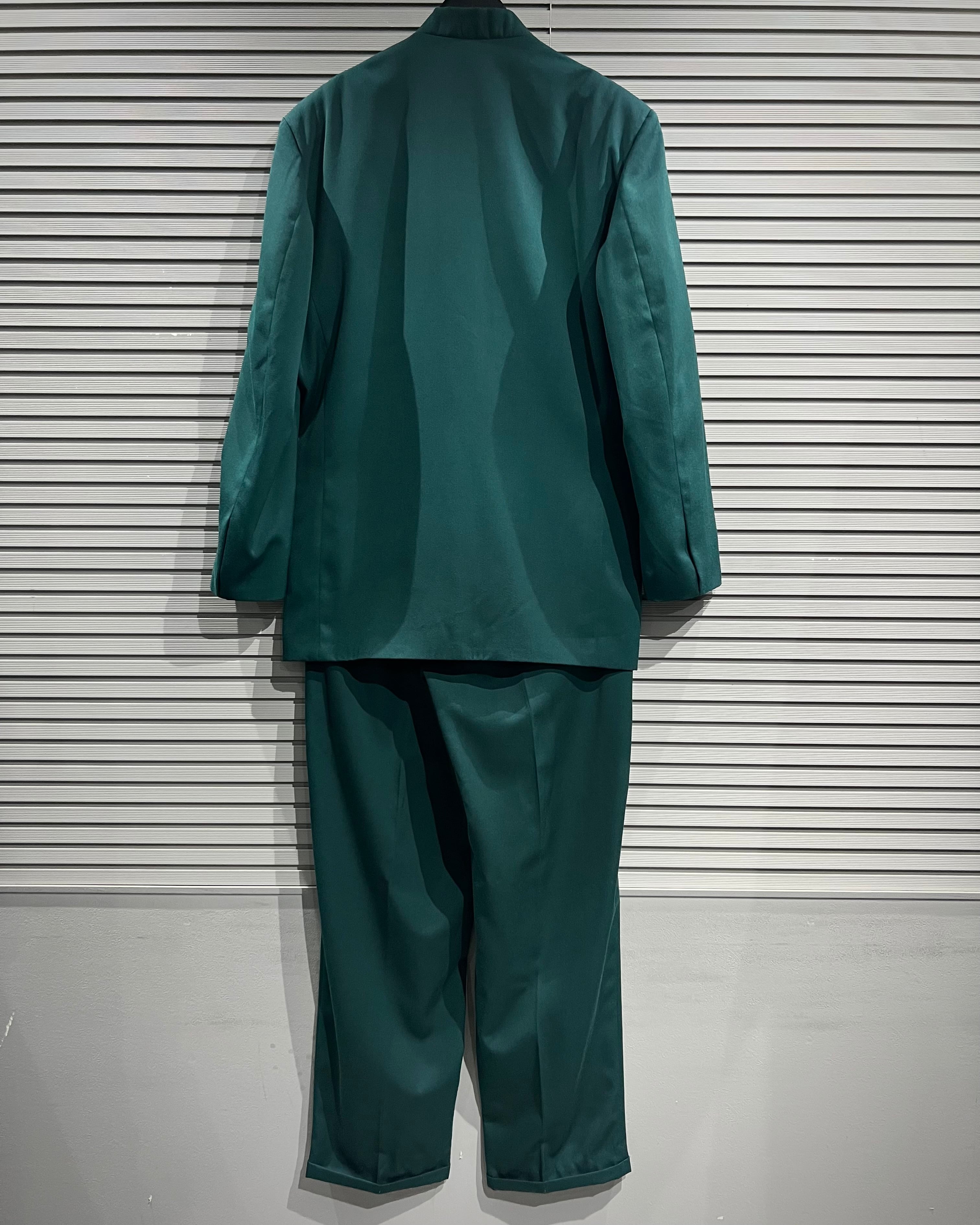 深みのあるグリーンのカラーリングが映えるセットアップ。古着市場で稀少性を増すカラーモノの中でも、ここまで鮮やかで品のあるトーンはなかなか出会えません。