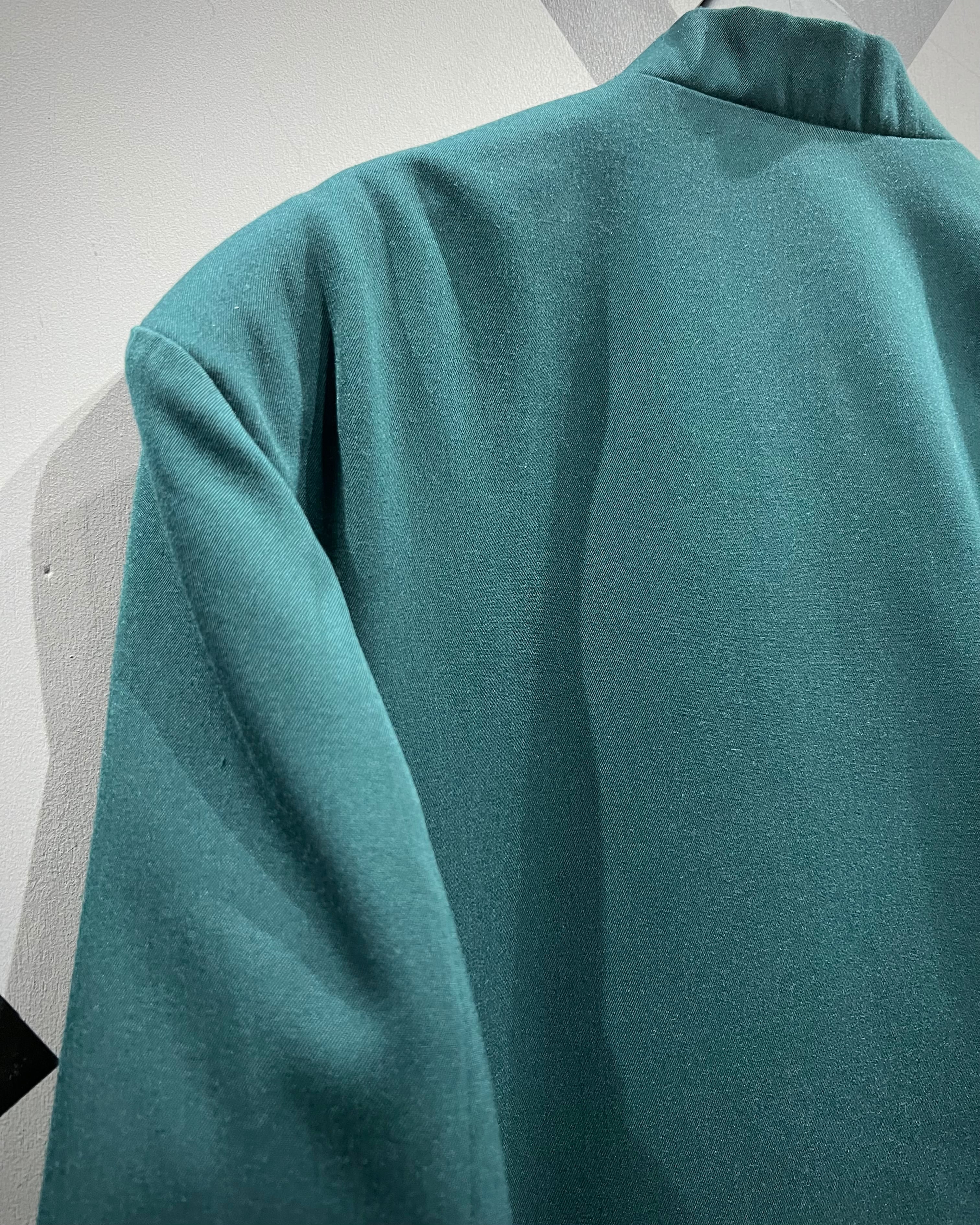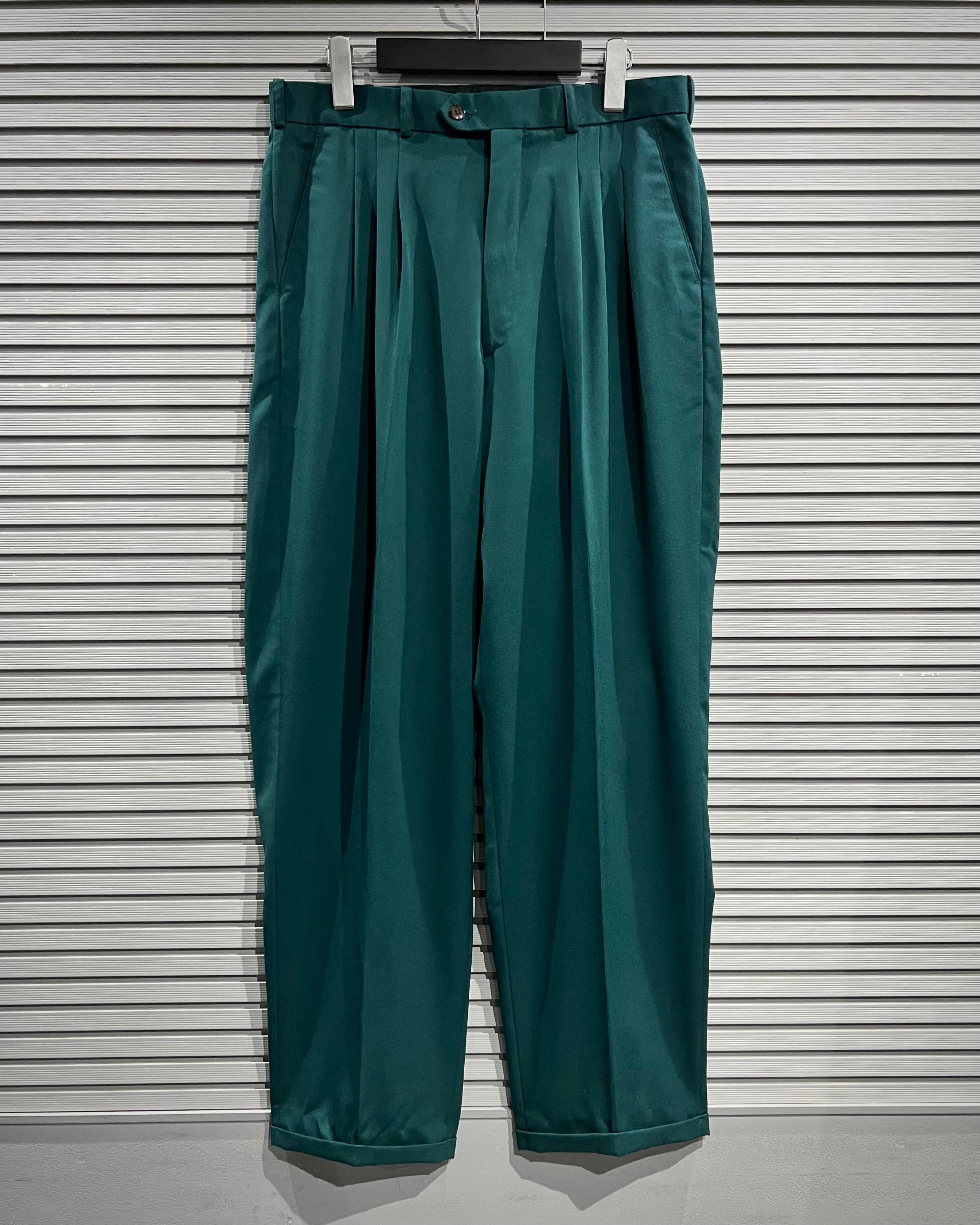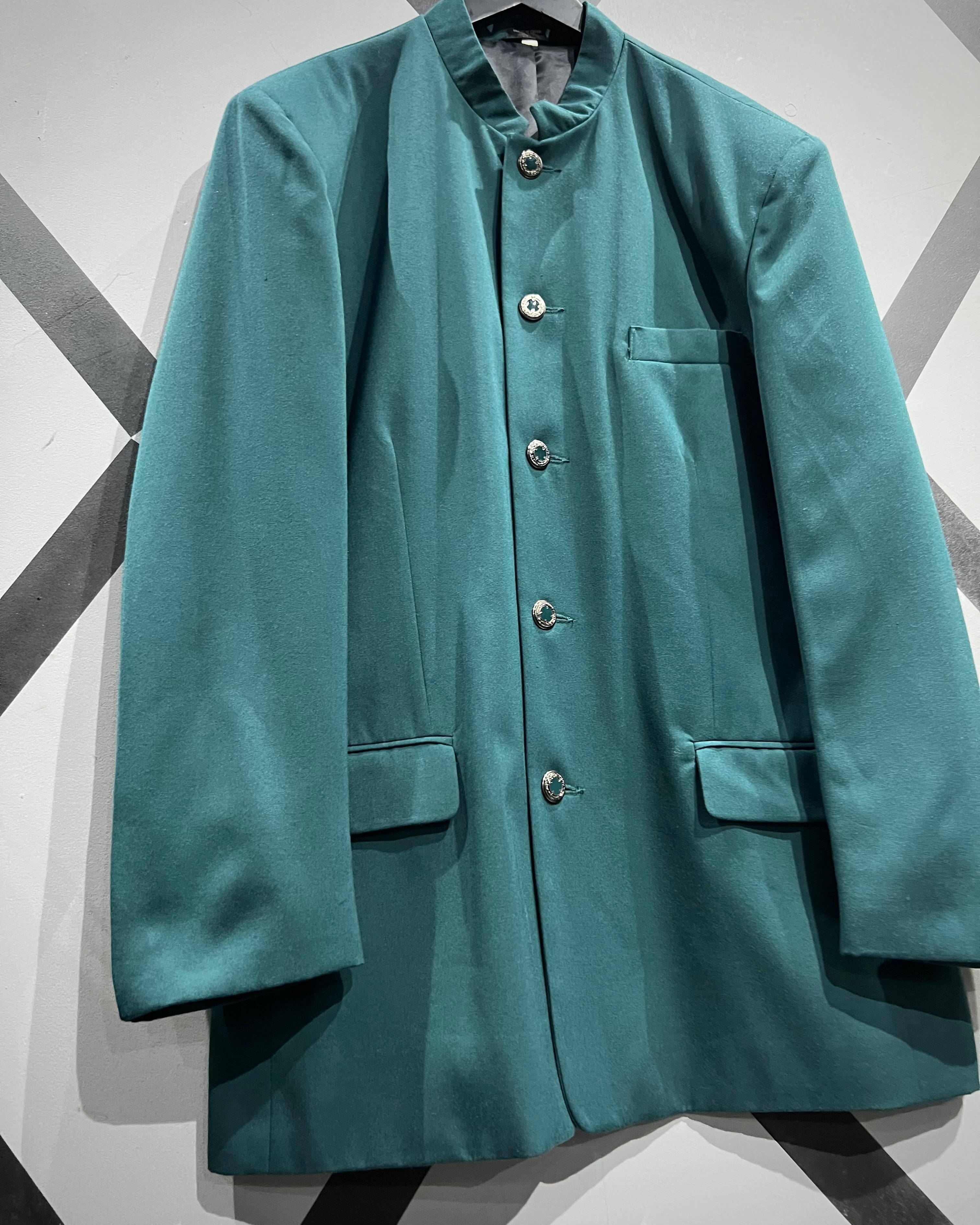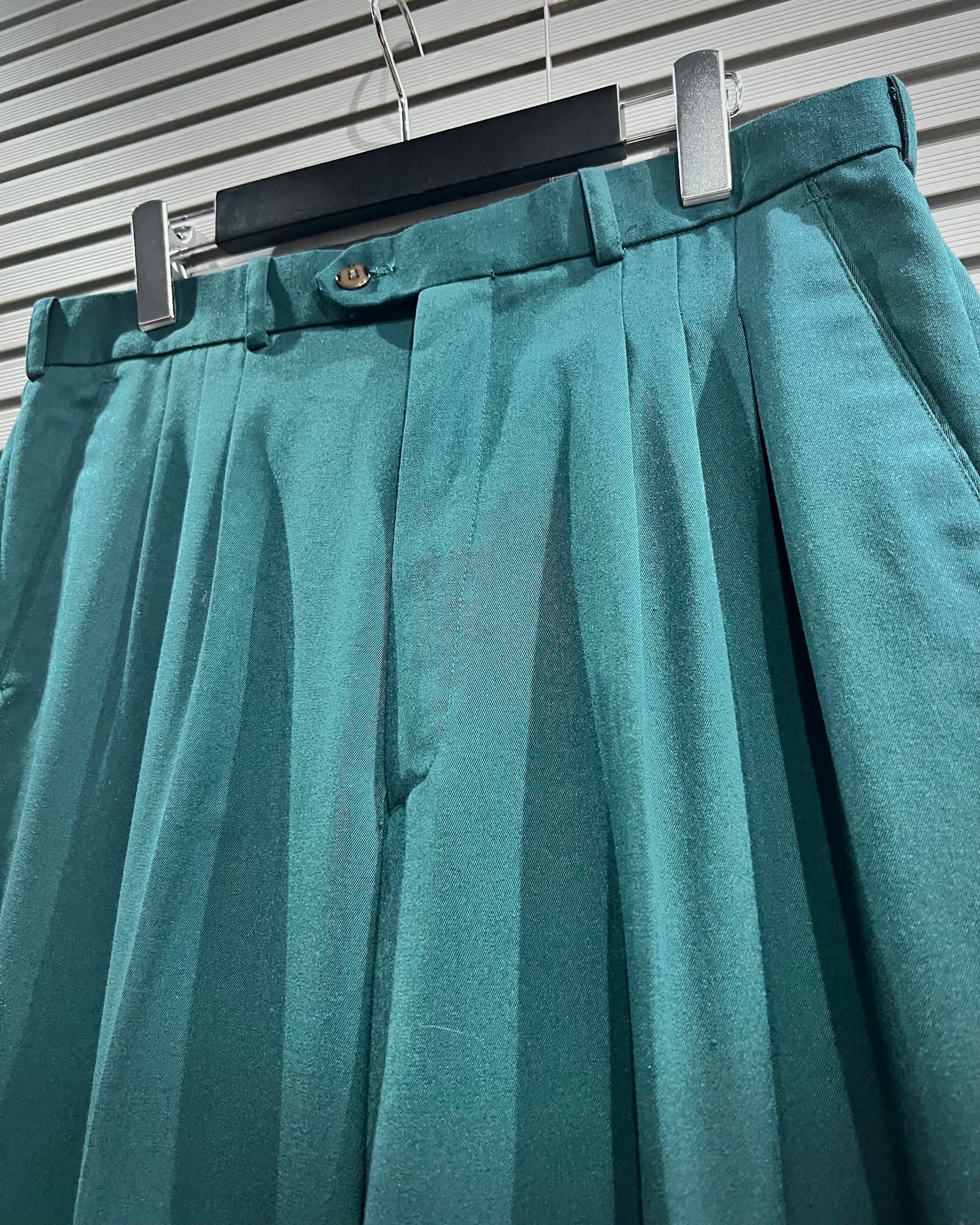 深みのあるグリーンのカラーリングが映えるセットアップ。古着市場で稀少性を増すカラーモノの中でも、ここまで鮮やかで品のあるトーンはなかなか出会えません。