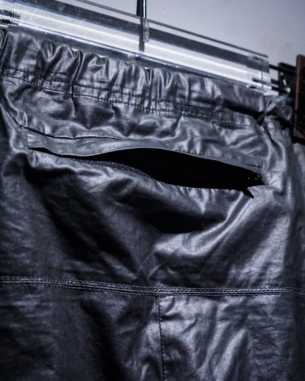 素材には軽量かつマットな光沢を持つコットン×ポリウレタン混紡を採用。レザーライクな重厚感がありながらも柔らかく、軽快な穿き心地が魅力的です。