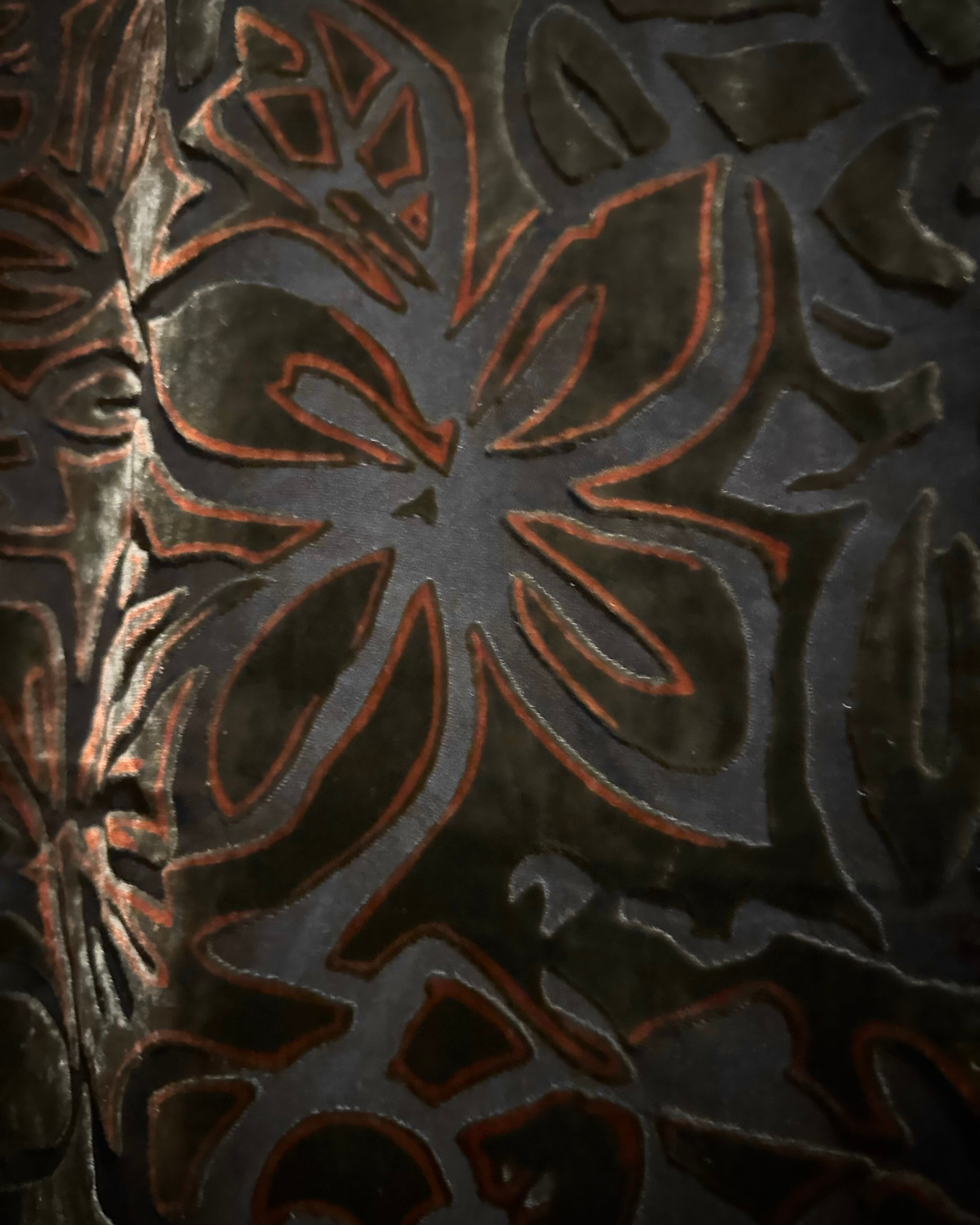 繊細な透け感のあるシアー素材をベースに、フロッキーで表現された花柄が奥行きのある表情を生み出し、光の加減で浮かび上がる美しい陰影に心を奪われます。
