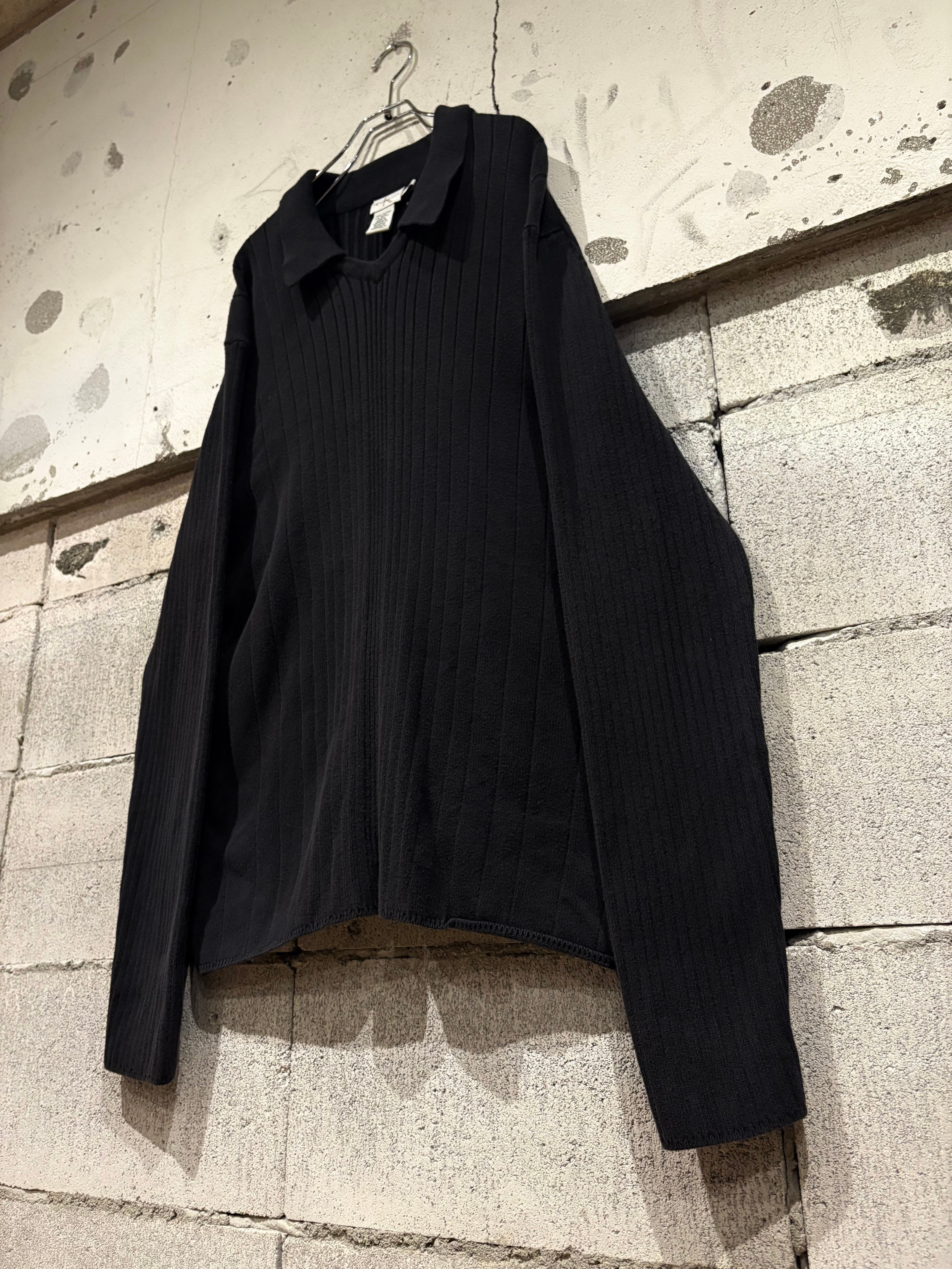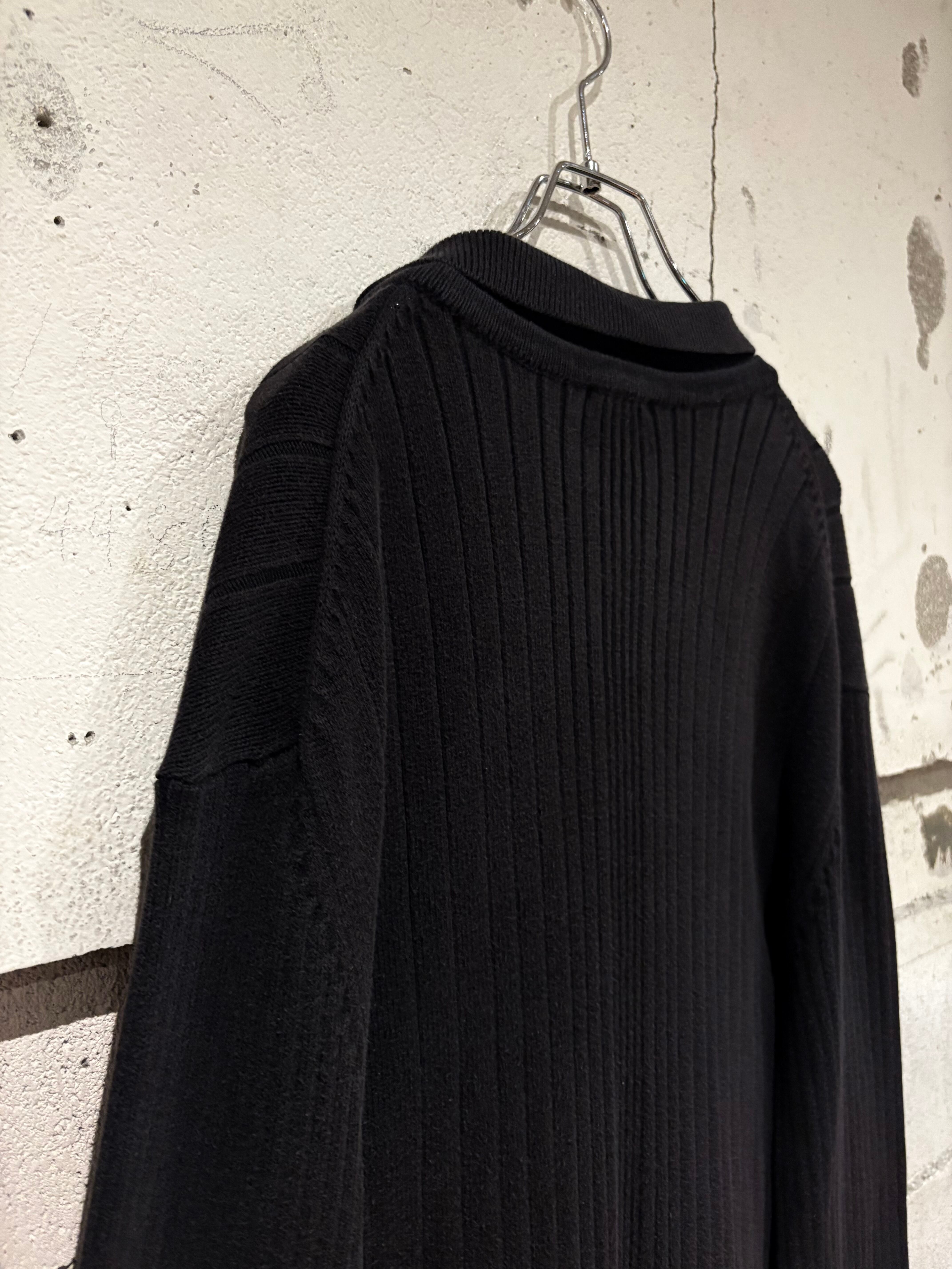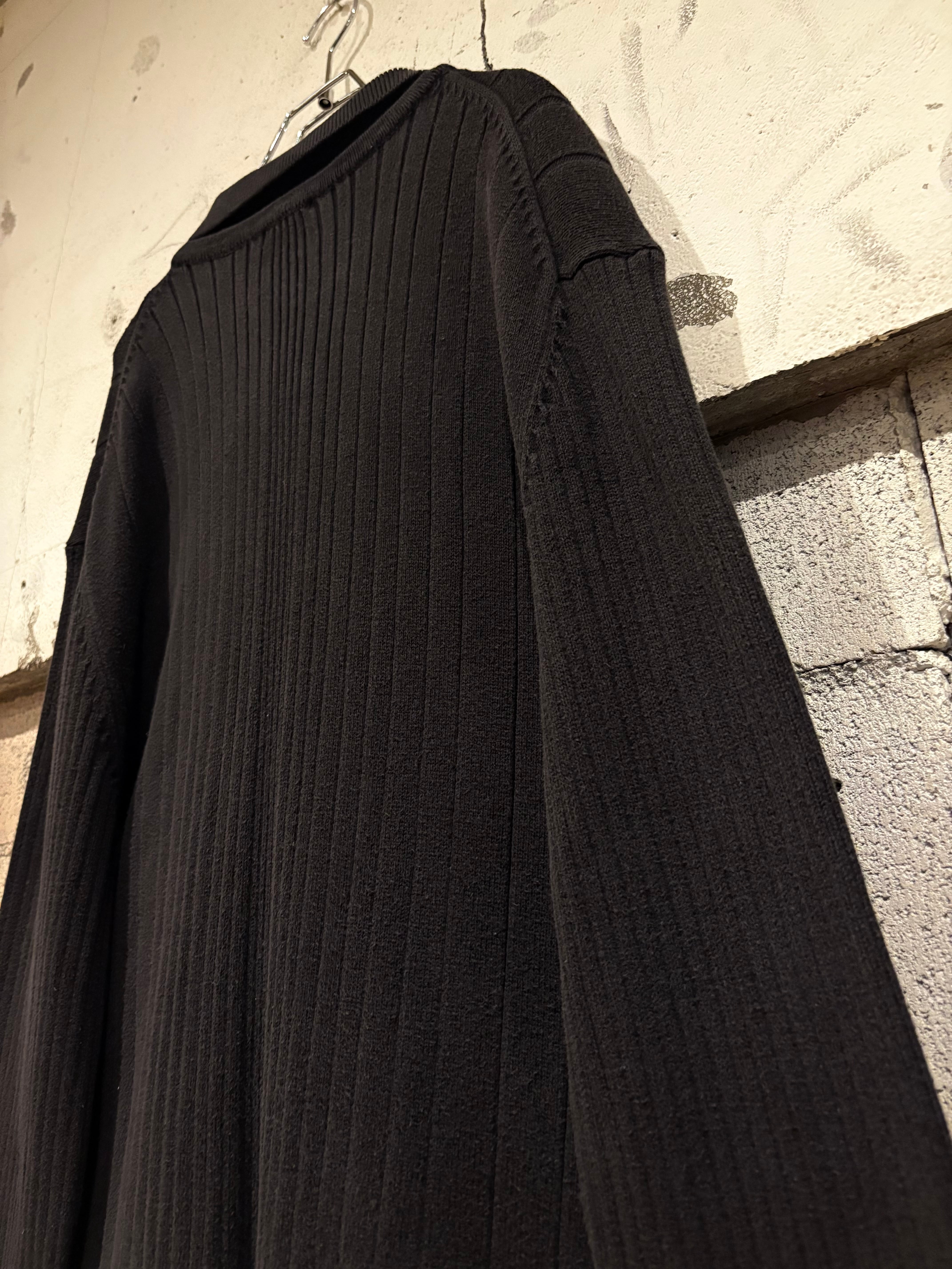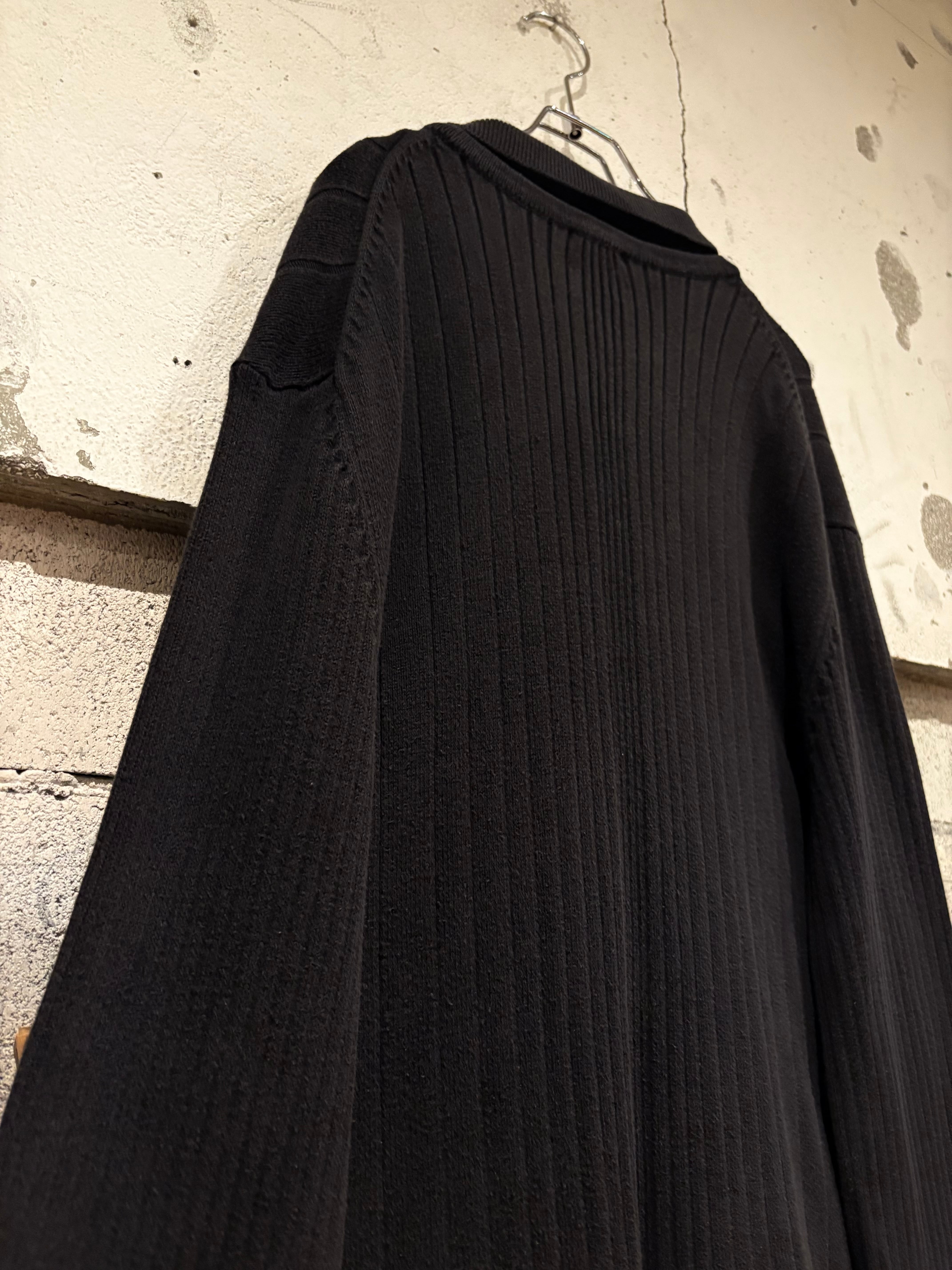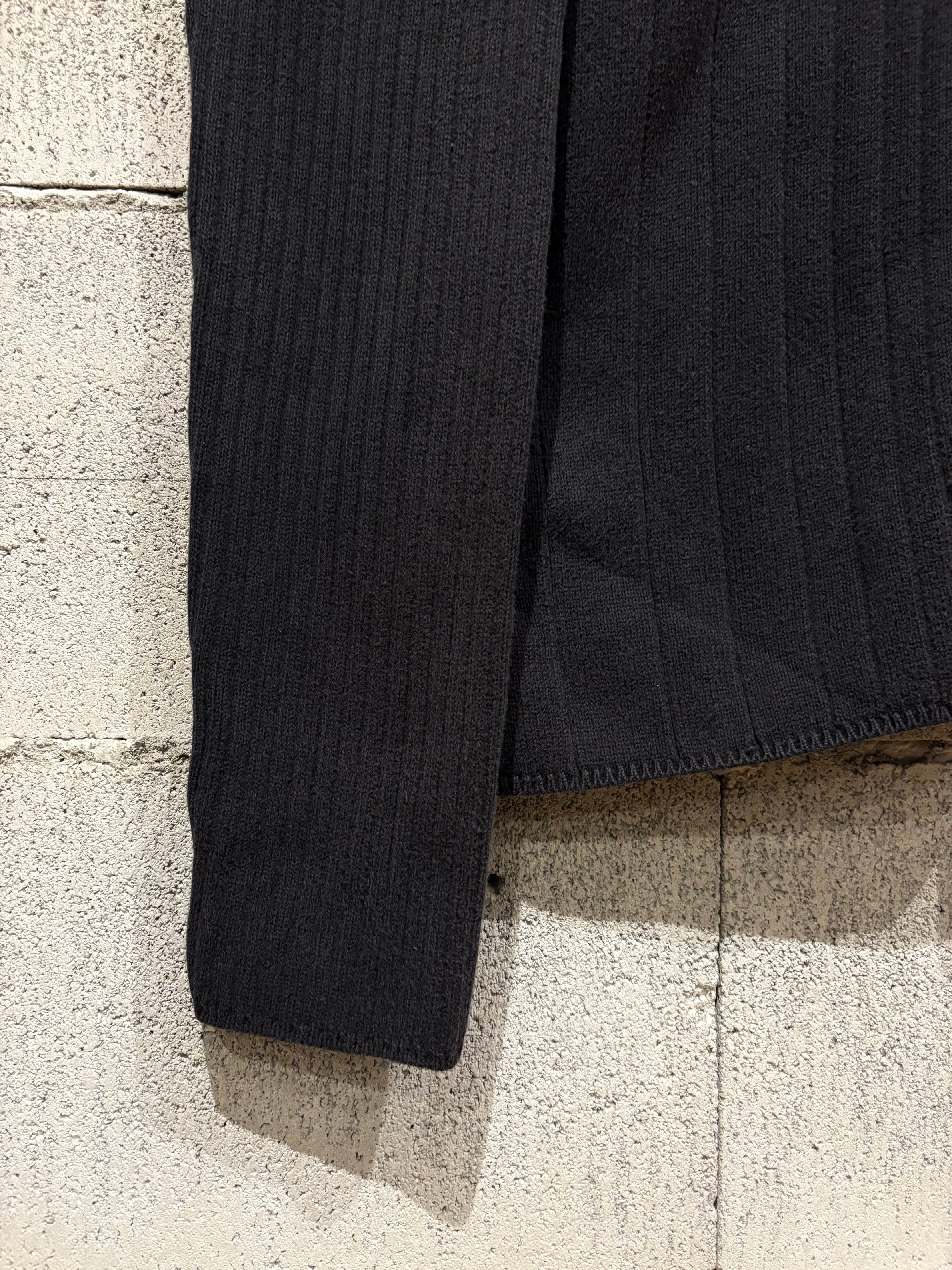 全体をブラックで統一しつつ、リブ編みが立体感のある陰影を生み出し、無地でありながらも奥行きのある表情を演出。