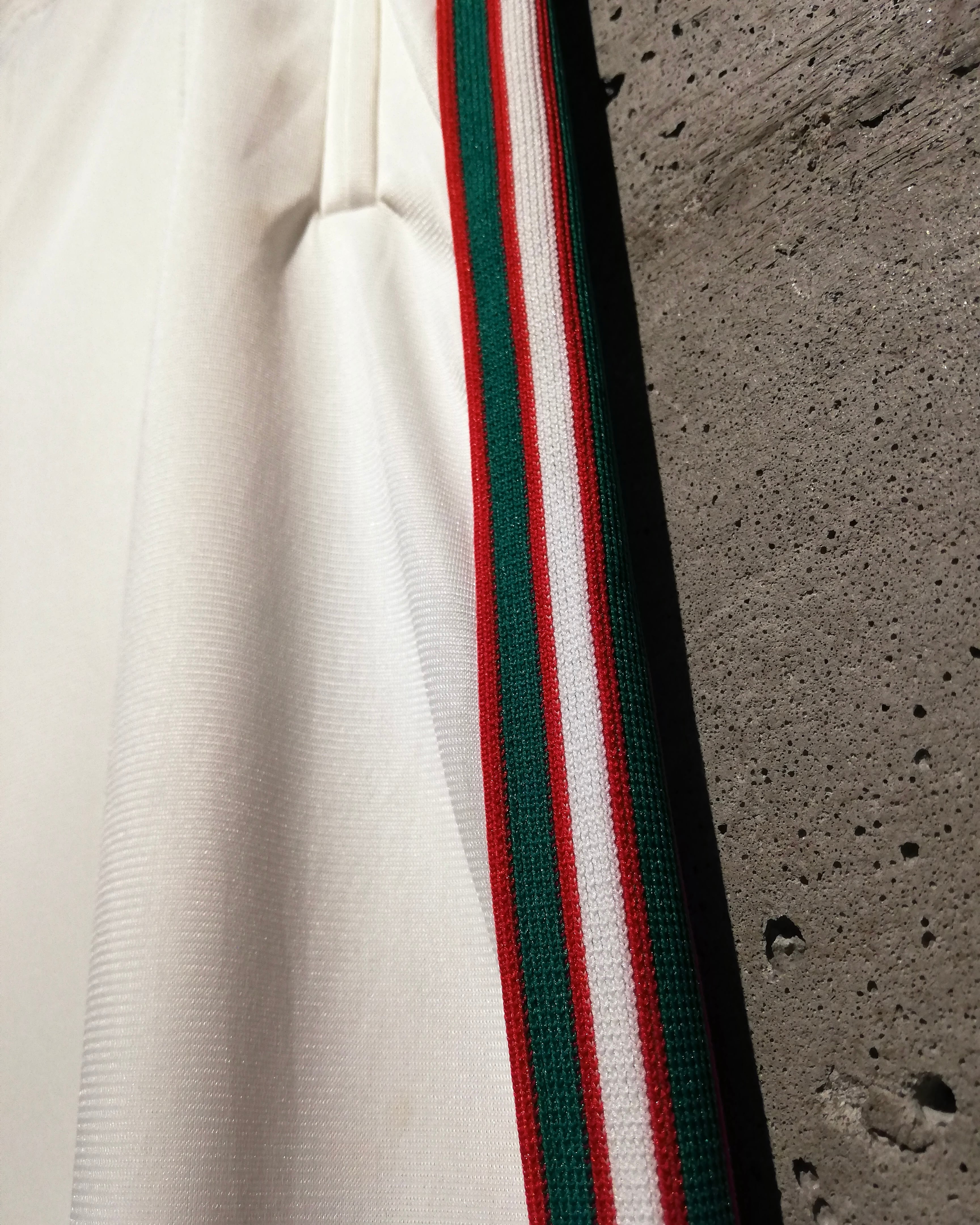 白を基調としたクリーンなボディに、GUCCIのシェリーラインを彷彿とさせる赤×緑のサイドラインを配置した1本。