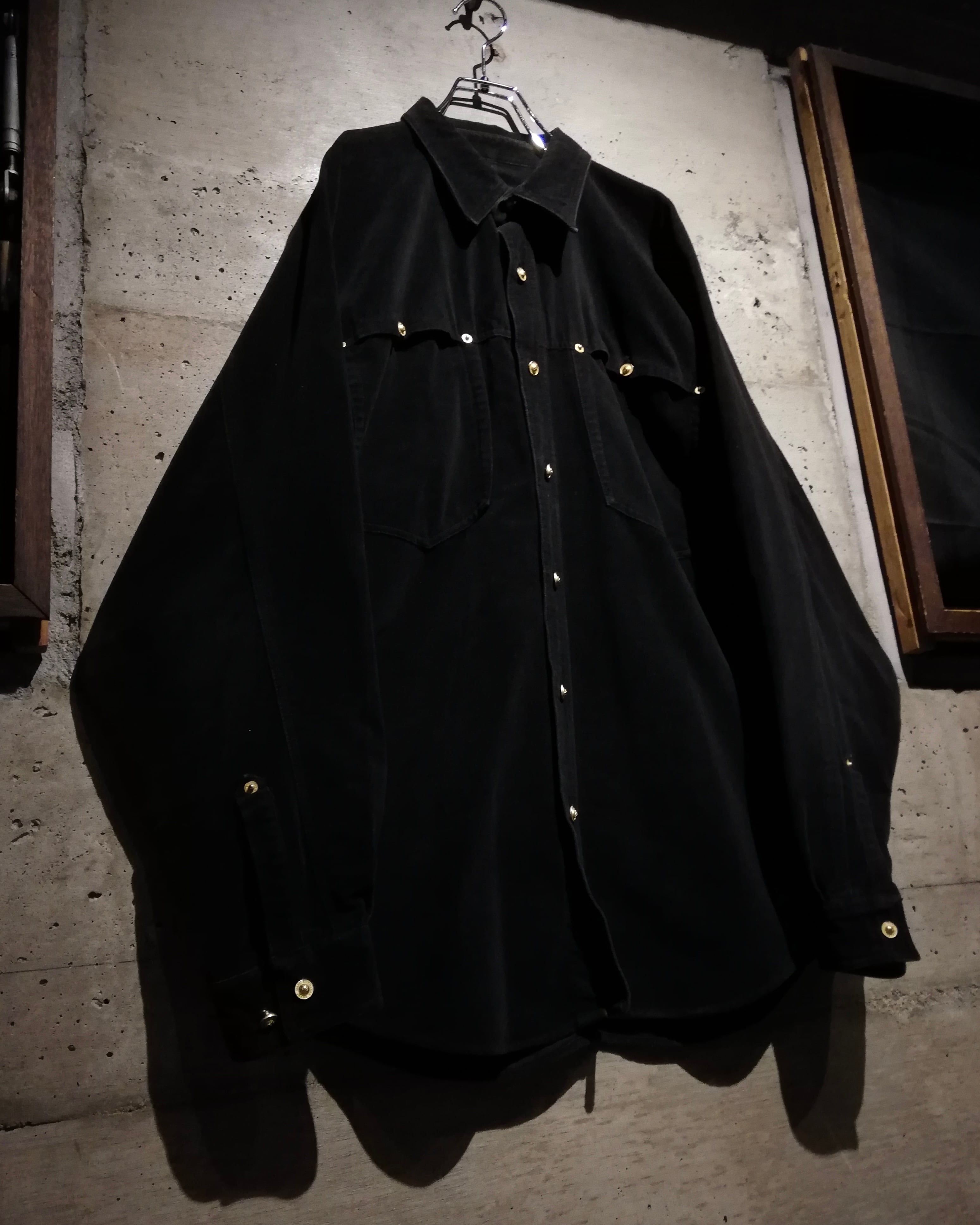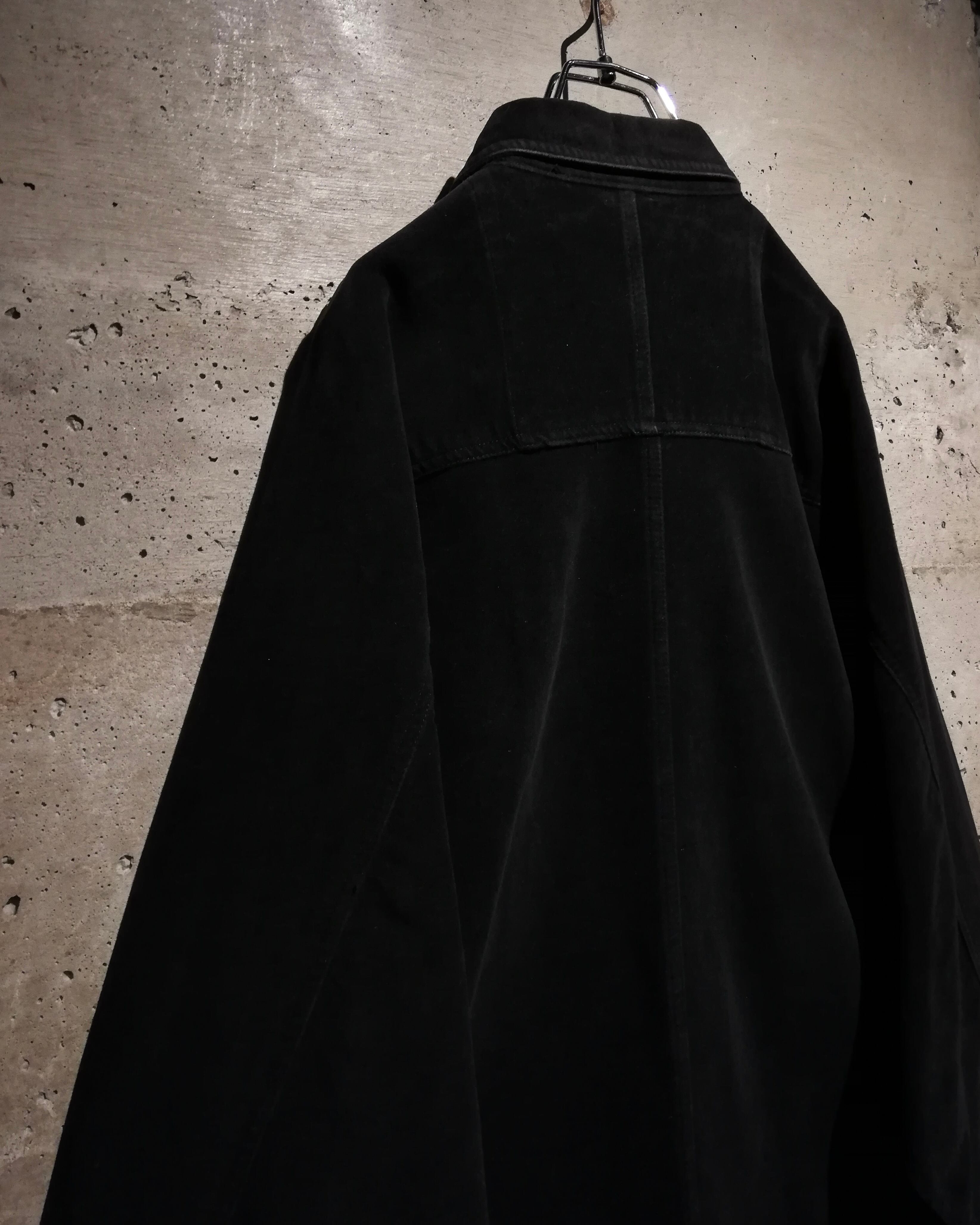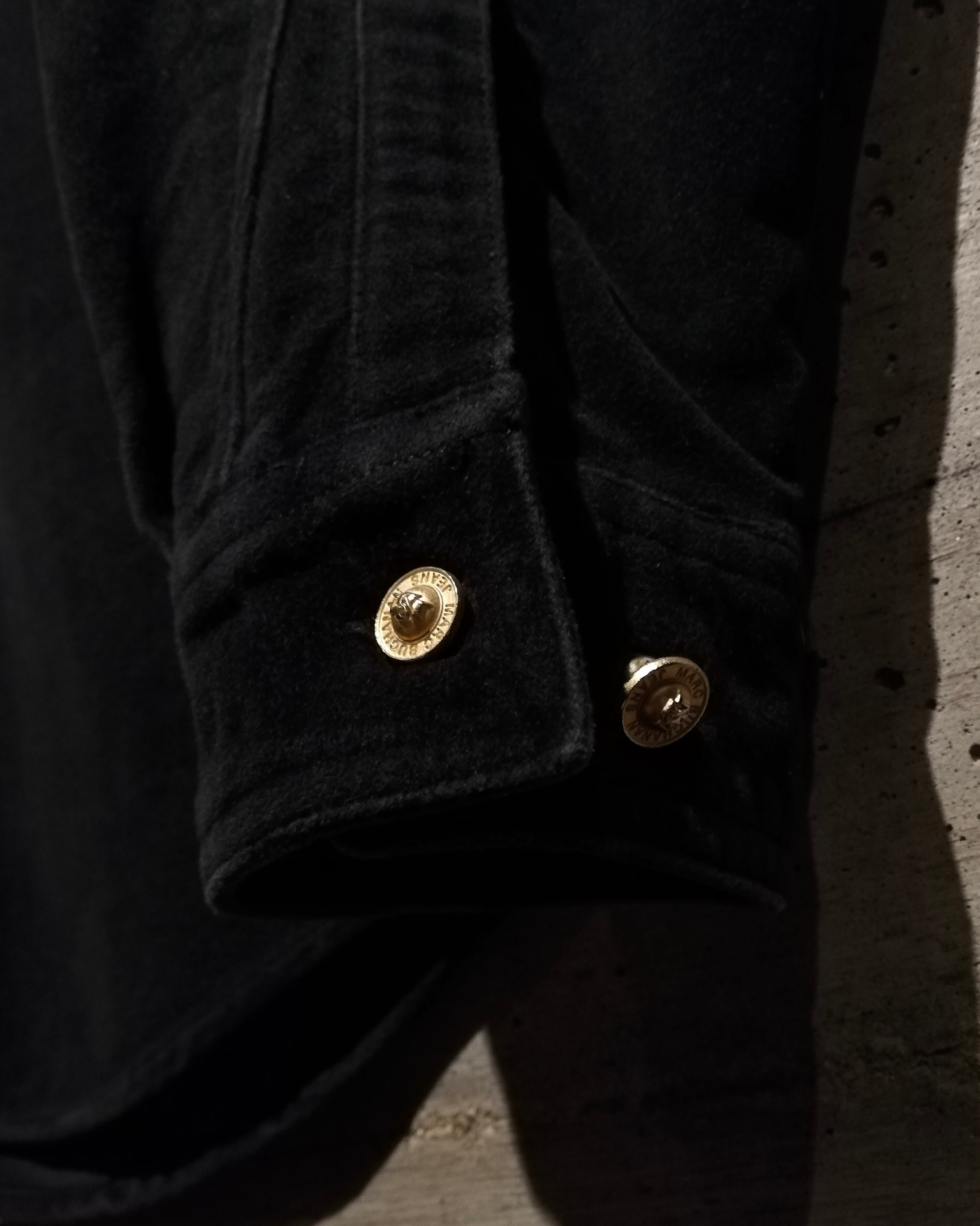 マットな質感の上品な光沢を帯びたブラックベロアを使用したシャツジャケット。