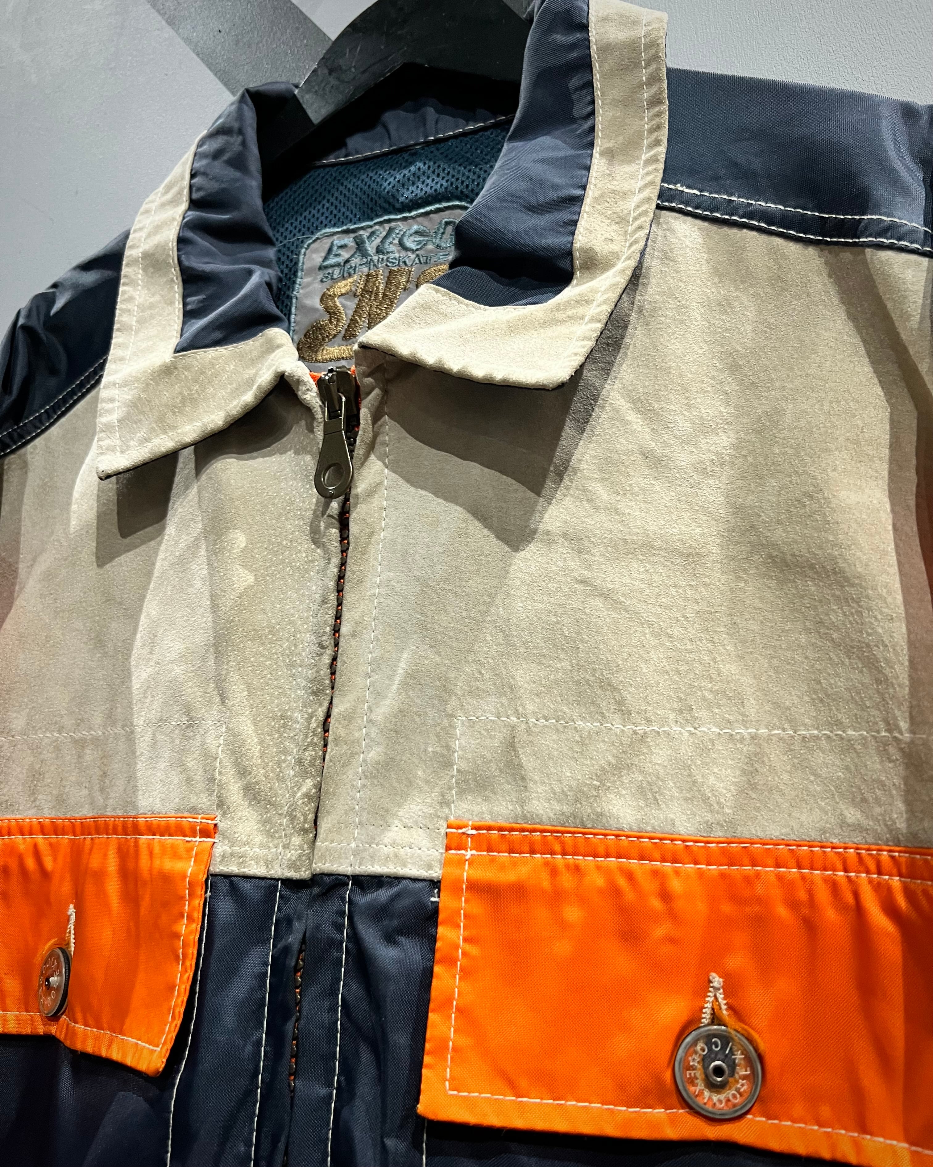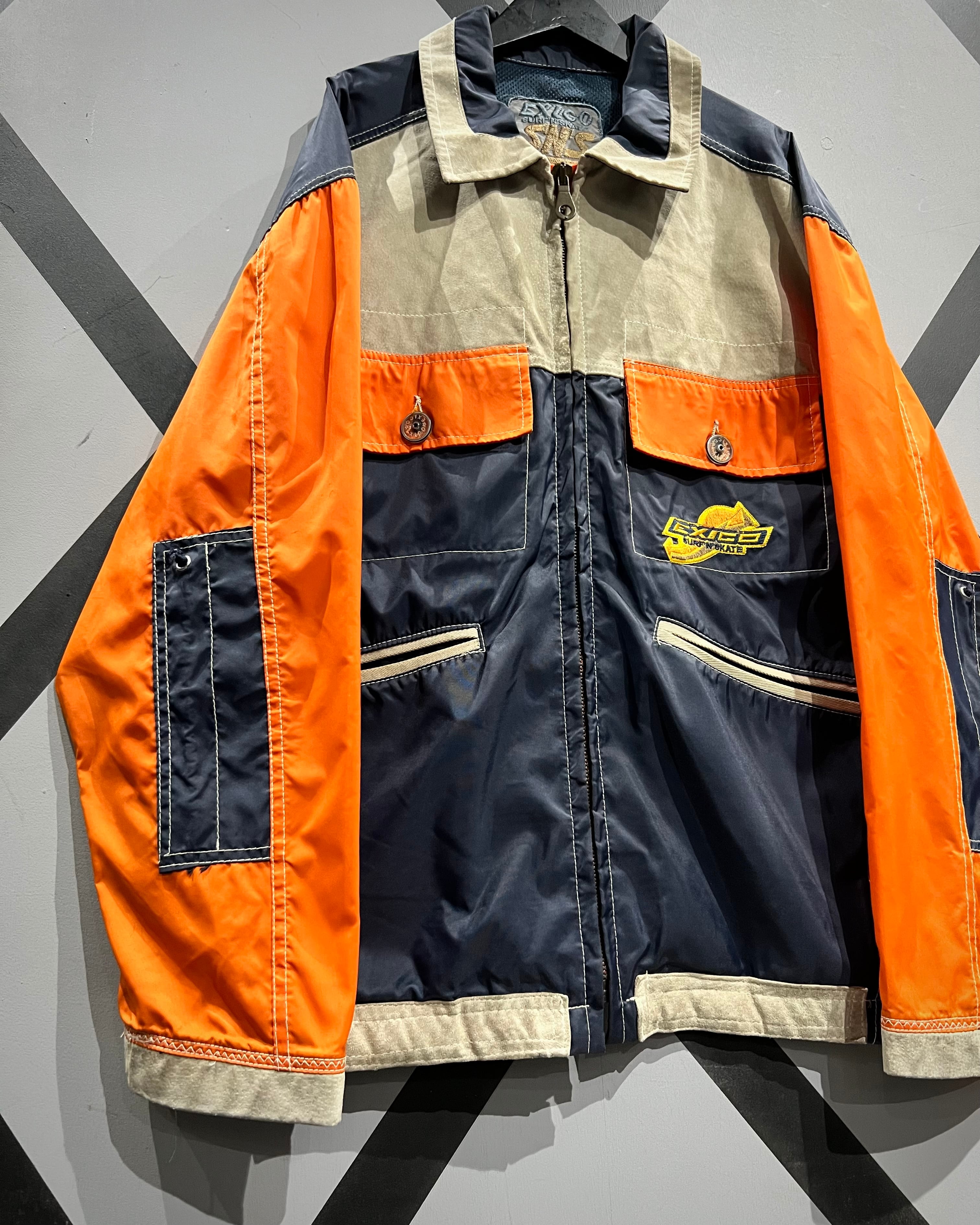 発色の良いオレンジ、落ち着いたベージュ、ネイビーといったマルチカラーで纏められたボディに、スエードレザー切り替えを載せたジャケット。