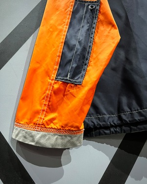 この手のアイテムには珍しい短丈気味のゴールデンサイズで、デザインを活かしたハイストリートなスタイルにはバッチリハマり、フレアやハイウェストのボトムスと合わせれば足長効果は抜群。テックやギア系のパンツと合わせたテクニカルなコーディネートも乙かと。