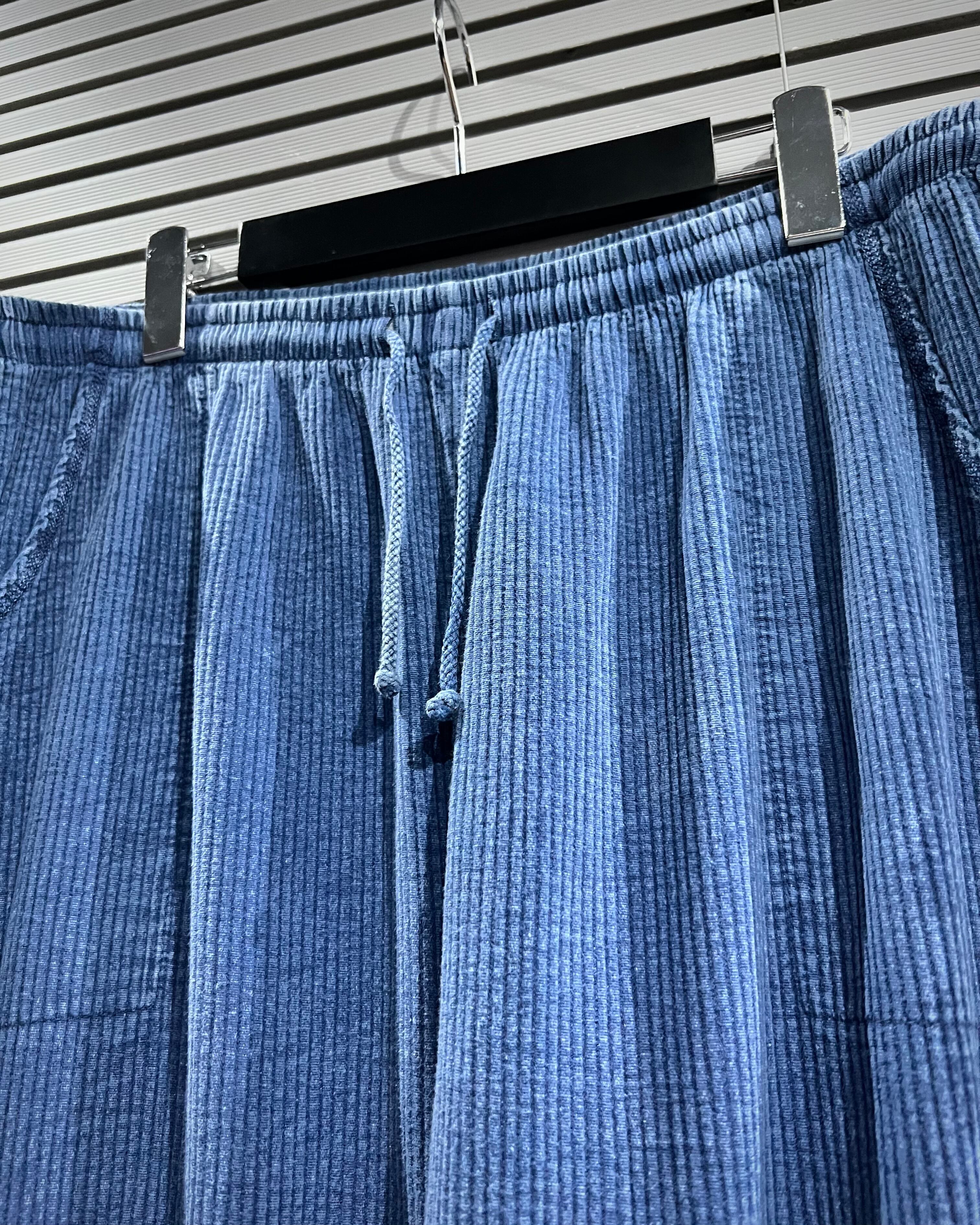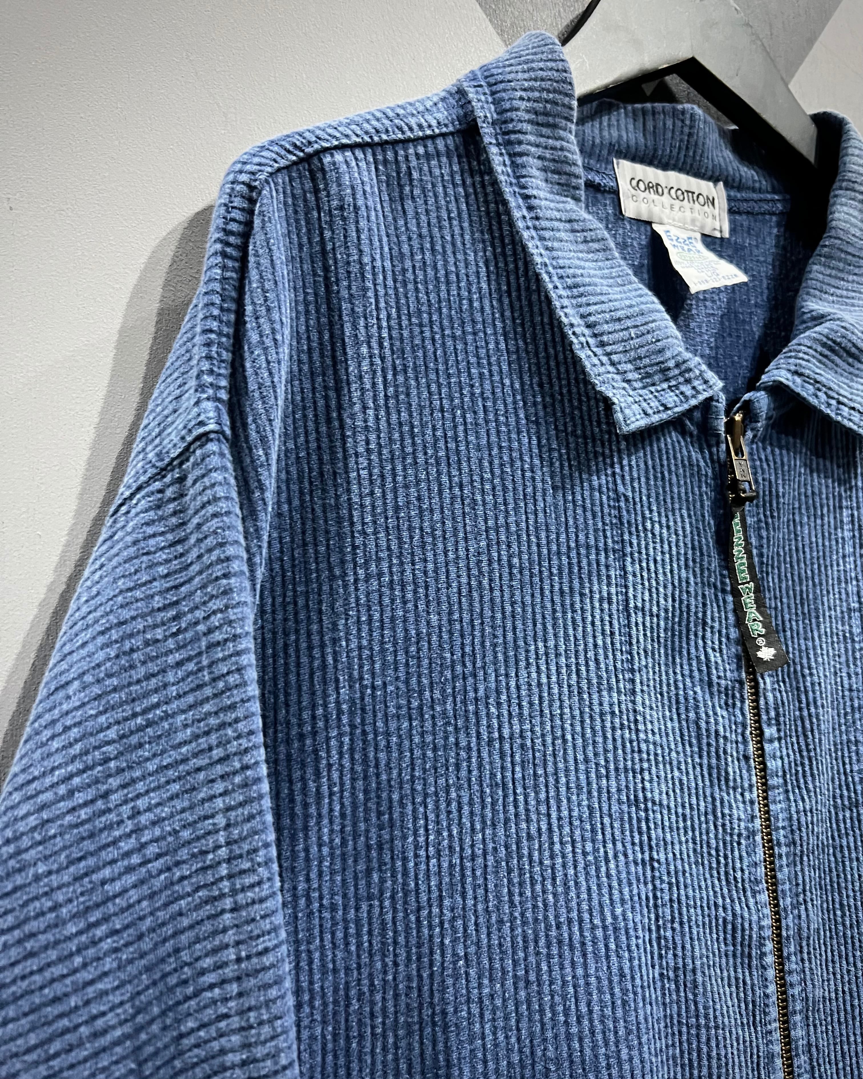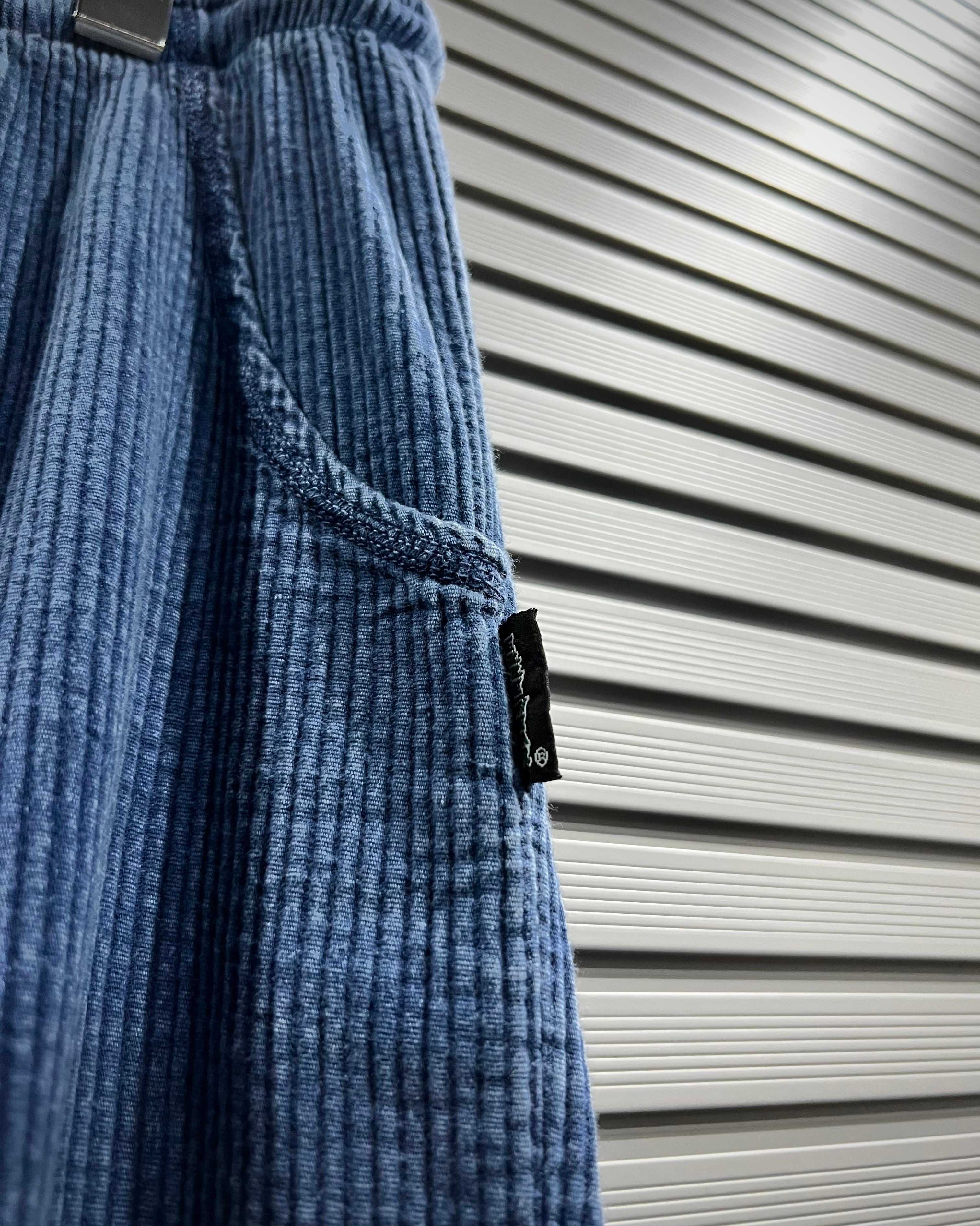 コーデュロイのような立体感のある素材を用いてジップアップジャケットのセットアップに仕上げた逸品。オールブルーの仕上がりですが、畝のある素材でのっぺりとせず、陰影が生まれます。
