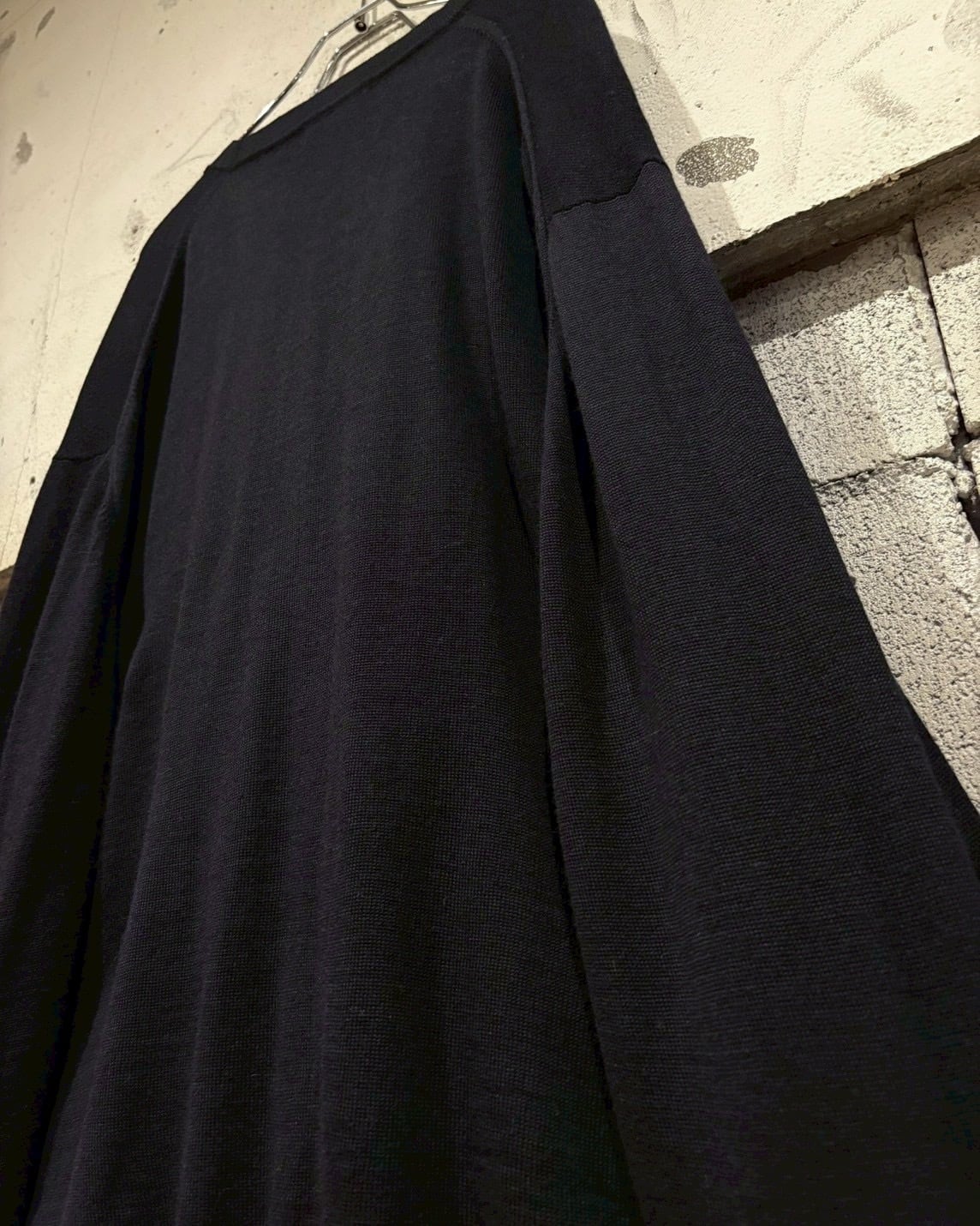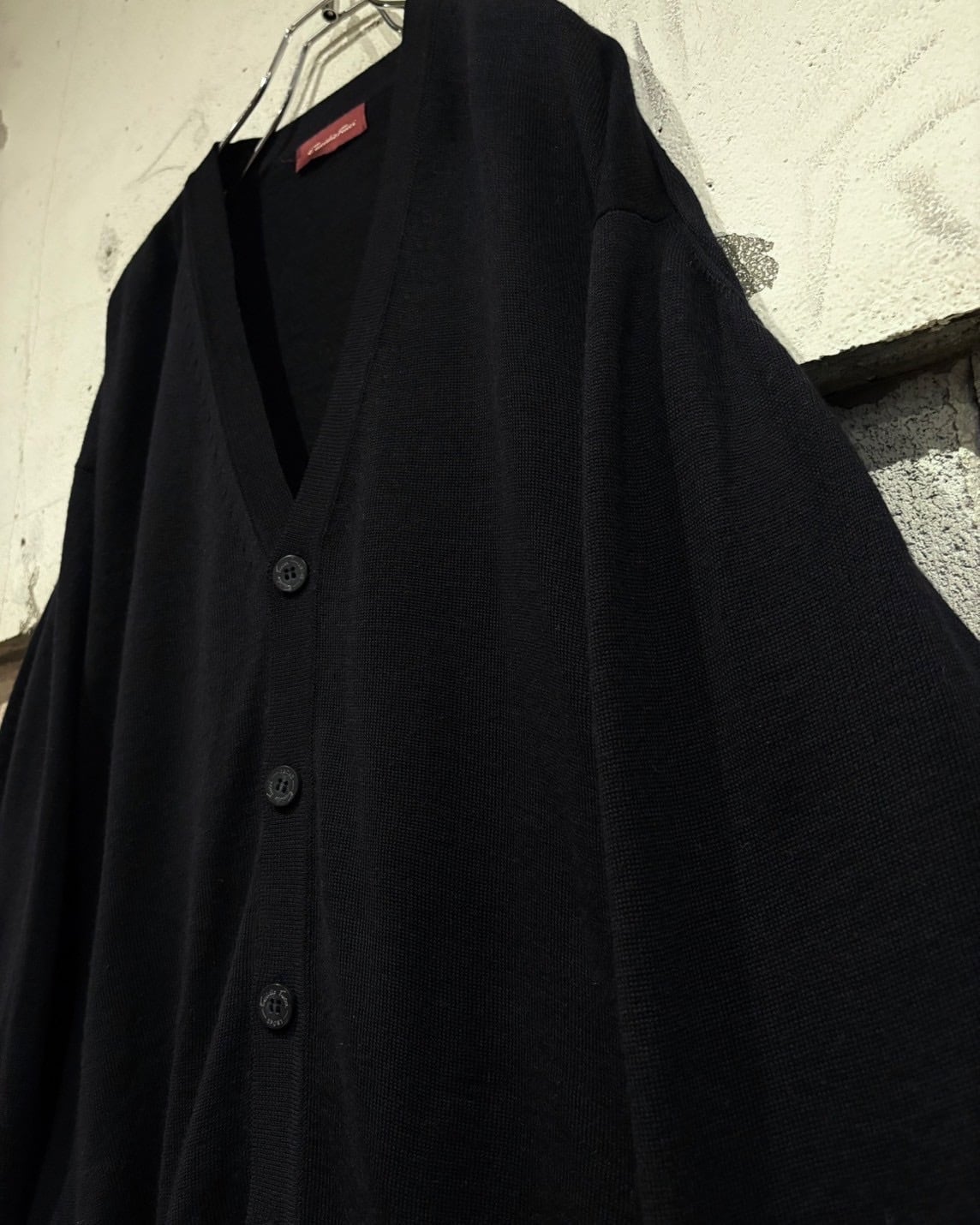 ルーズなサイジングで仕立てられているため、リラックス感のある落ち感が魅力。深めのVネックラインと大きめのフロントボタンがクラシックな雰囲気を演出し、さりげなく施された ブランドネームの刻印入りボタンもブランドらしい遊び心を感じさせます。