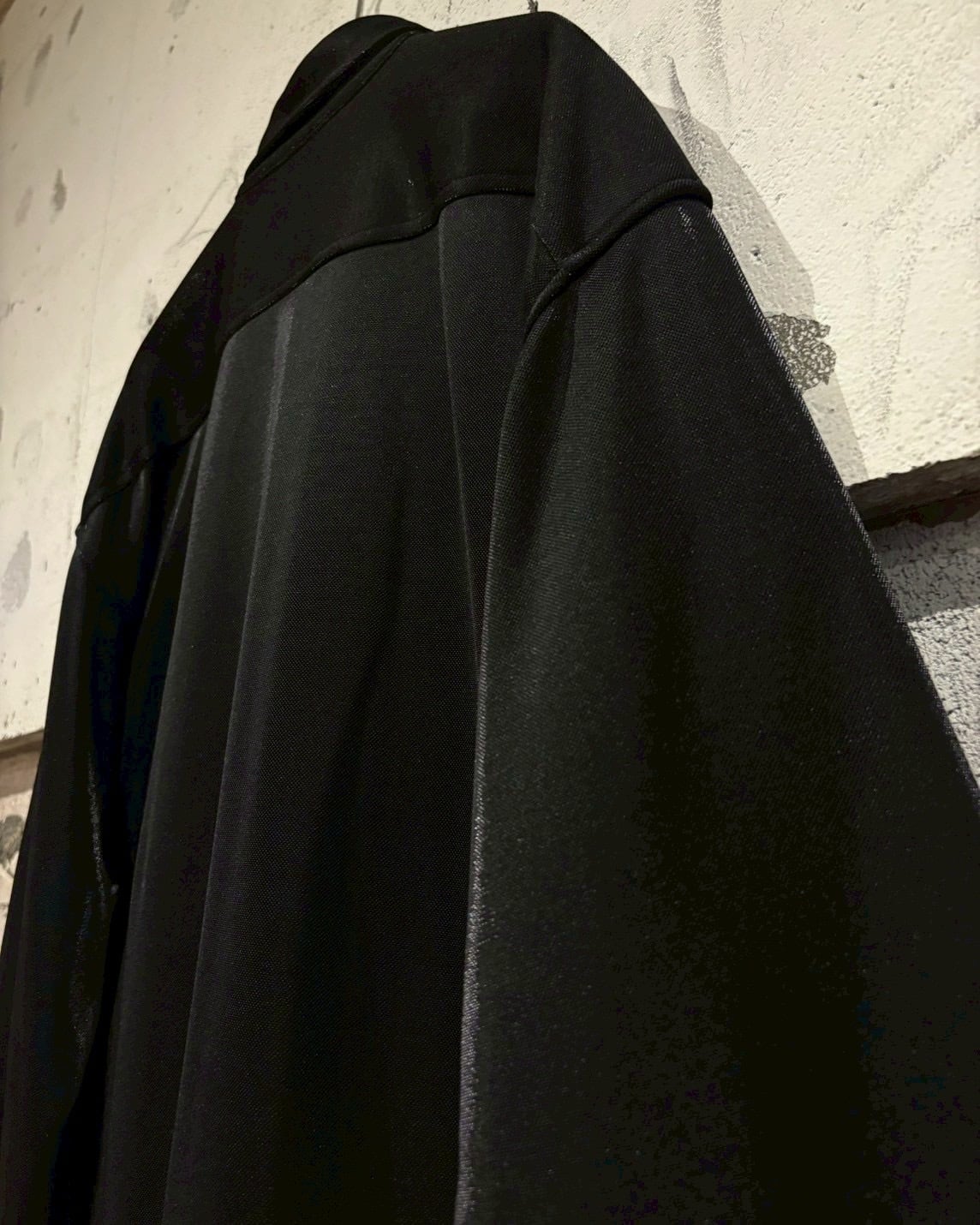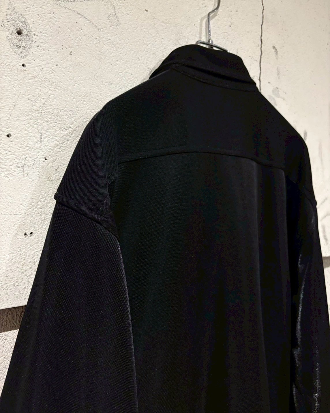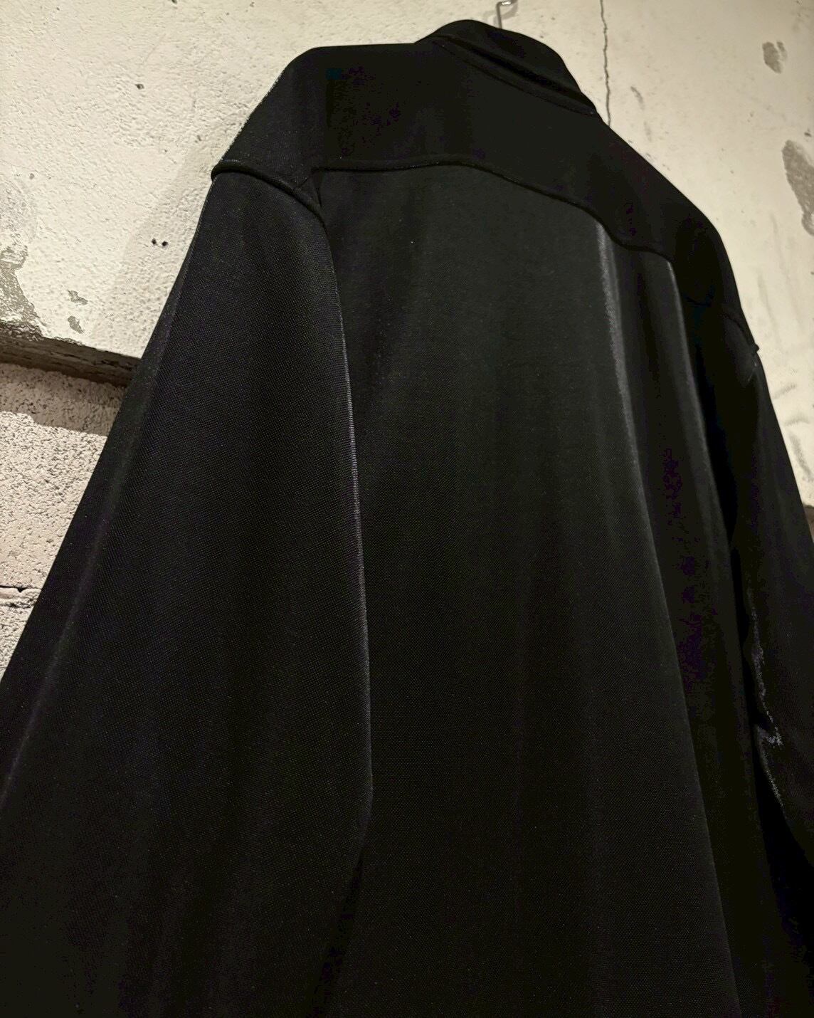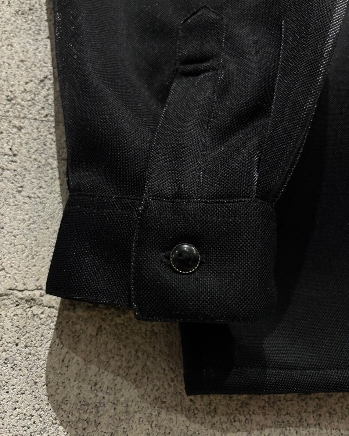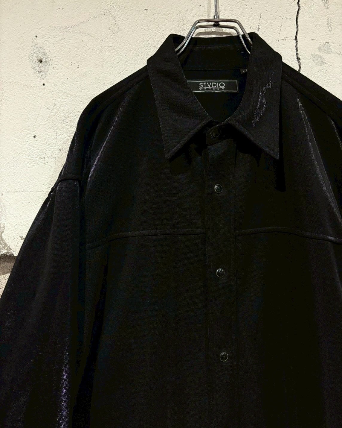 黒のボディをベースに、光沢のある糸を織り込むことで光の当たり加減によって艶やかな輝きを放つ、存在感抜群の長袖シャツ。