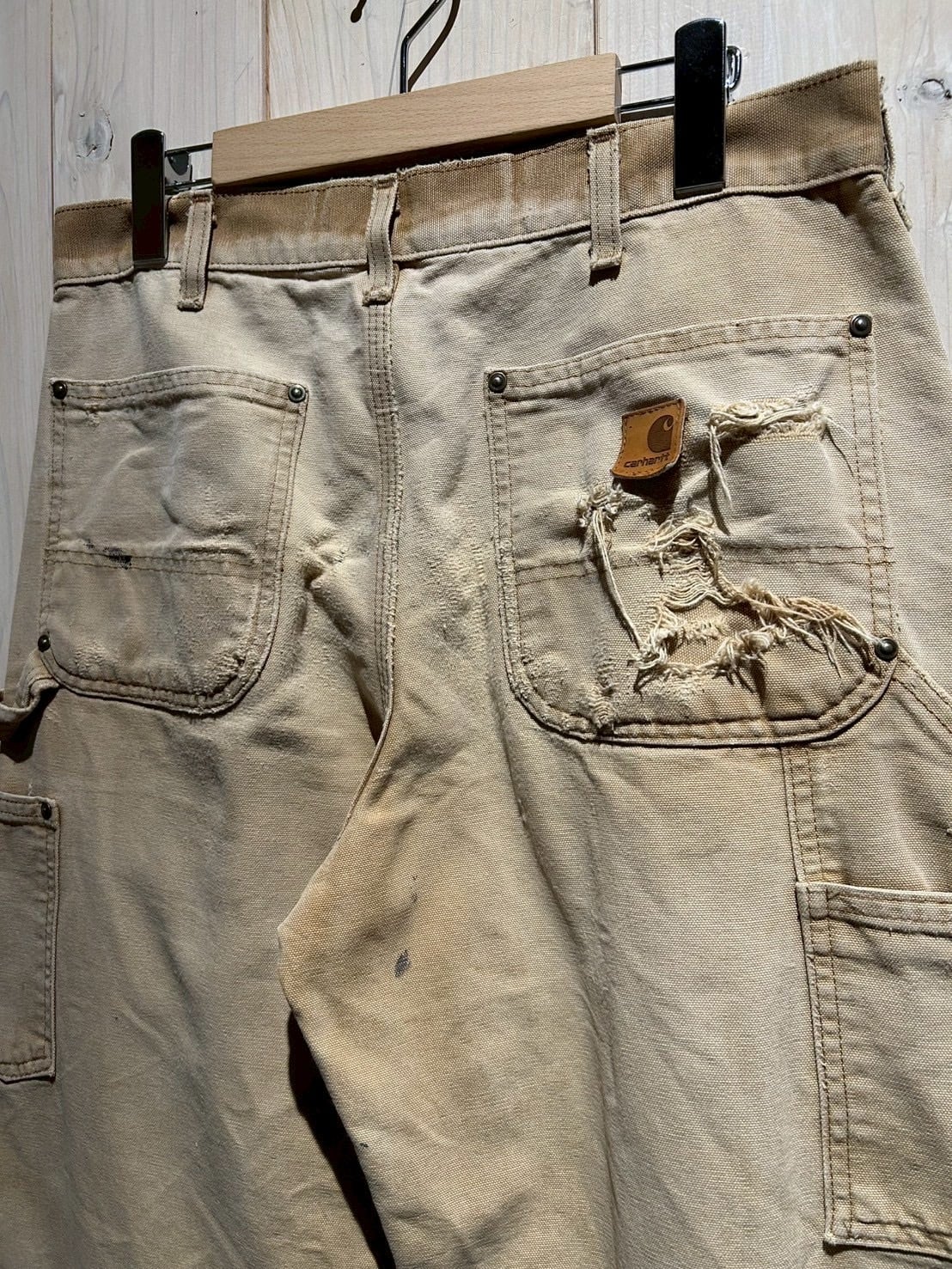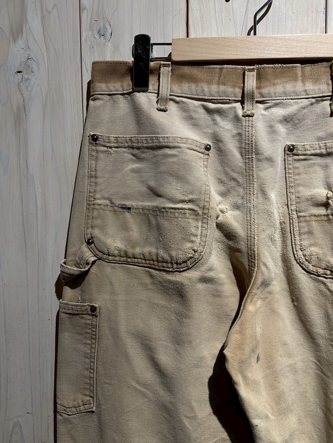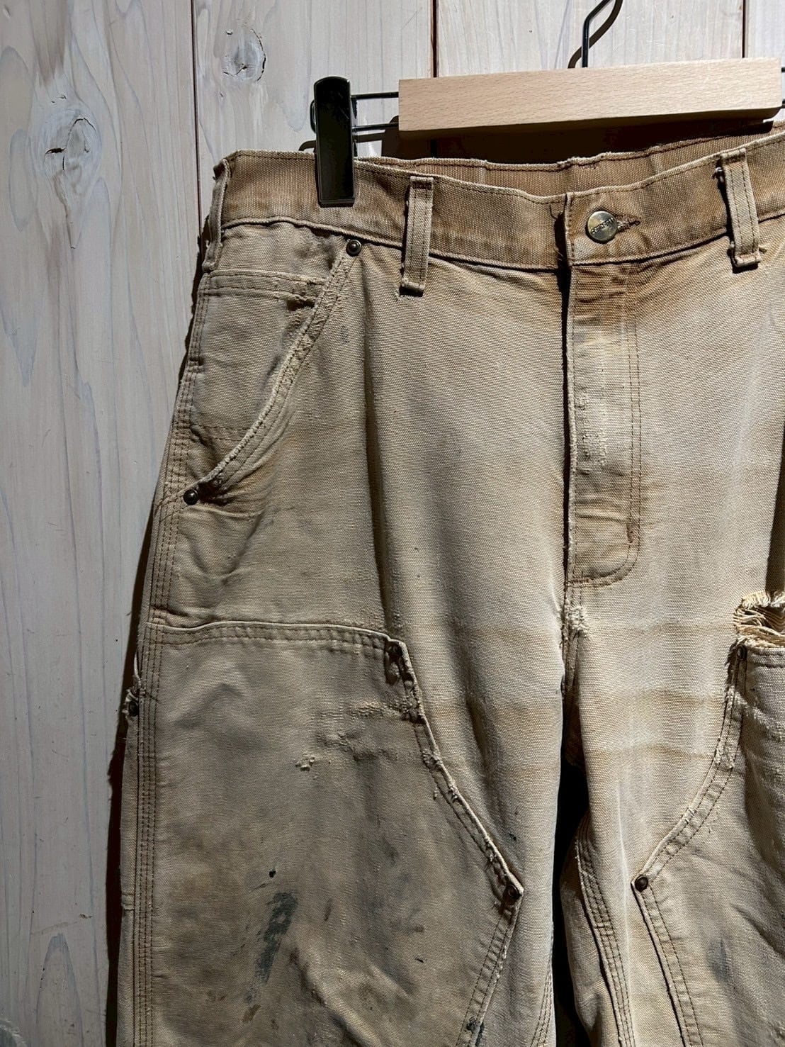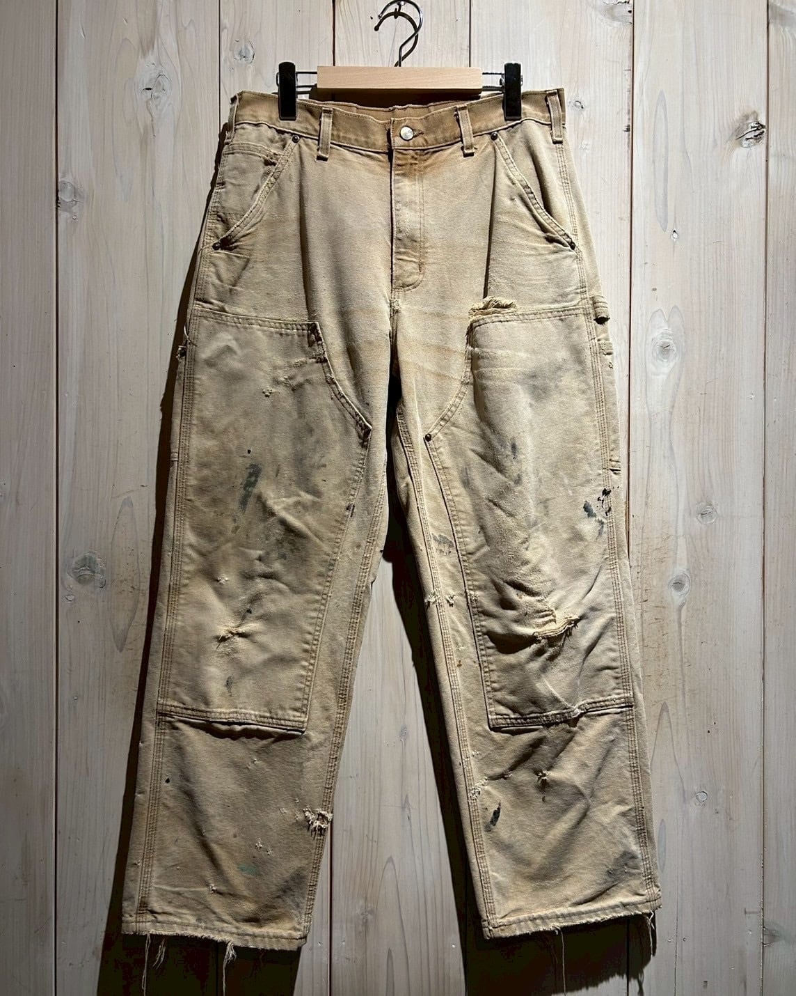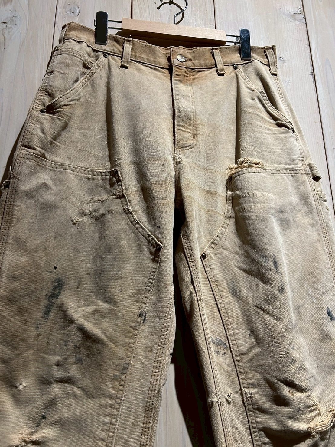 こちらは経年変化によってリアルにフェードがかり、破れやペンキ跡が刻まれた、唯一無二の表情を放つ ダブルニーダックパンツ。