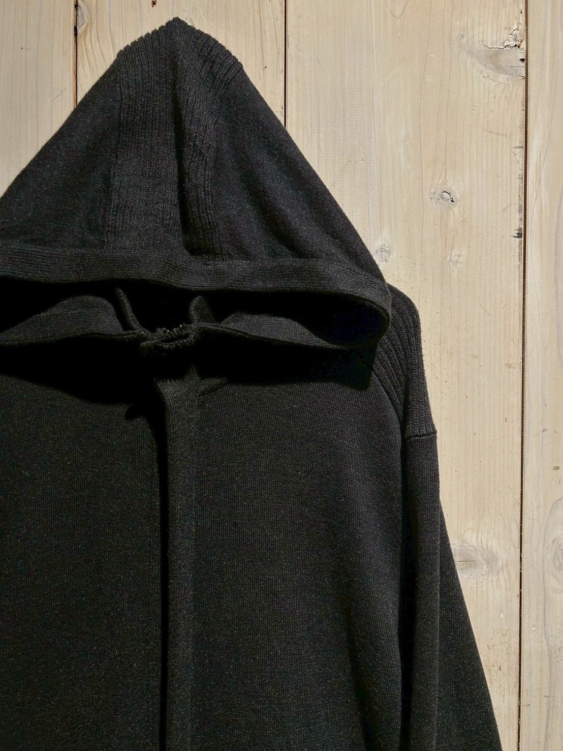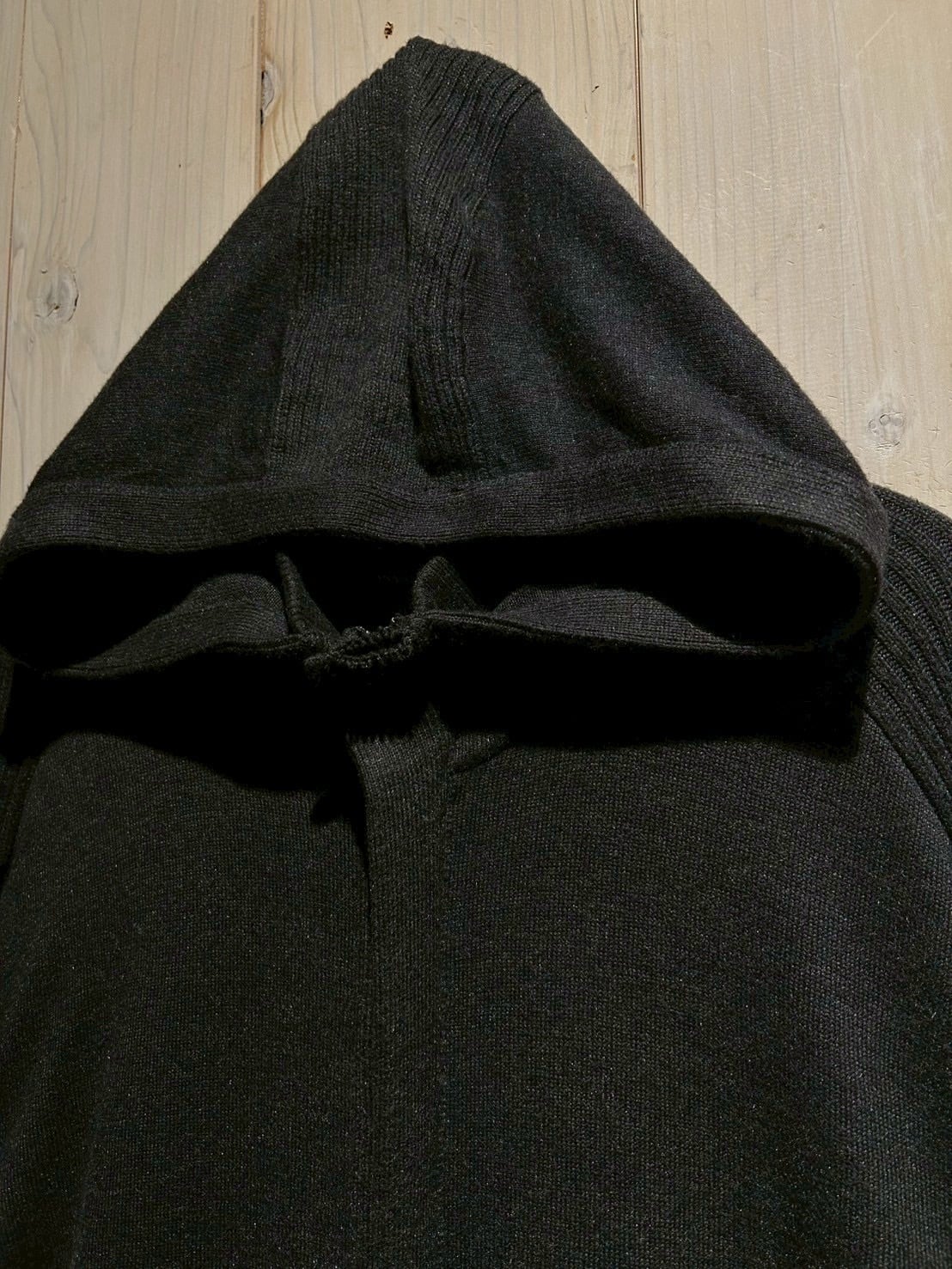 フロントは比翼仕立てのジップアップ仕様となっており、すっきりとした表情に。リラックス感のあるシルエットに加え、両サイドにはポケットと機能性においても素晴らしい。肩周りやフードにはリブ編みを採用し、ニットならではの表情豊かなディテールも魅力です。