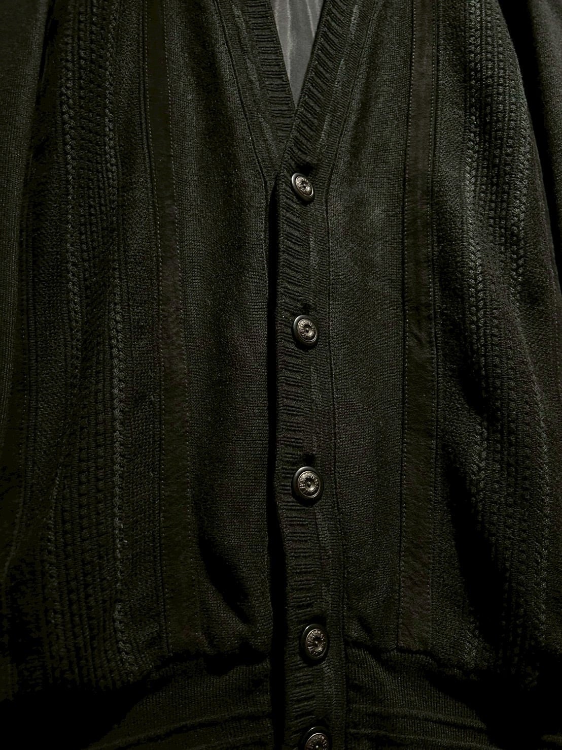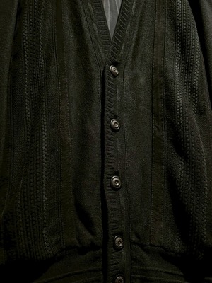 ブラックのニットにスエードレザーを切り替えたカーディガンジャケット。