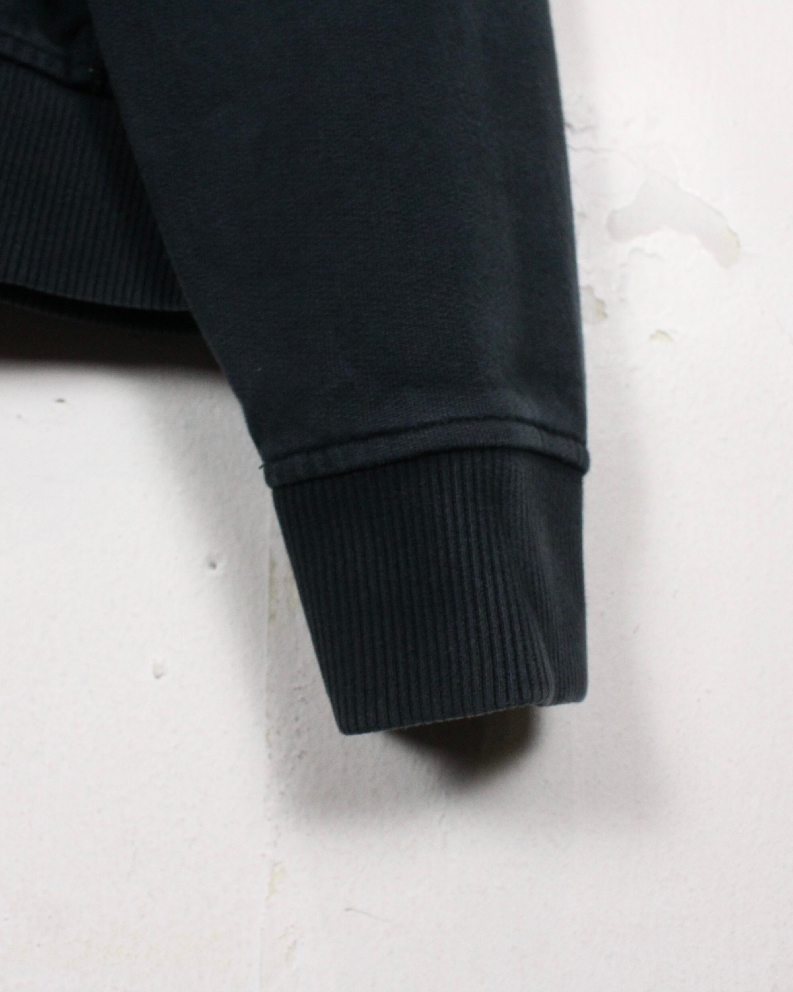 程よくフェードの効いたブラックボディに、フルジップ仕様とポケットを備えたベーシックな形ながら、存在感あるグラフィックが唯一無二の存在感を放つ1着。