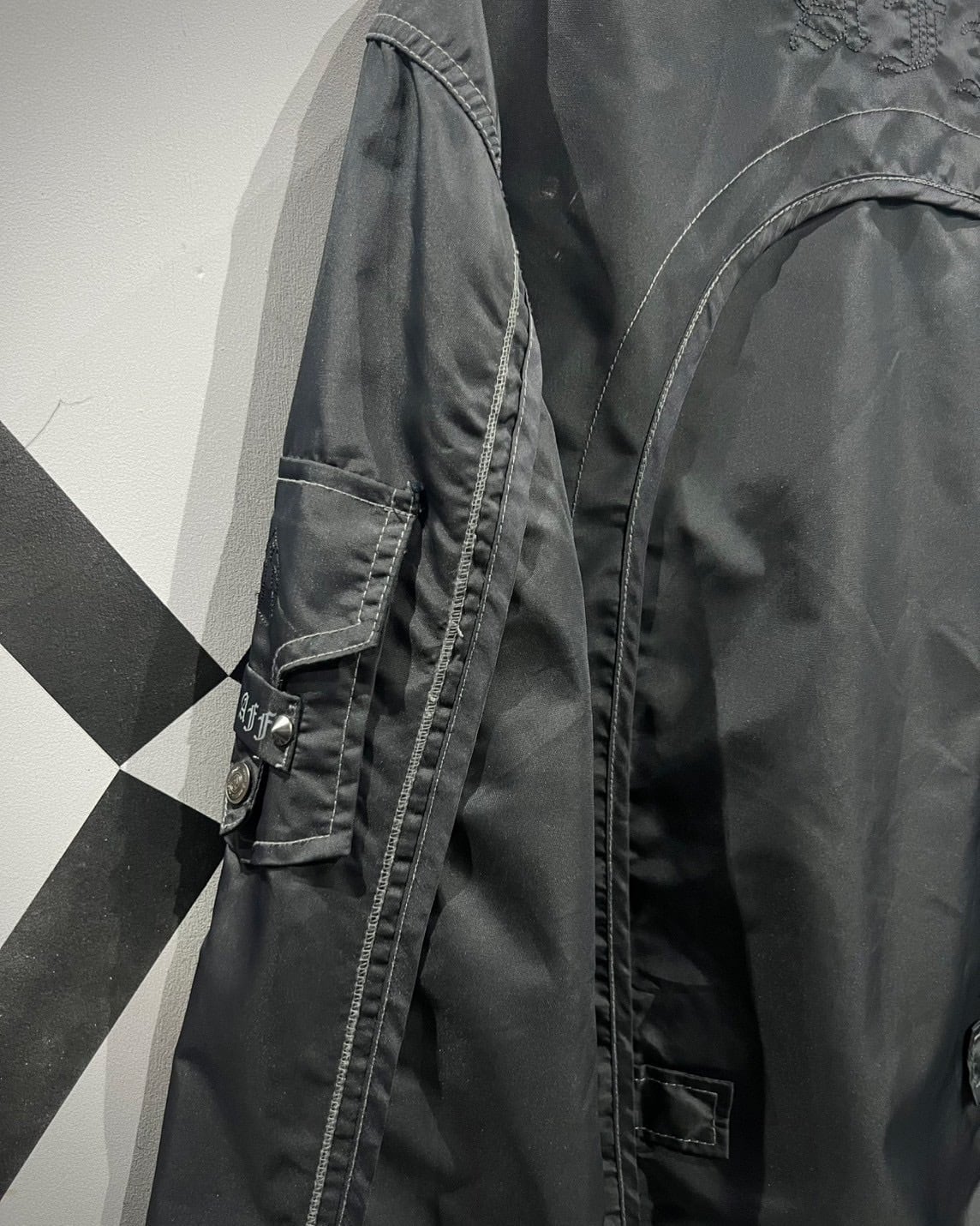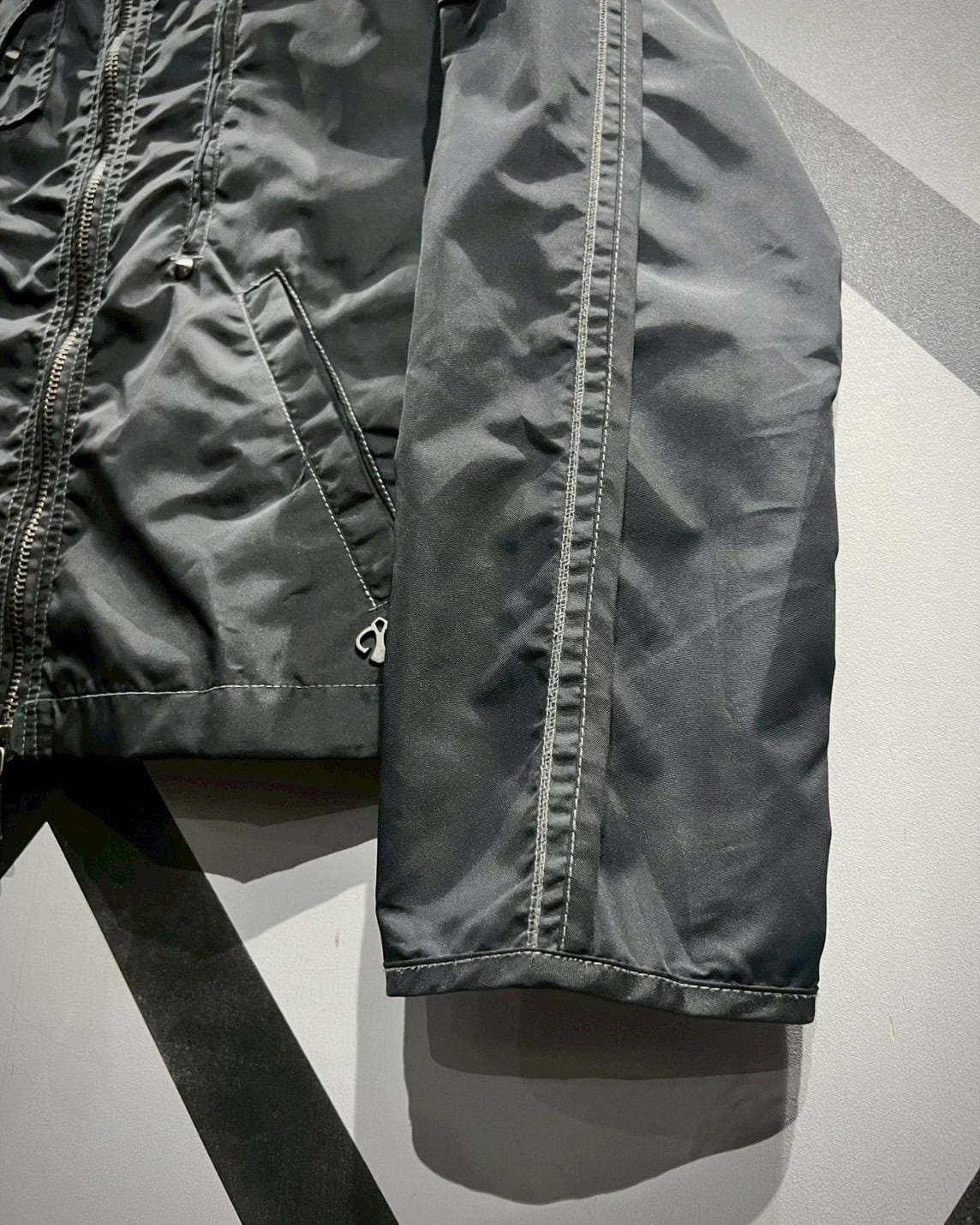 光沢感を放つブラックのナイロンボディに、随所へギミックを落とし込んだテックなジャケット。