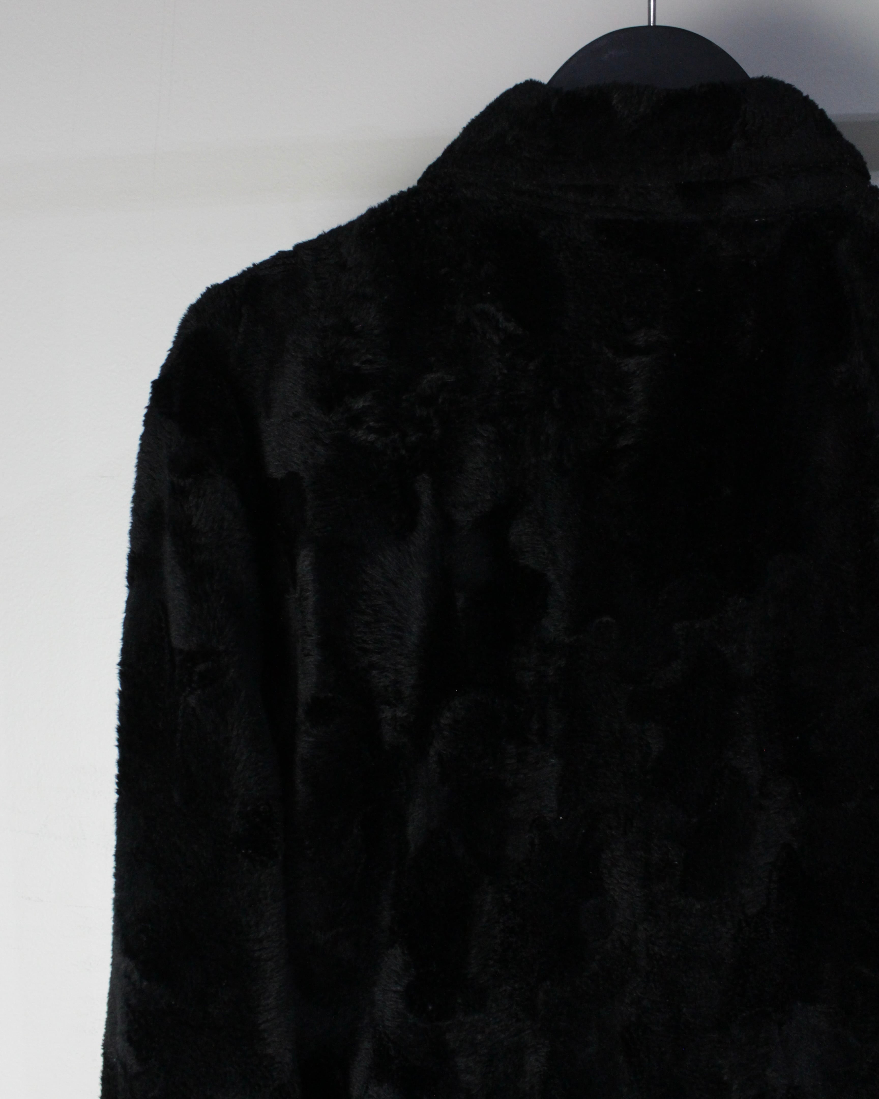 毛足の短いフェイクファーを全面に採用し、シンプルでありながらも贅沢な表情を纏ったジップアップジャケット。