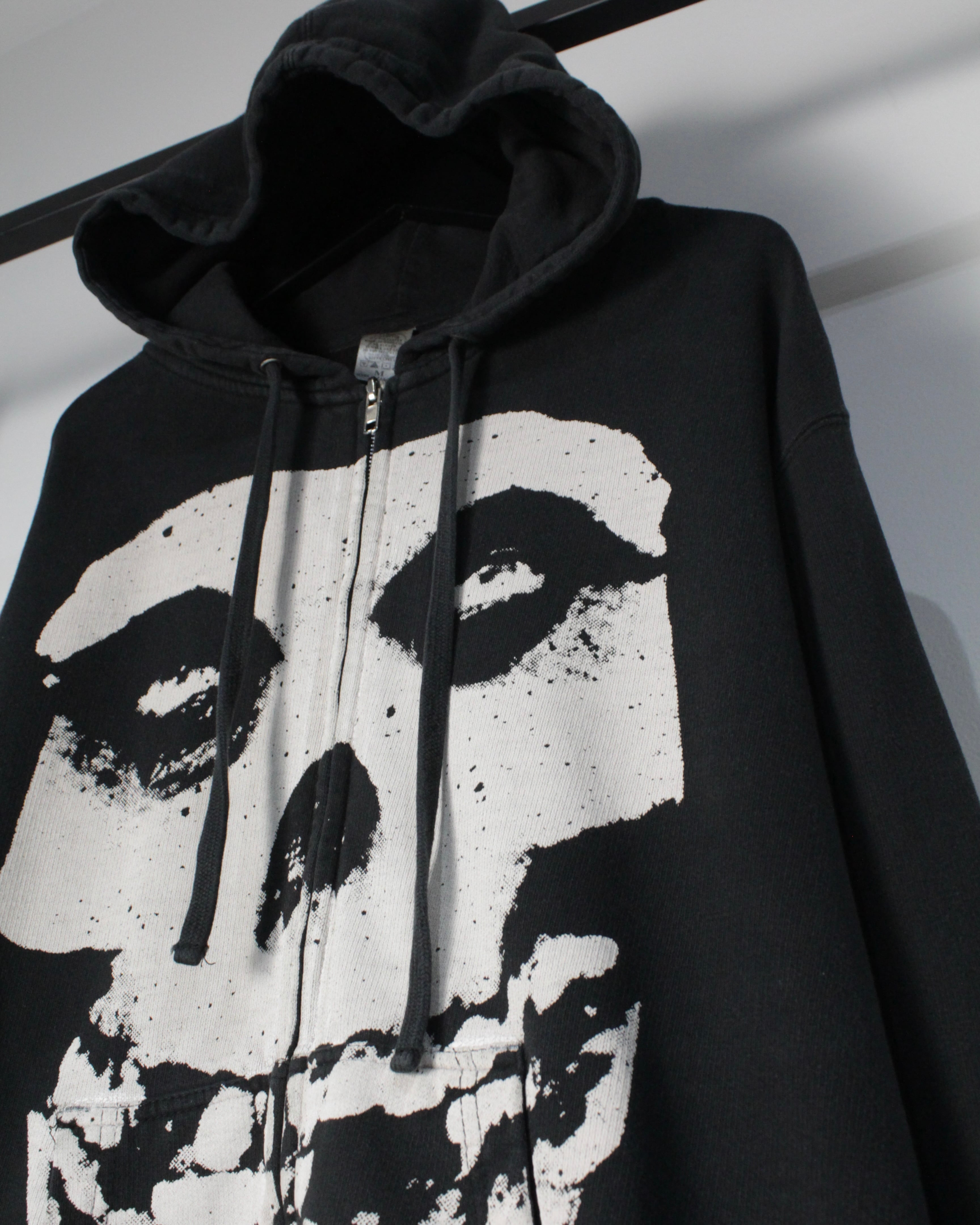 スラッシュメタル時代の“メタリカ”メンバーらが見出し、評価されたグループのひとつでもあるアメリカのハードコアパンクバンド “The Misfits” より、彼らのアイコンを象徴するジップアップフーディ。
