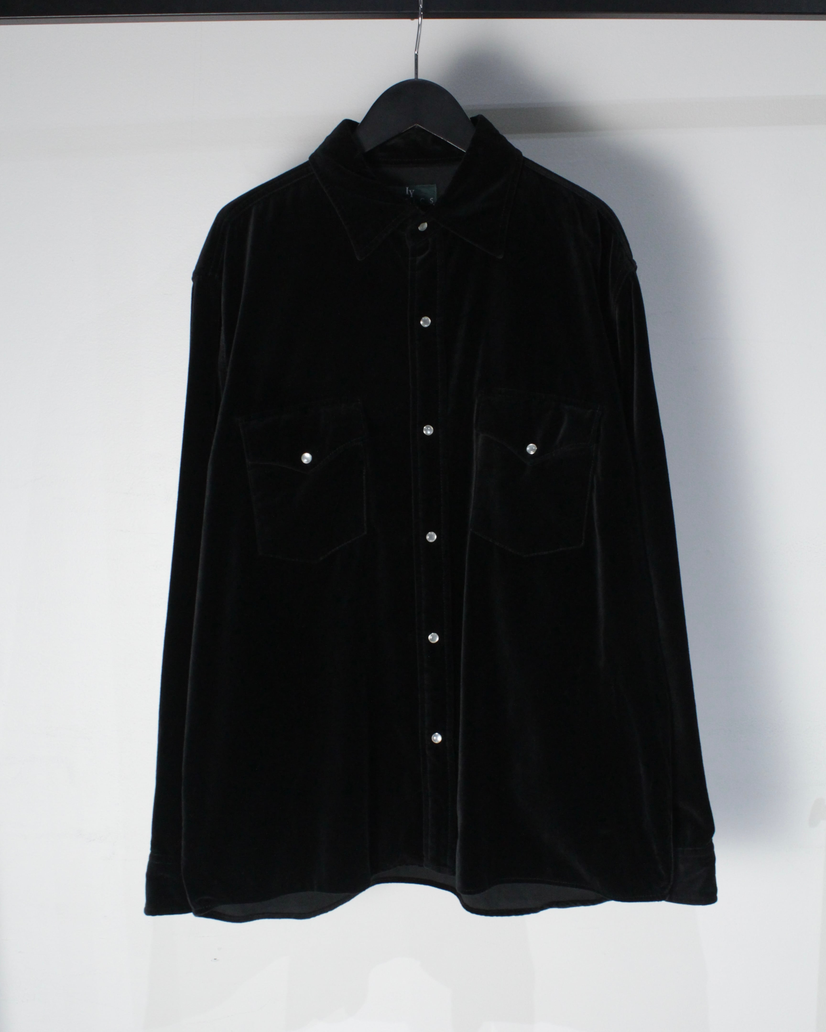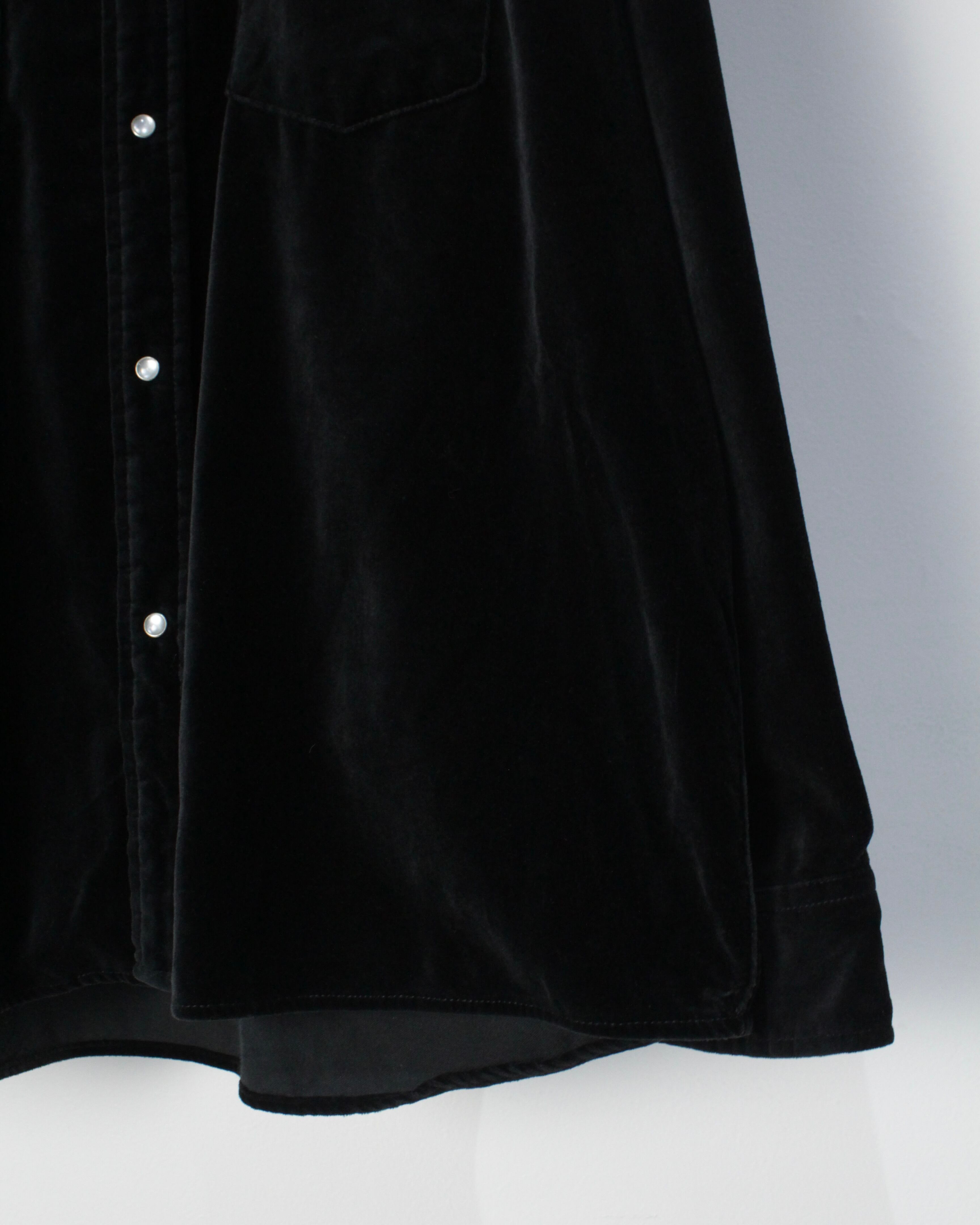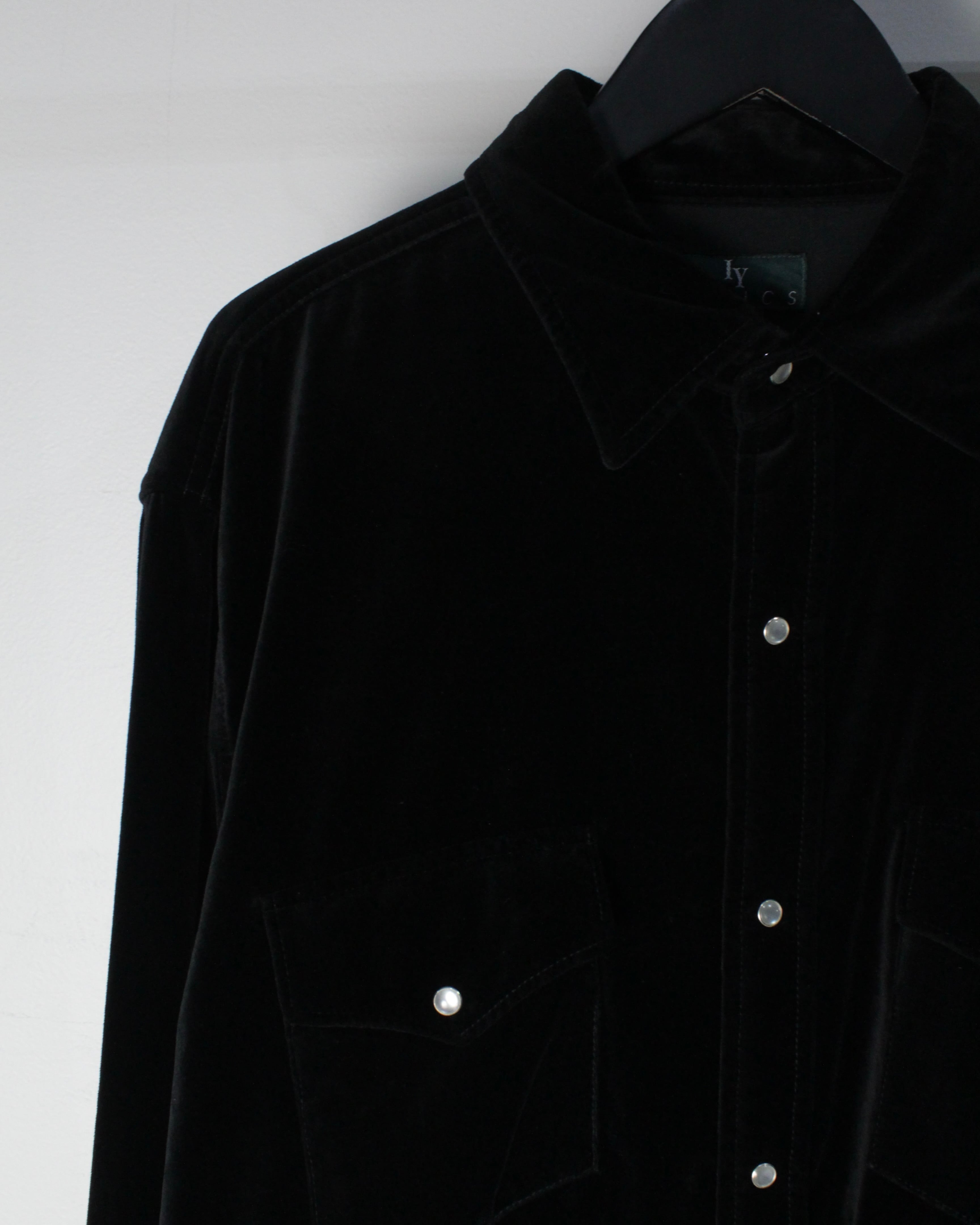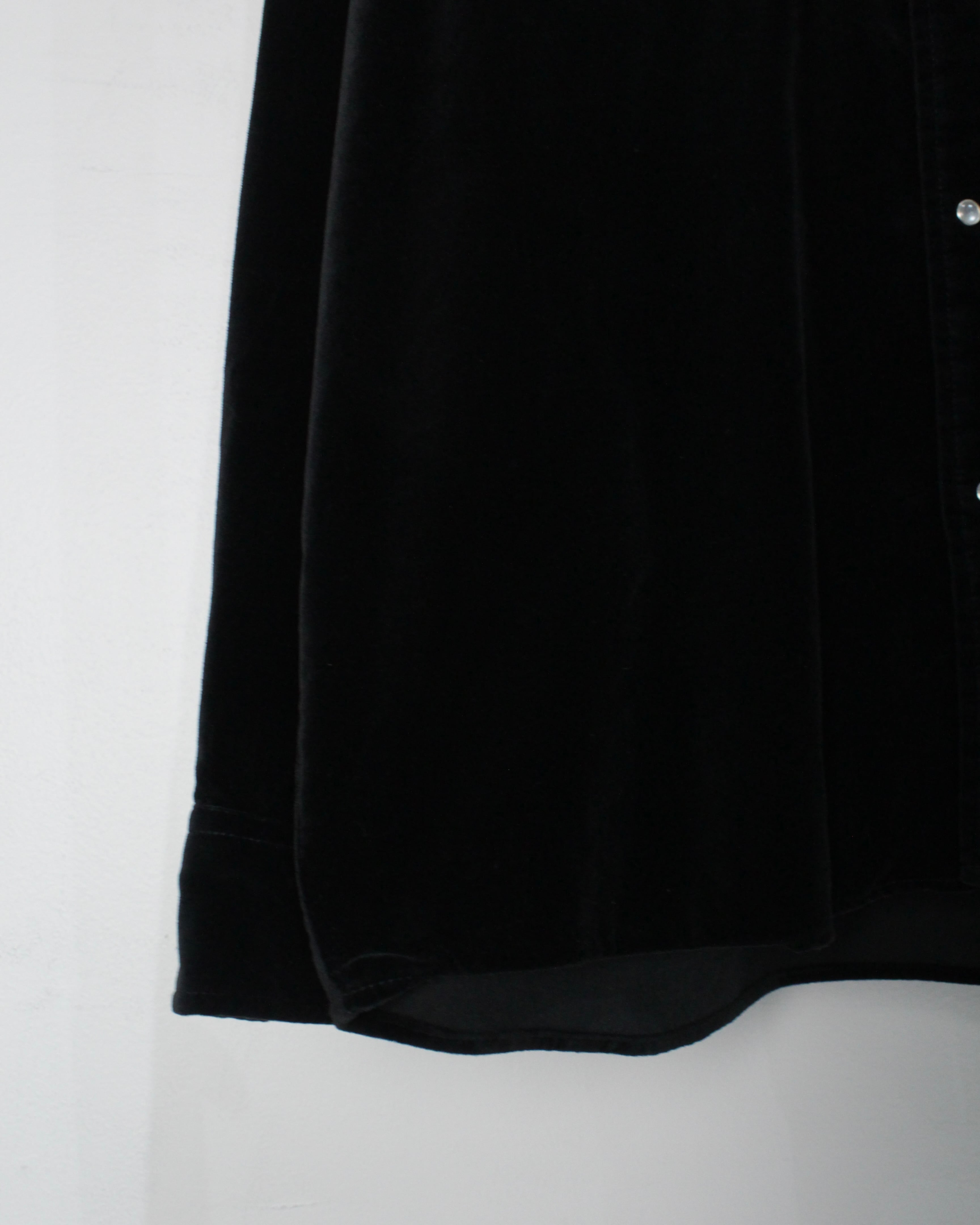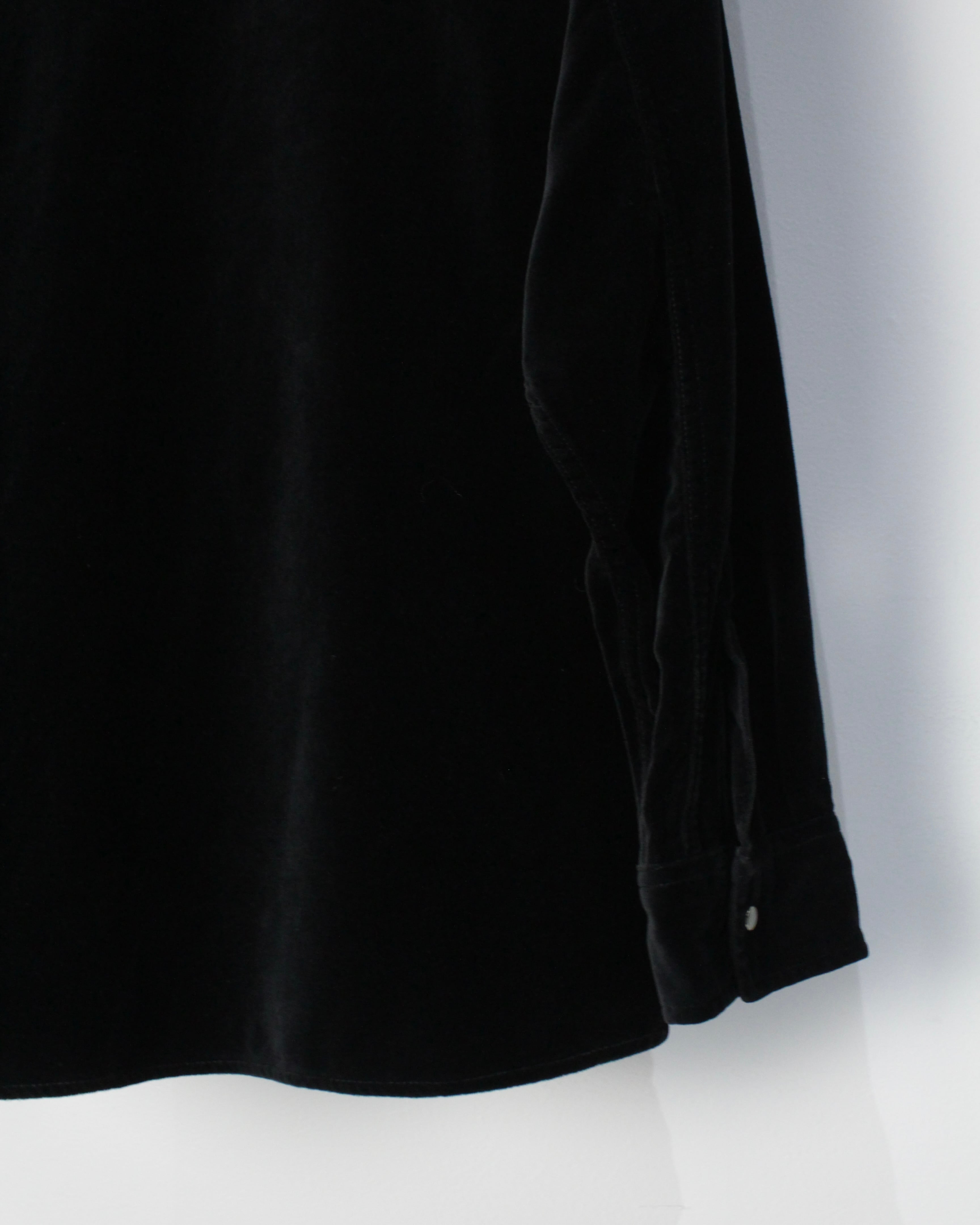 光の加減で鈍く光沢を放つ上質なブラックベロアを採用したトラッカージャケット。