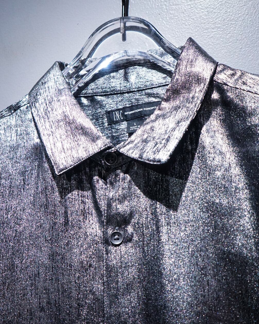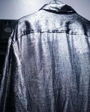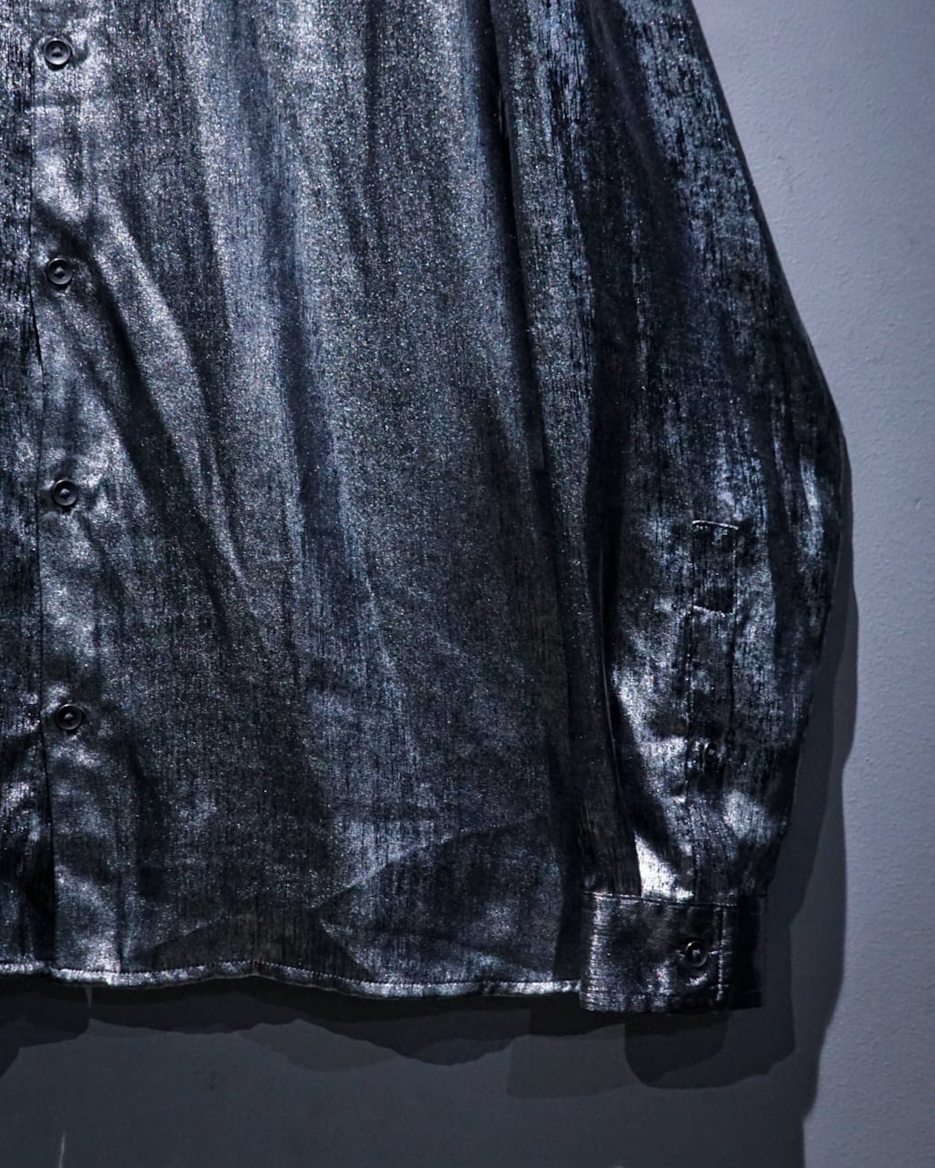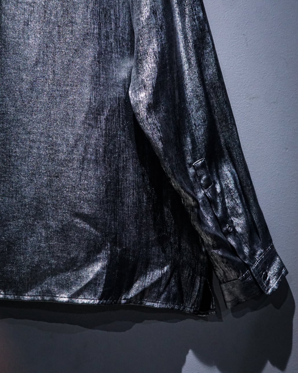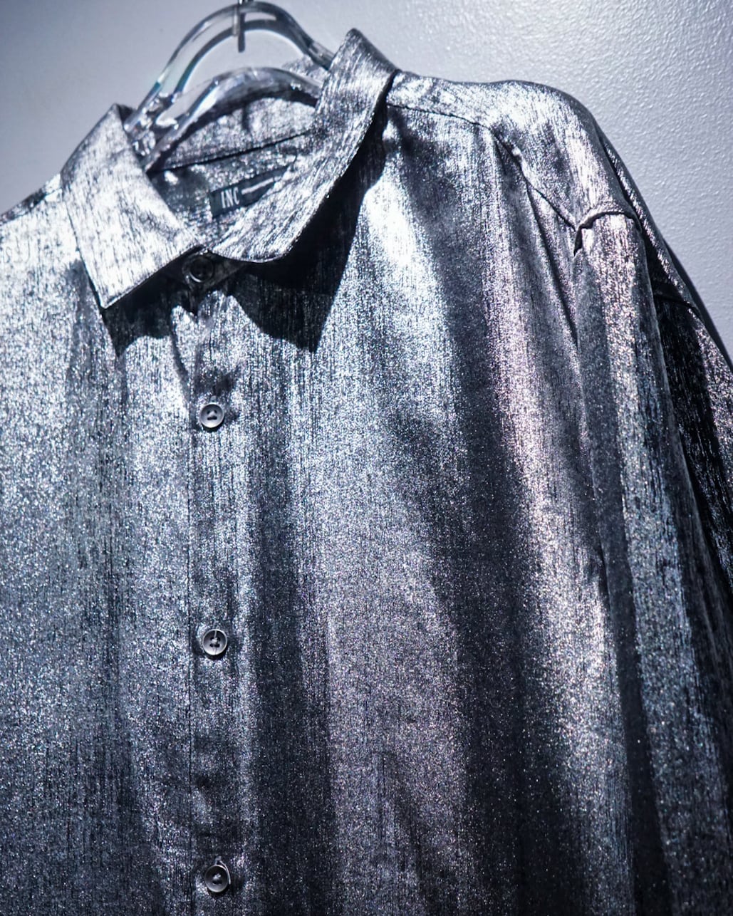 メタリックシルバーのテキスタイルを用いた、稀有な長袖シャツ。