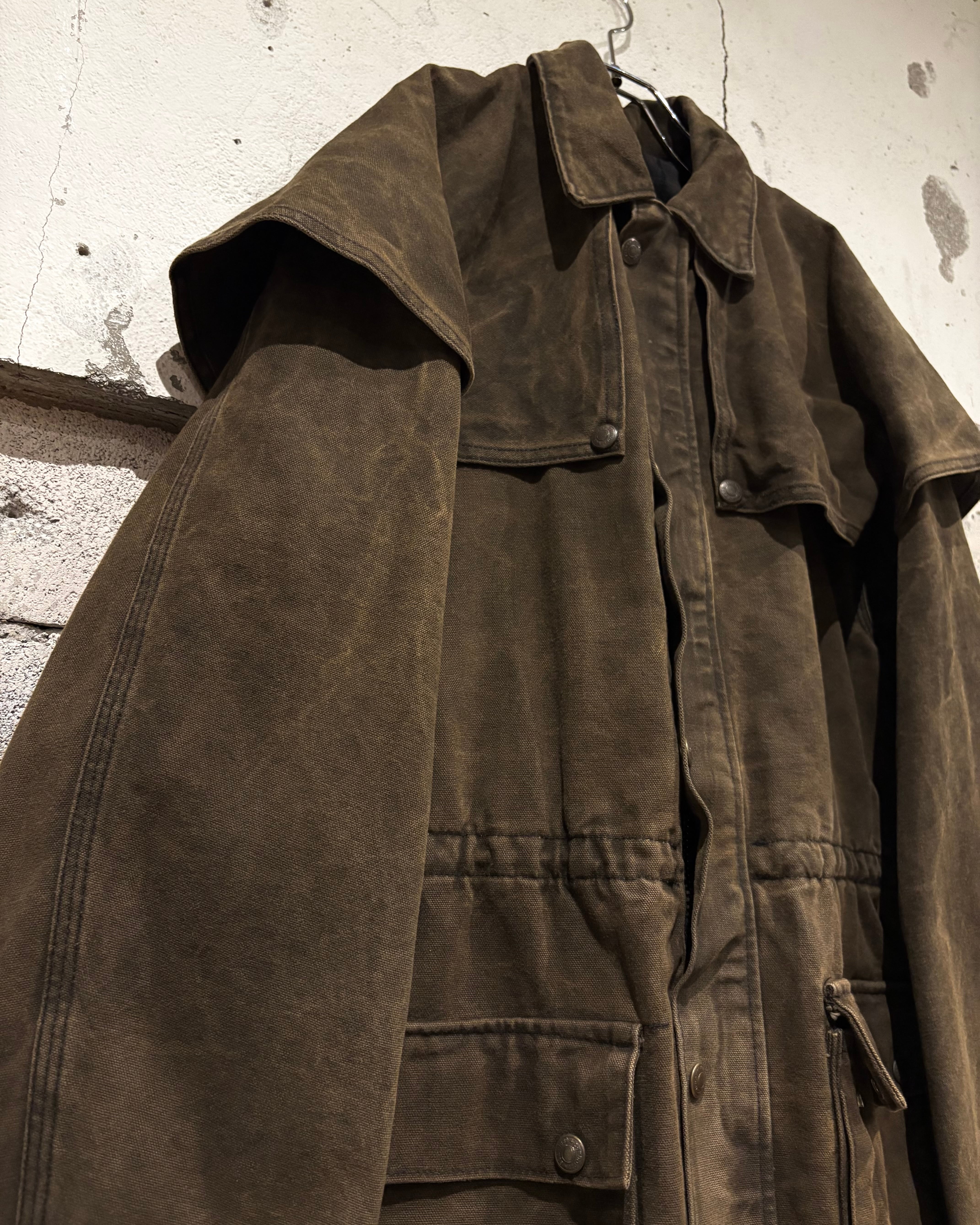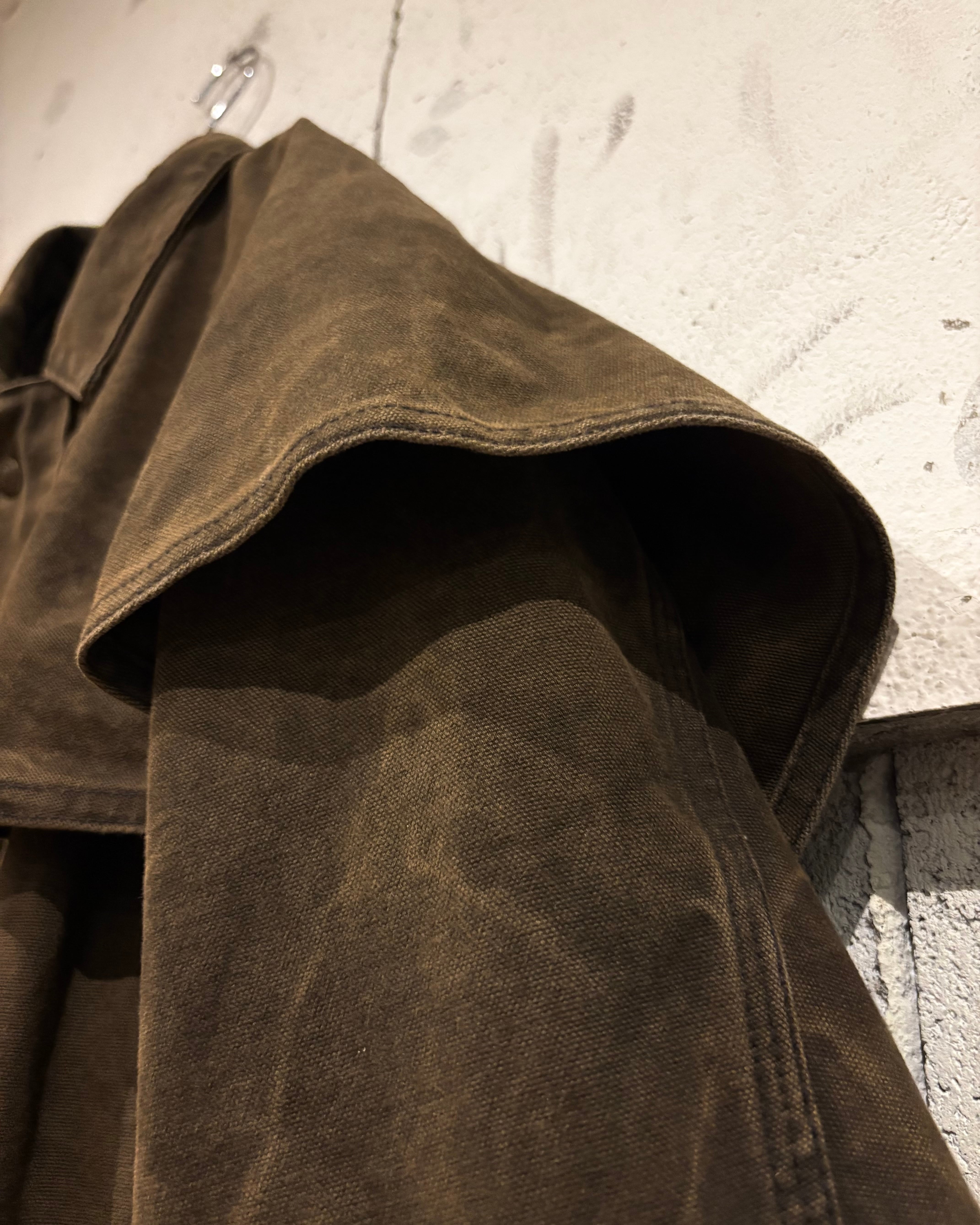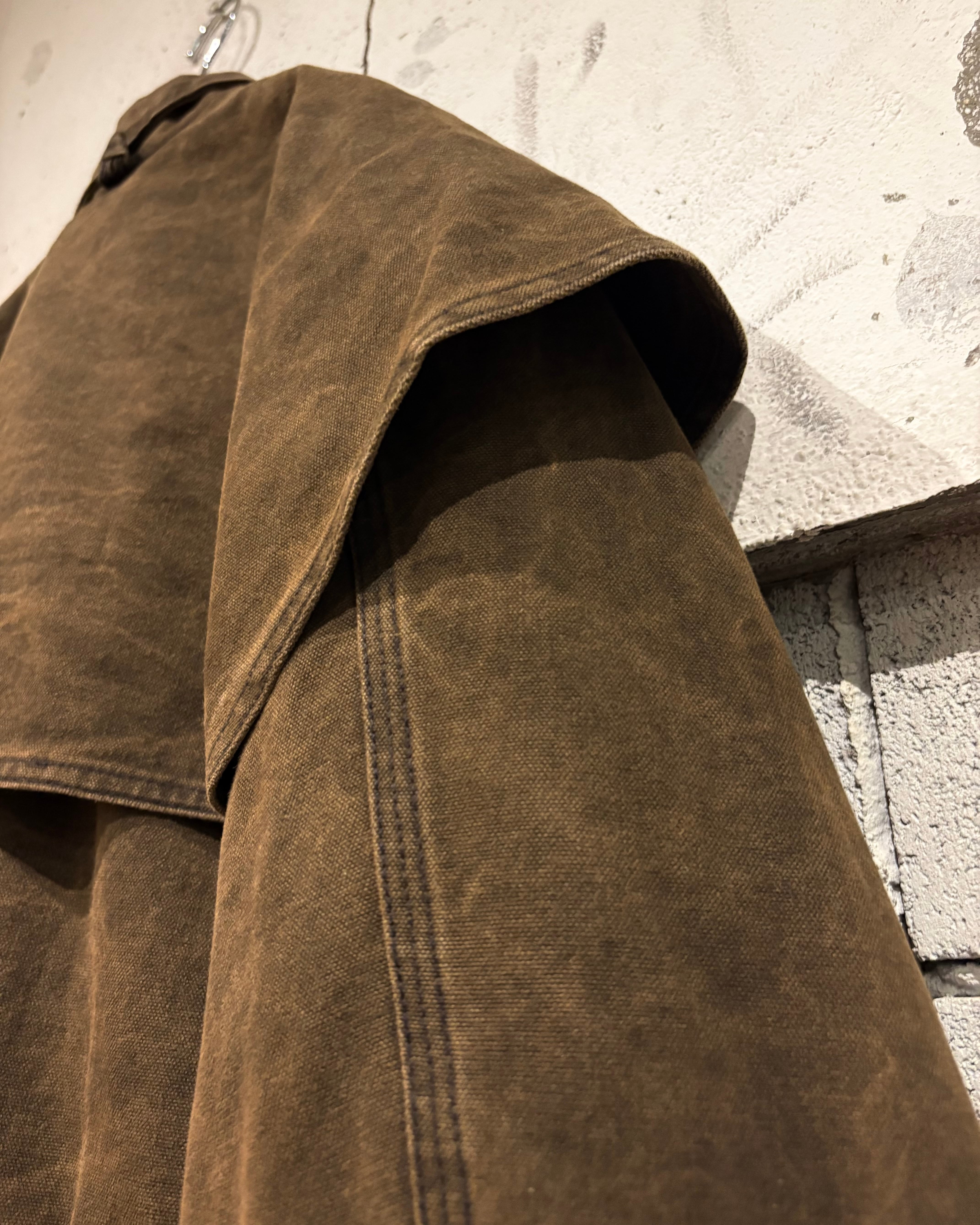 無骨なブラウンダック地をベースに、長年着込まれたリアルなフェード感が全体に広がり、ワークウェアならではのタフさと味わいを両立させた1着。独特のエイジングが、現行には出せない唯一無二の表情を生み出しています。