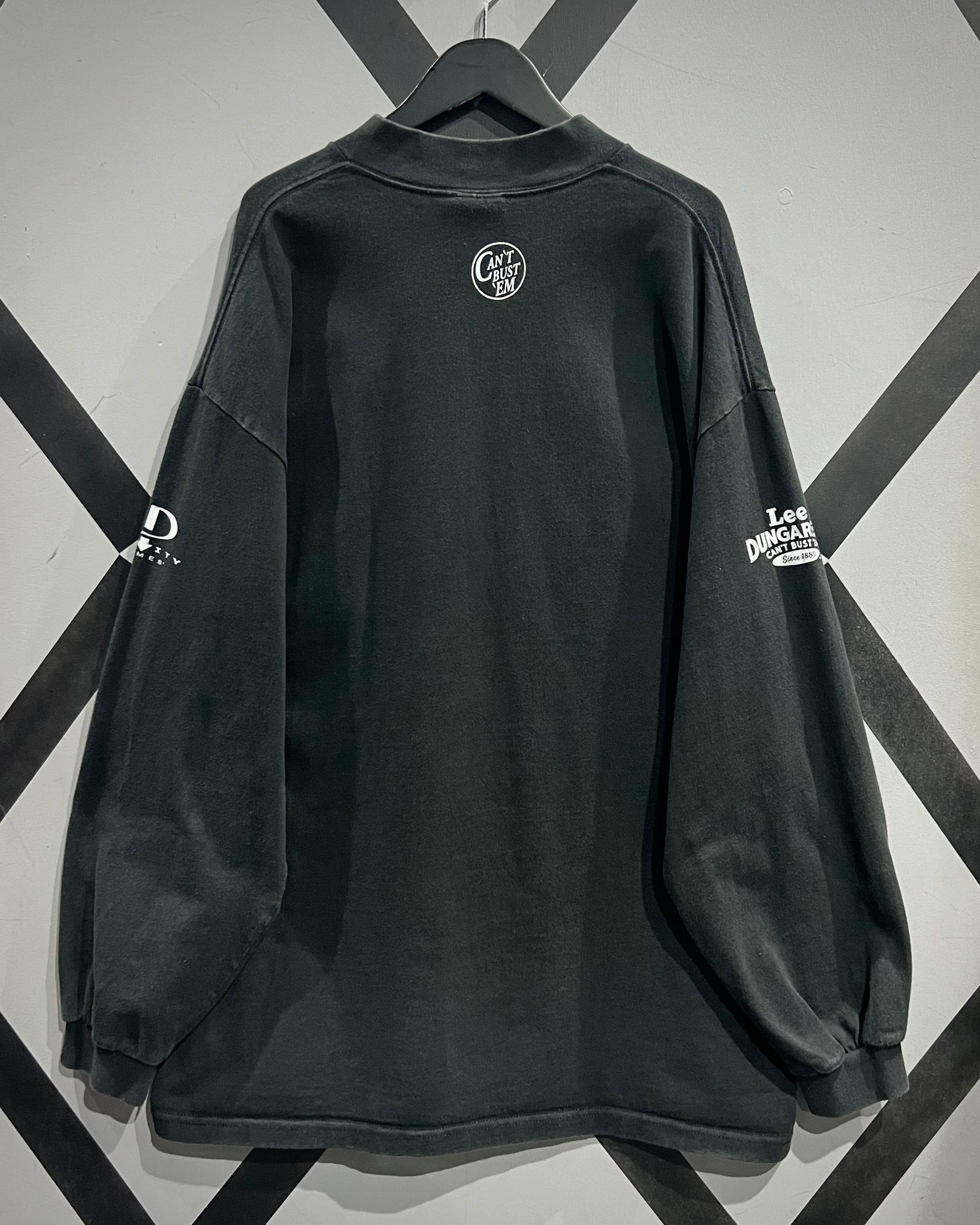 ブラックボディに、Leeの広告塔として知られる“Buddy Lee”をフロントにプリント。さらに右アームには“Lee DUNGAREES”、左アームには“GRAVITY GAMES”のロゴをONした存在感あるデザインです。