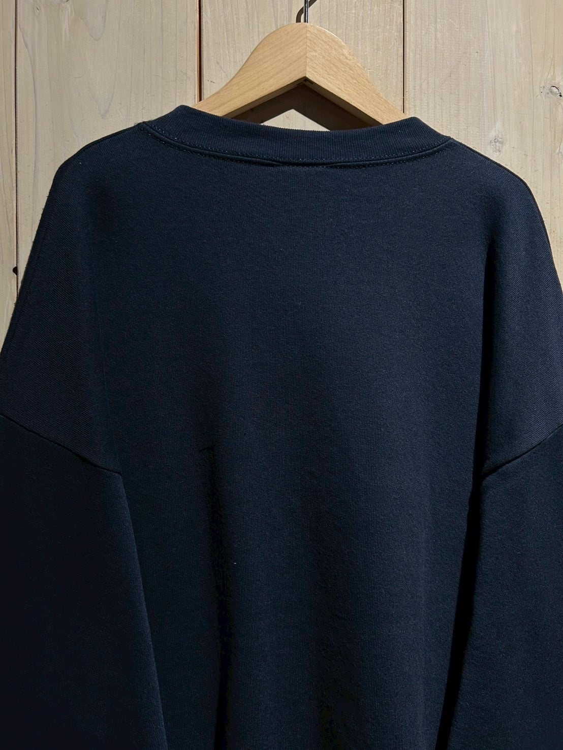 生地は程よいコシのあるコットン×ポリエステルボディ。リブもしっかり残っており、ルーズに肩が落ちるシルエットが今の気分にもジャストフィット。薄手でレイヤードしやすく、インナーにもトップスにも自在に活躍してくれます。