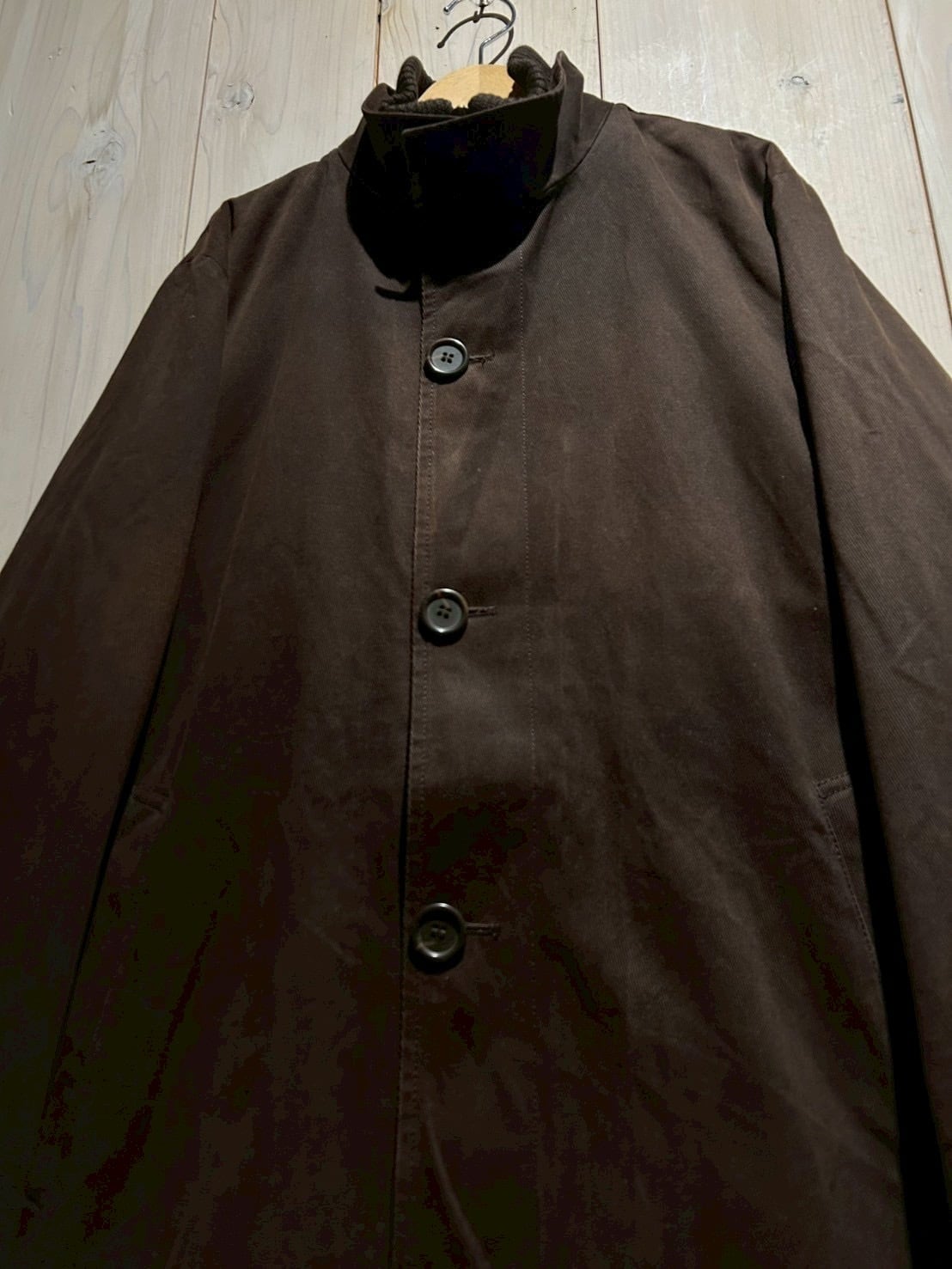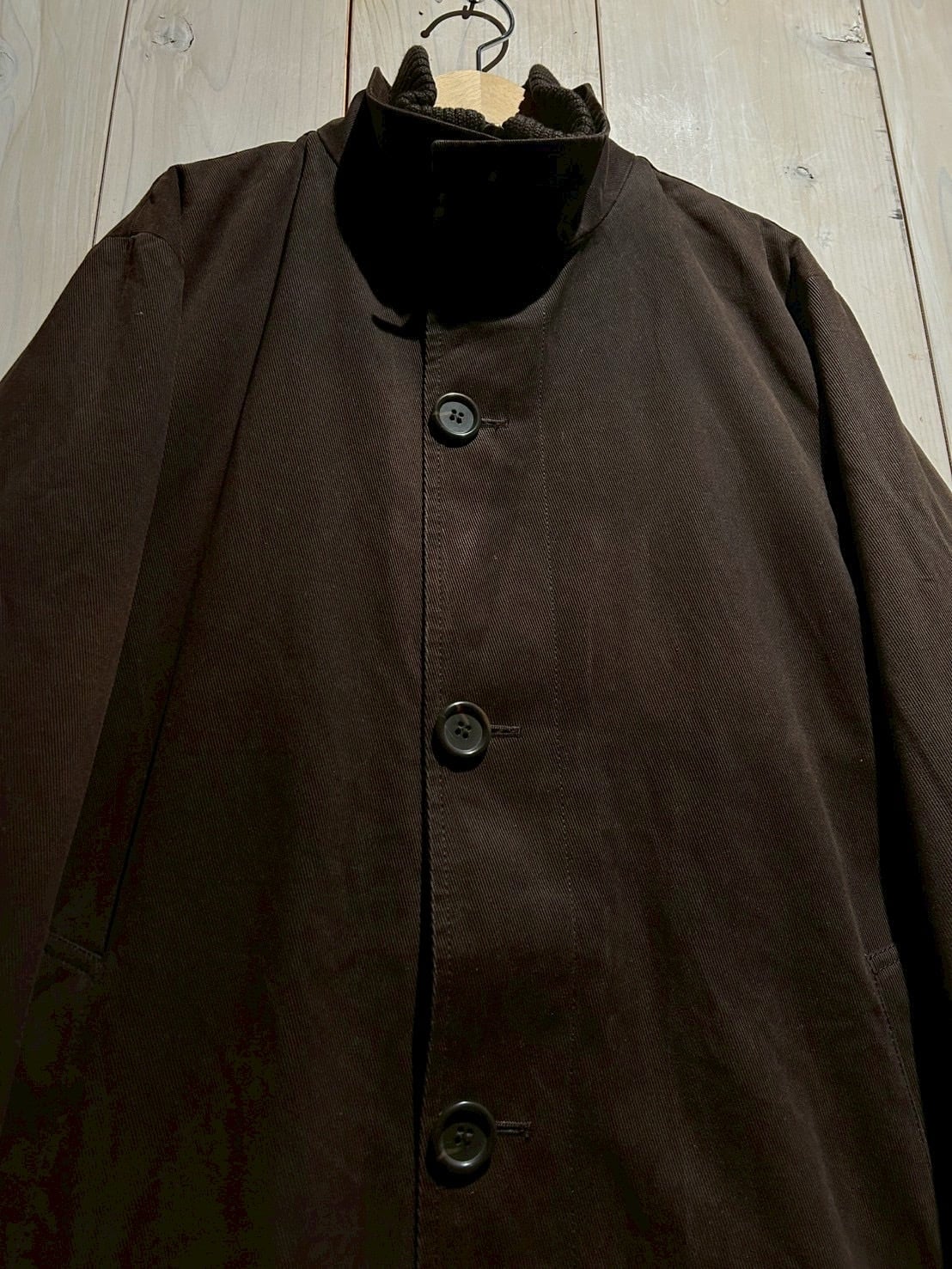 このブランドならではの上質なコットンツイルのボディに、まるでジップアップのインナーを仕込んだような、レイヤード風のデザインに仕上げられたコート。
