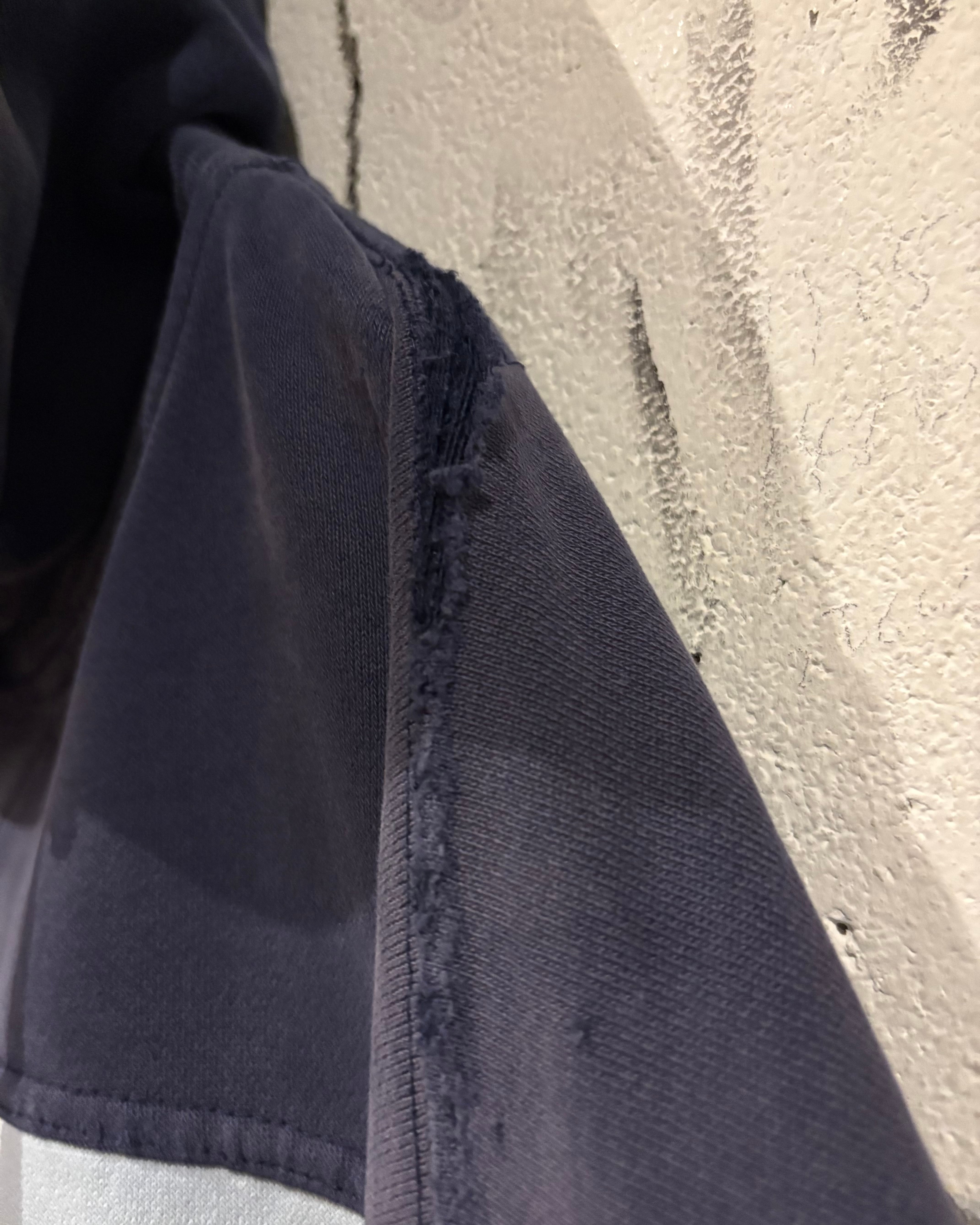 全体に経年変化からくるボロが広がり、古着特有の退廃感とリアルなストリート感を纏った唯一無二の佇まい。ナチュラルなダメージだからこそ、スタイリングに落とし込んだ際に絶妙な抜け感を演出してくれます。