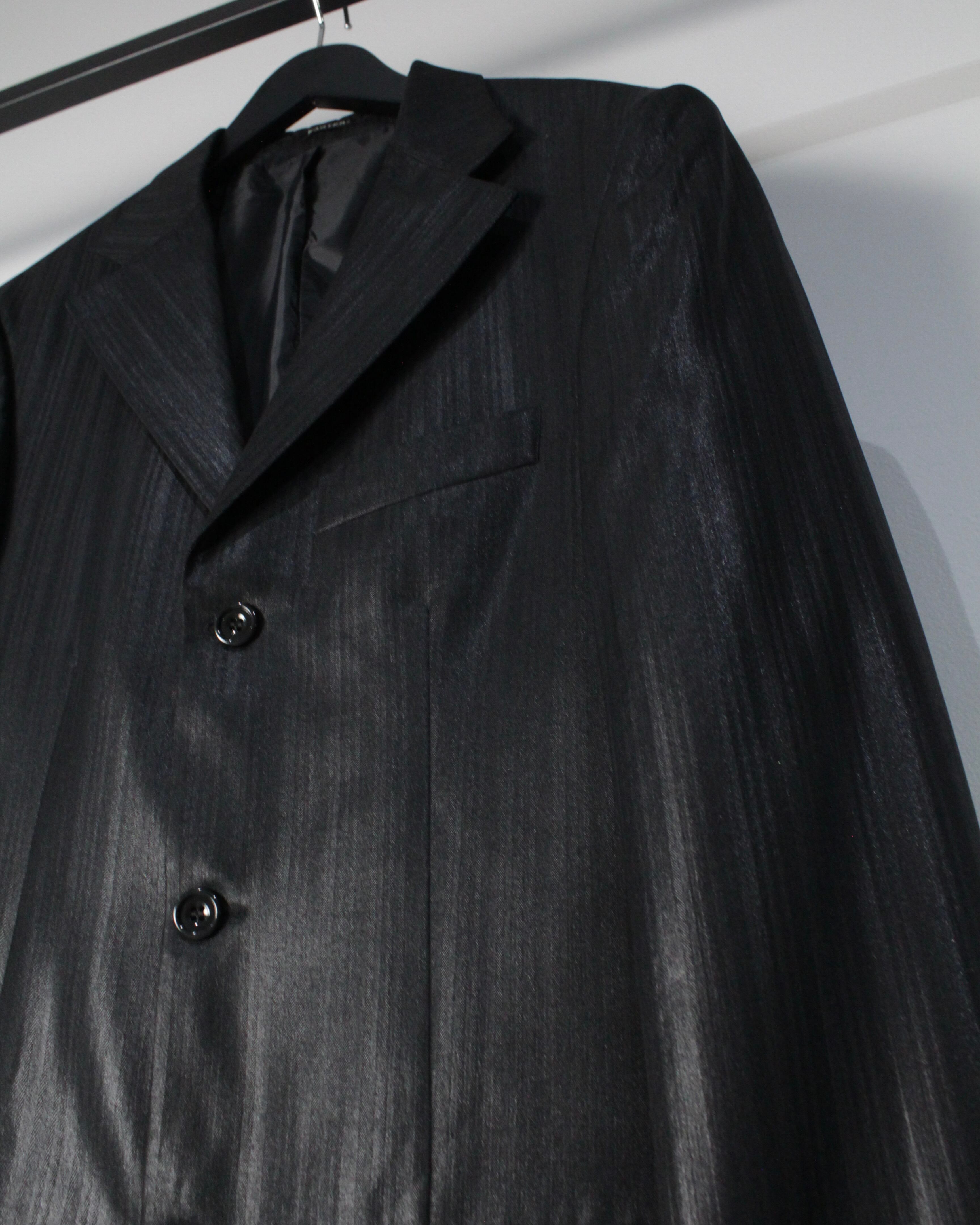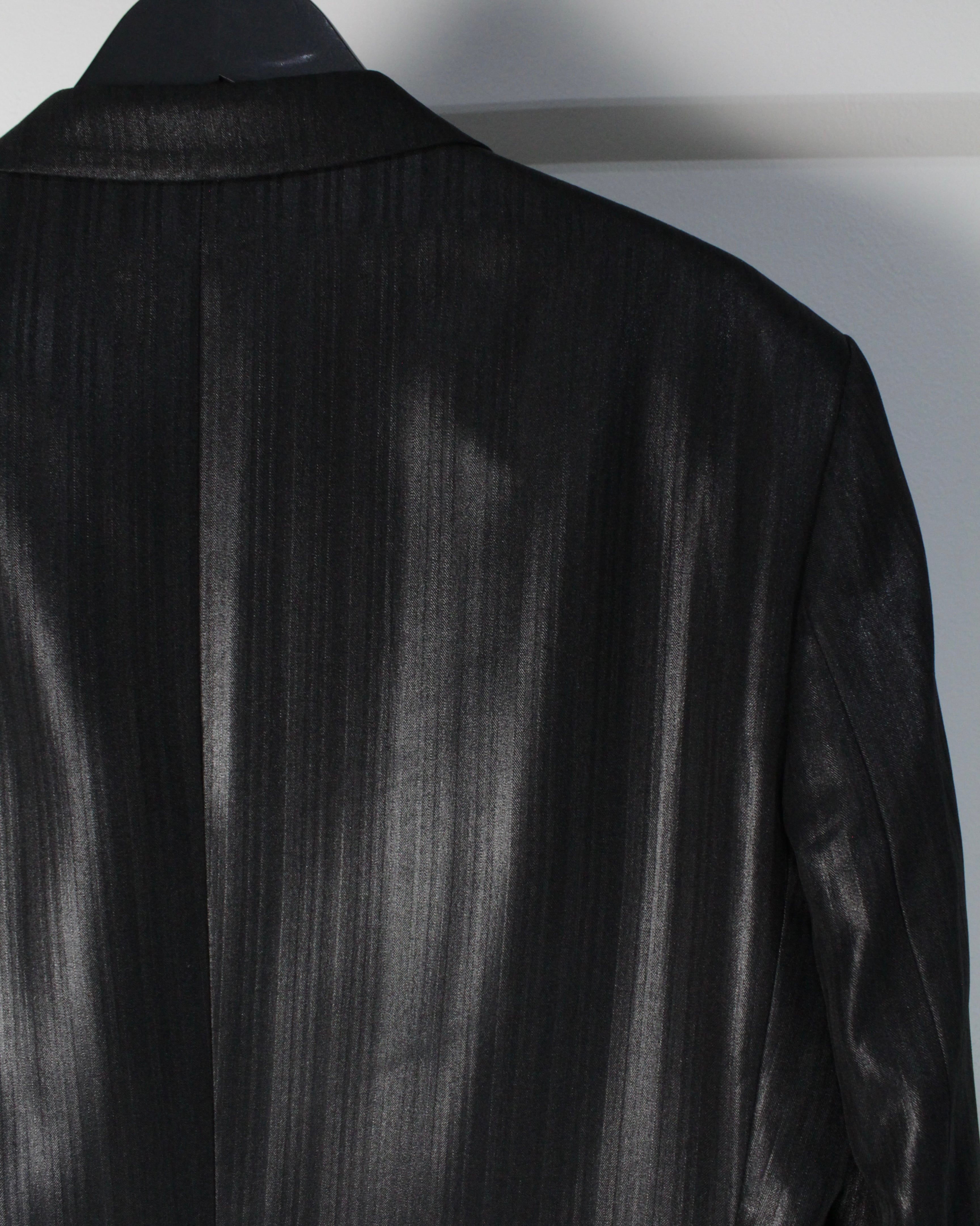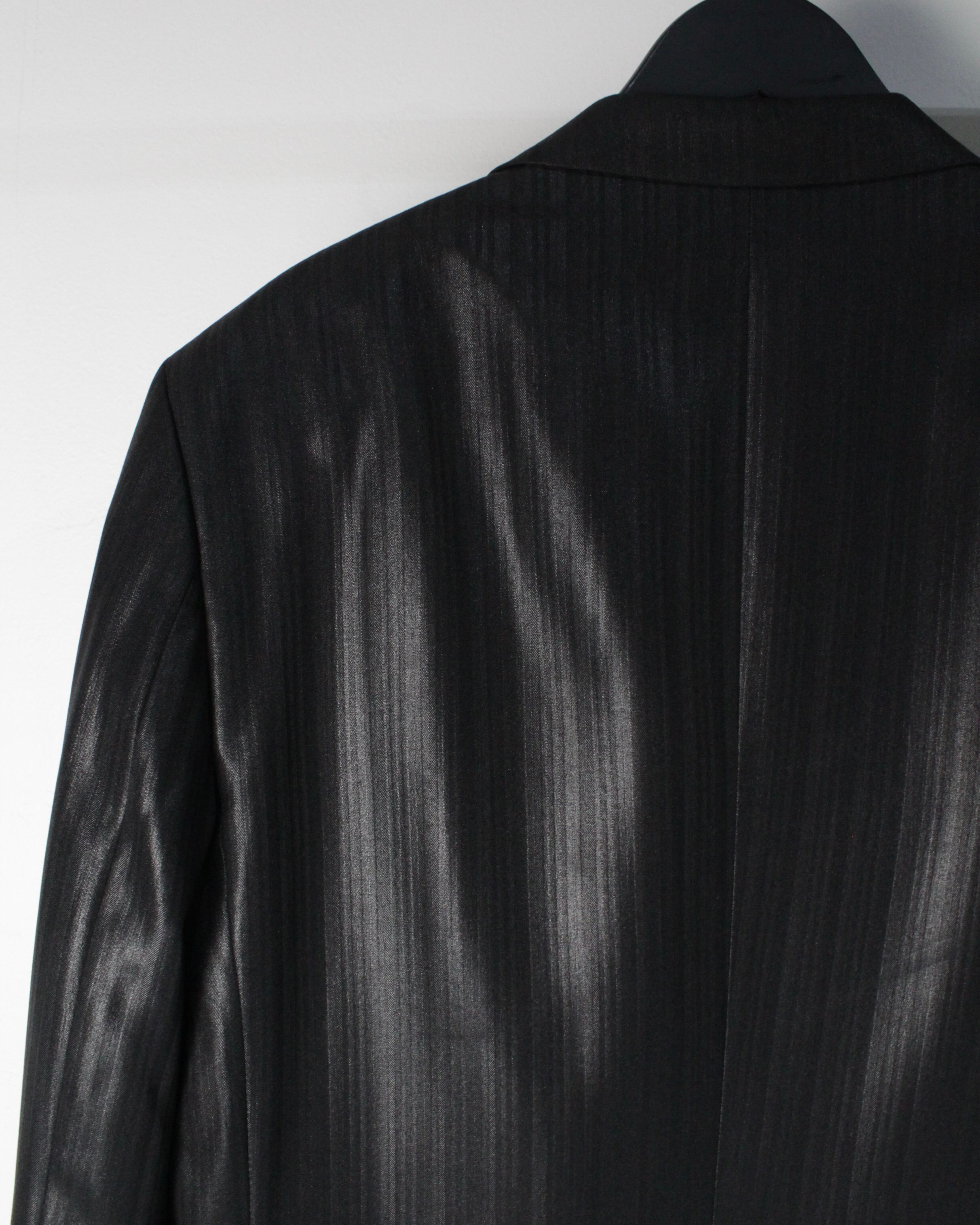 上質なウール×ビスコース×ポリエステルの混紡素材を使用し、程よい光沢感を帯びた生地に繊細なストライプを載せたシングルブレストのテーラードジャケット。