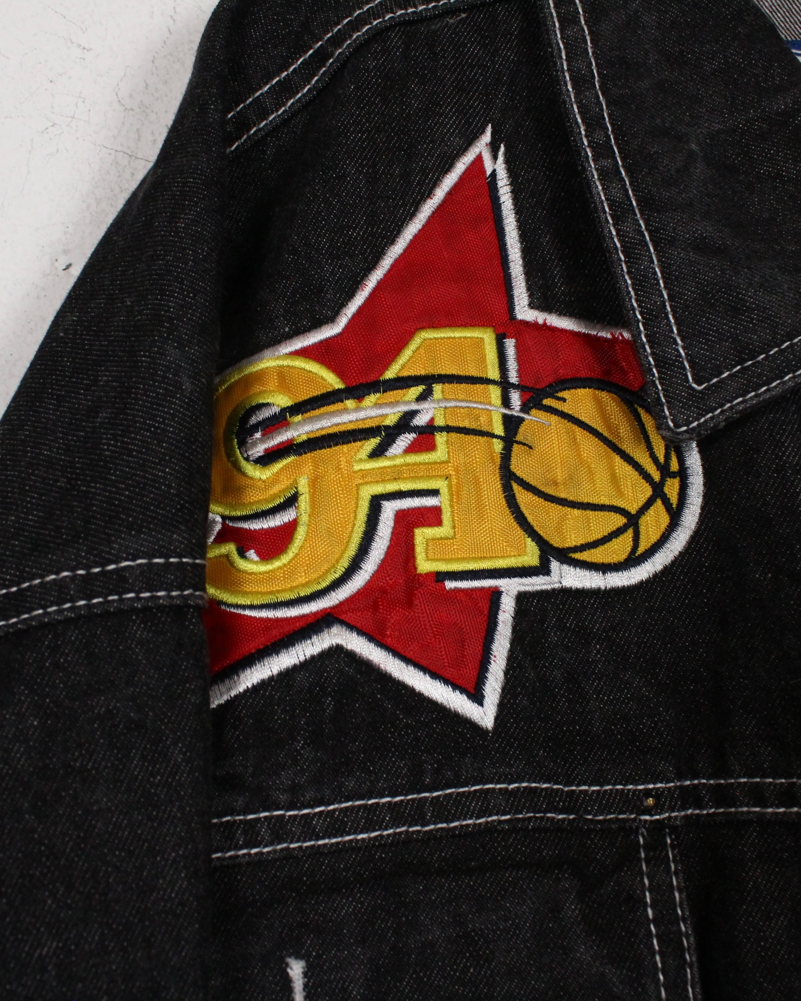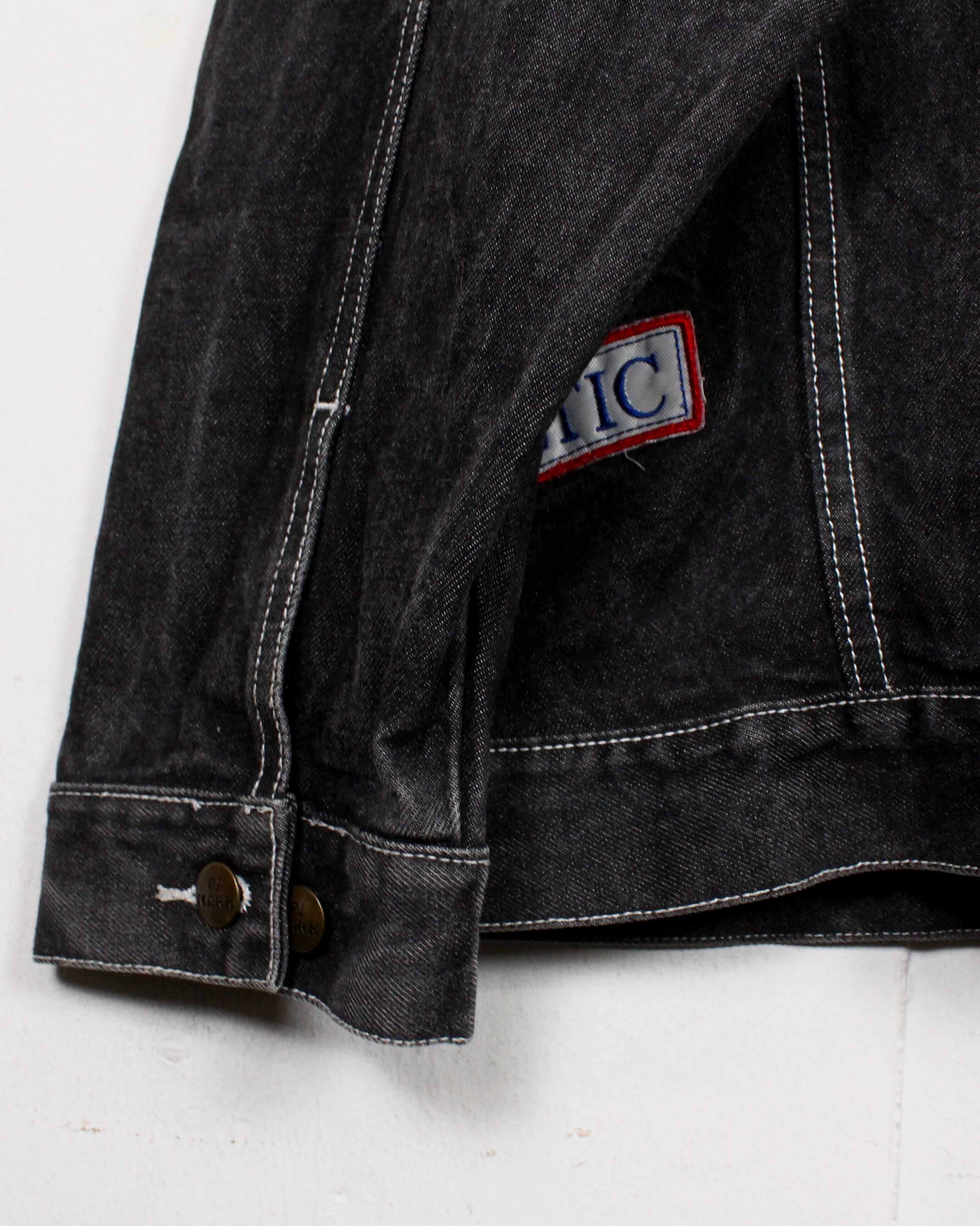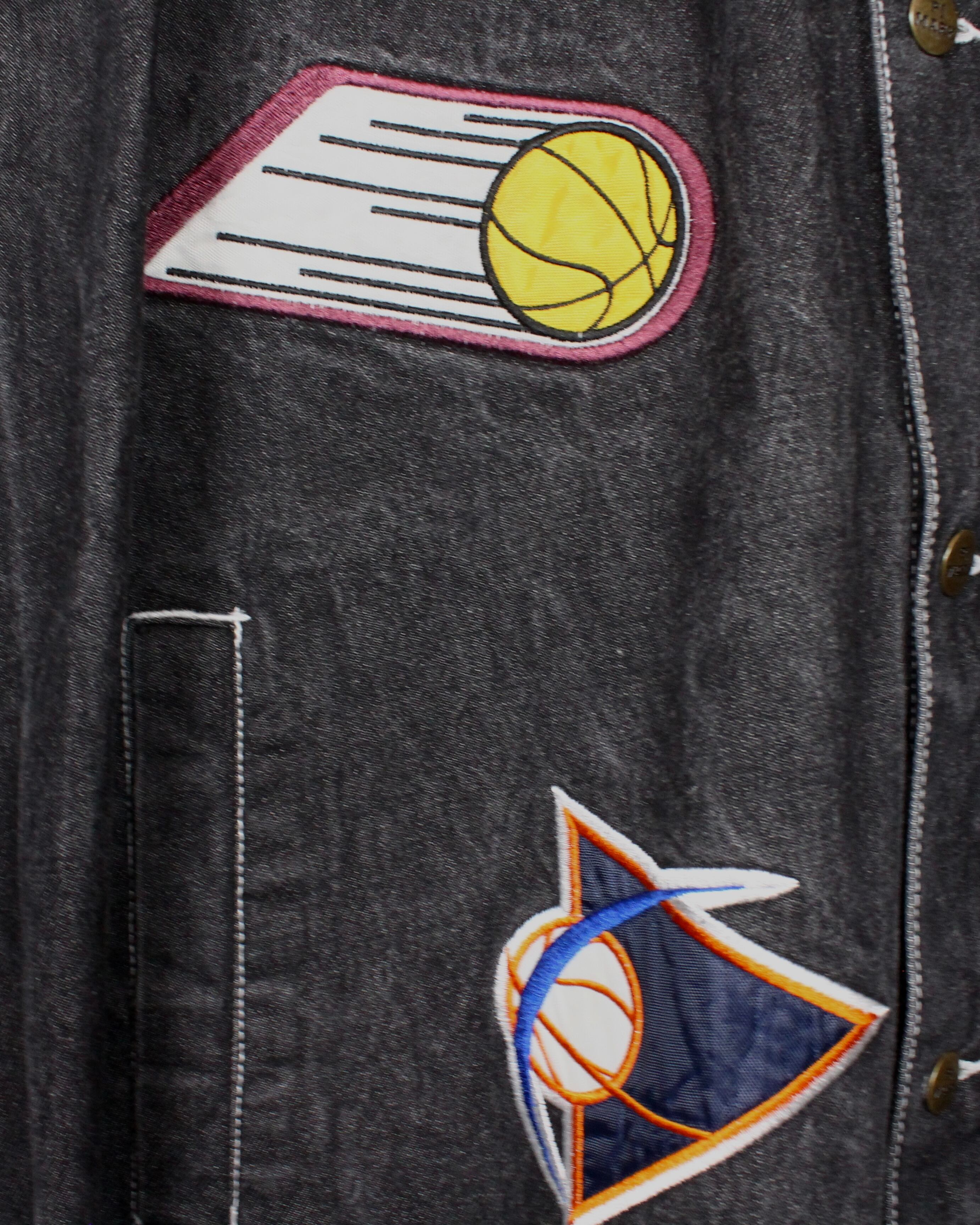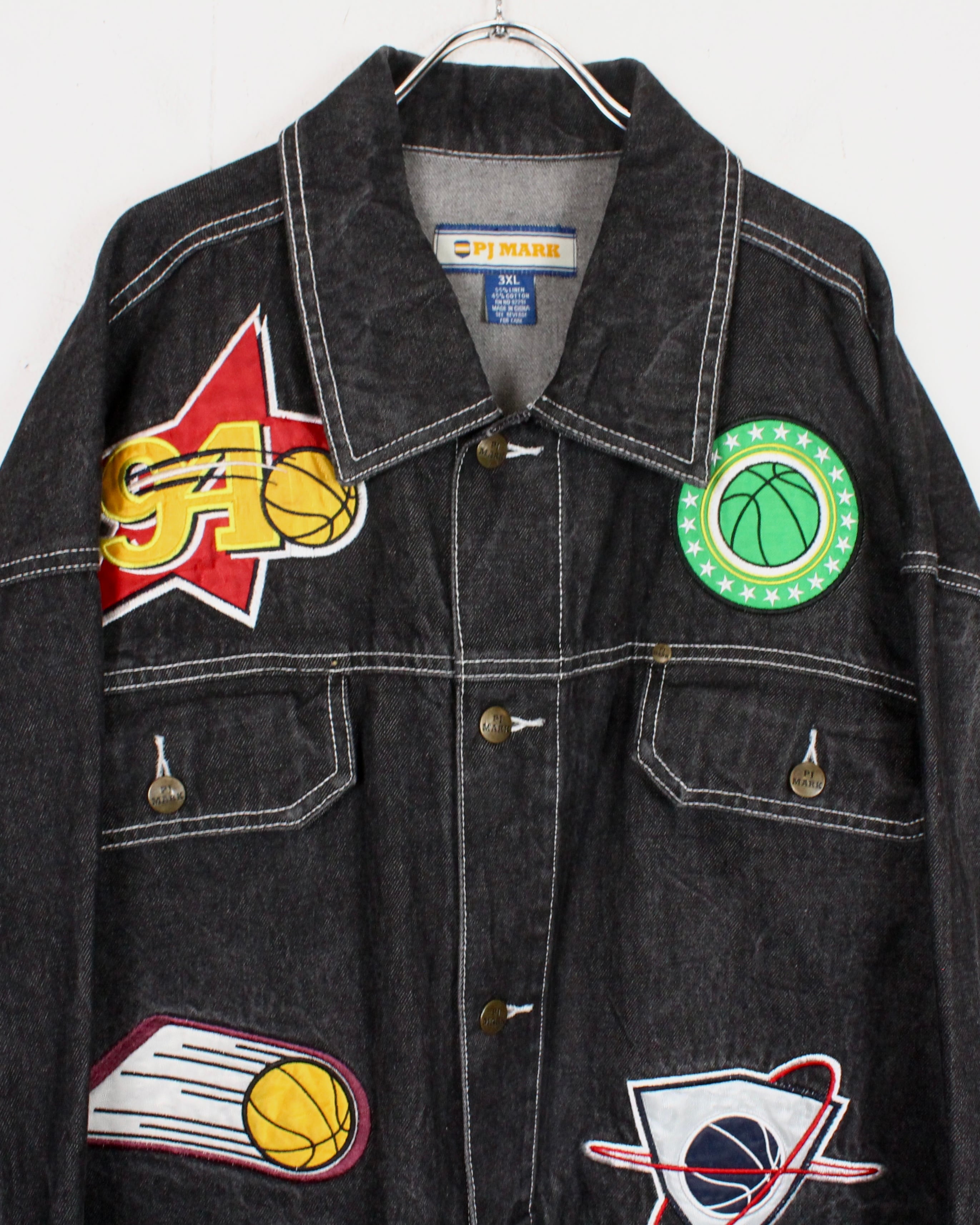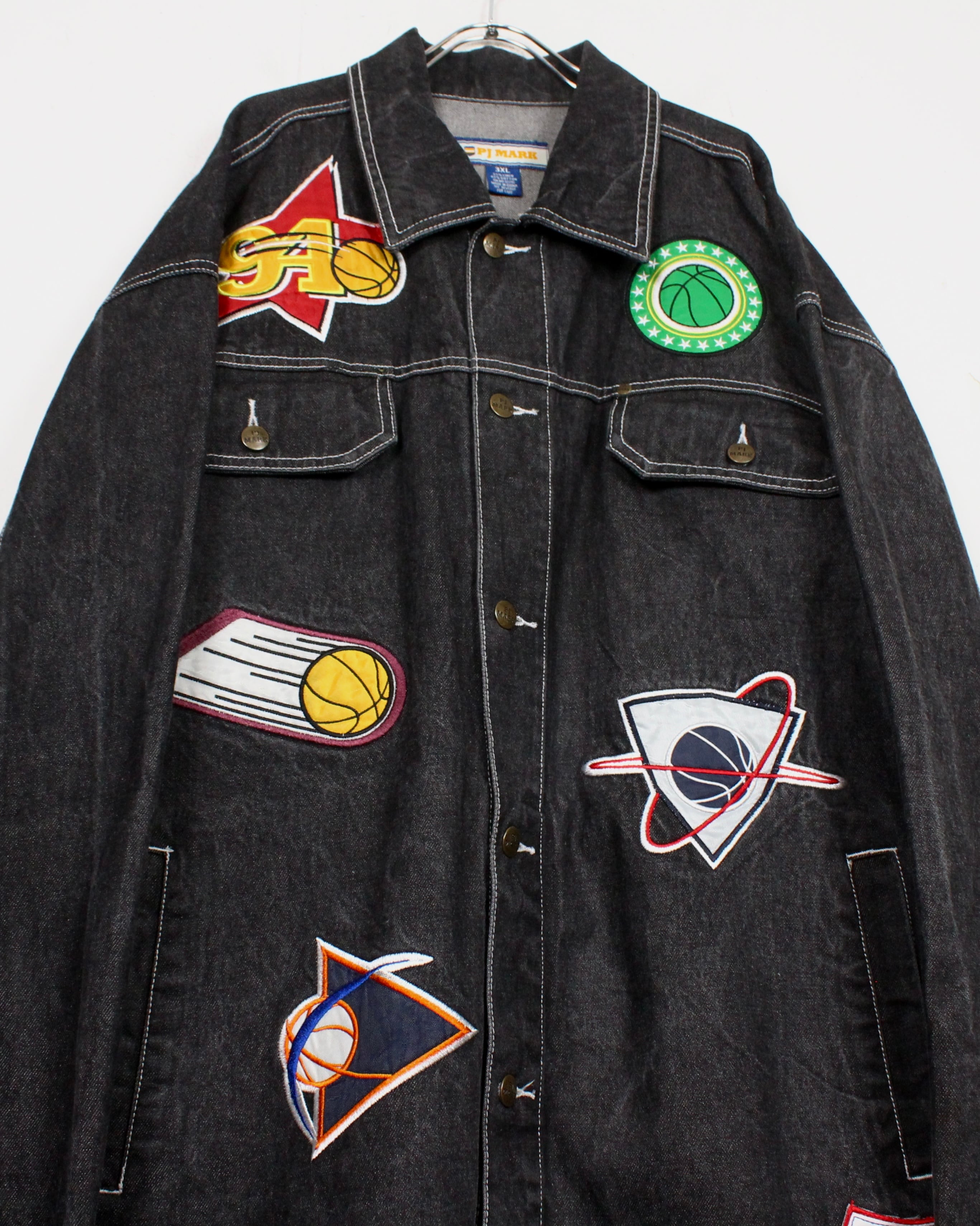 ヴィンテージ市場でも年々稀少性が高まり続けているブラックデニムをベースに、多種多様なバスケットボールチームモチーフのワッペンを贅沢にあしらったスペシャルな1着をご紹介いたします。