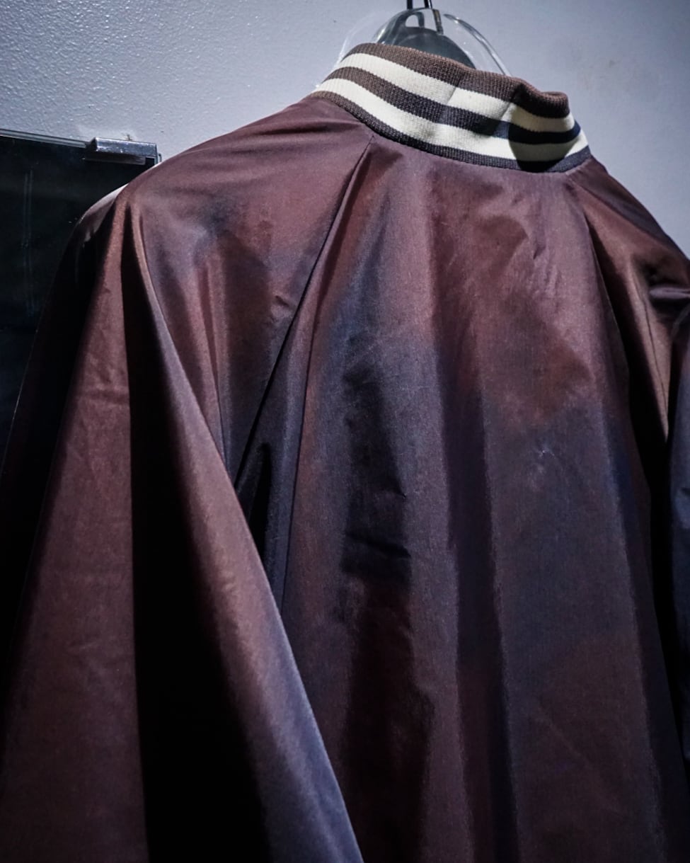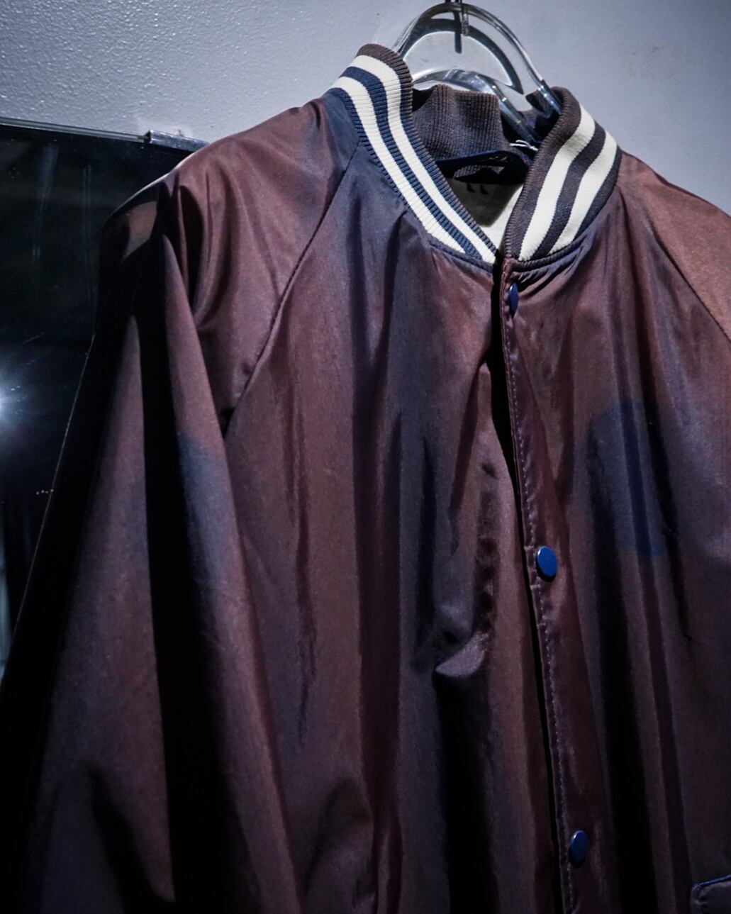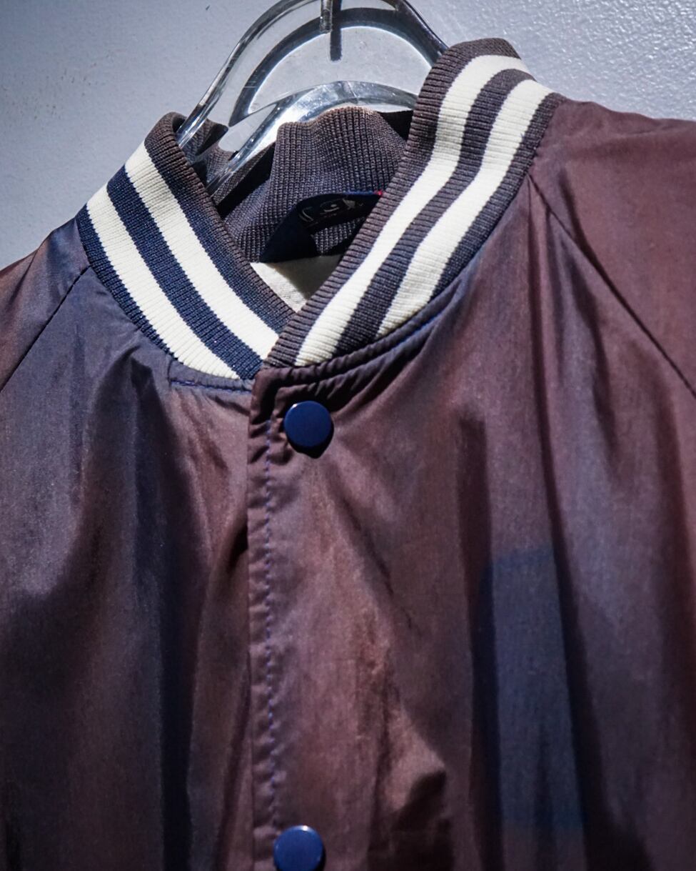 バーガンディとネイビーが溶け合うようなボディは、経年によるサンフェードが絶妙に入り、唯一無二の雰囲気演出するスタジャン。